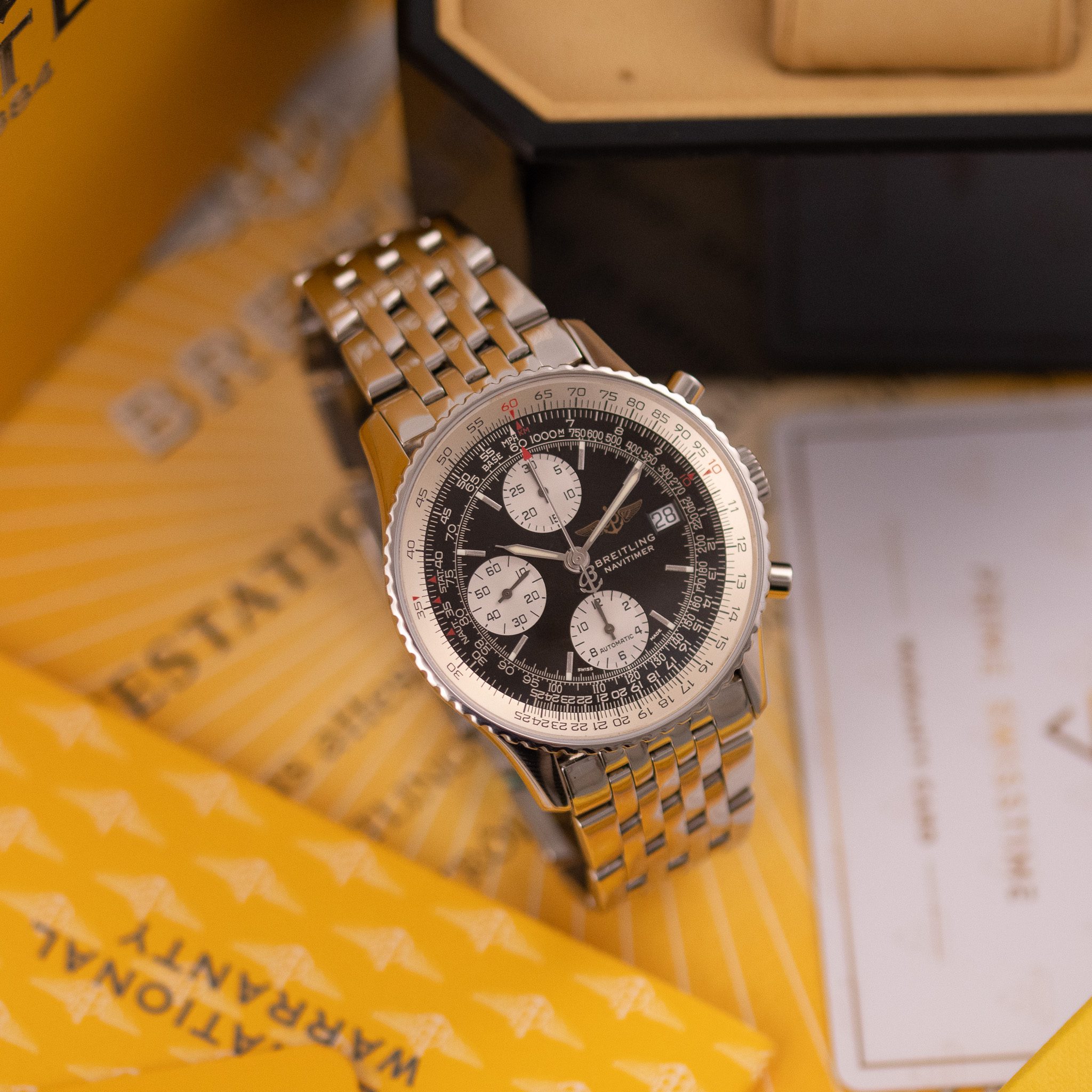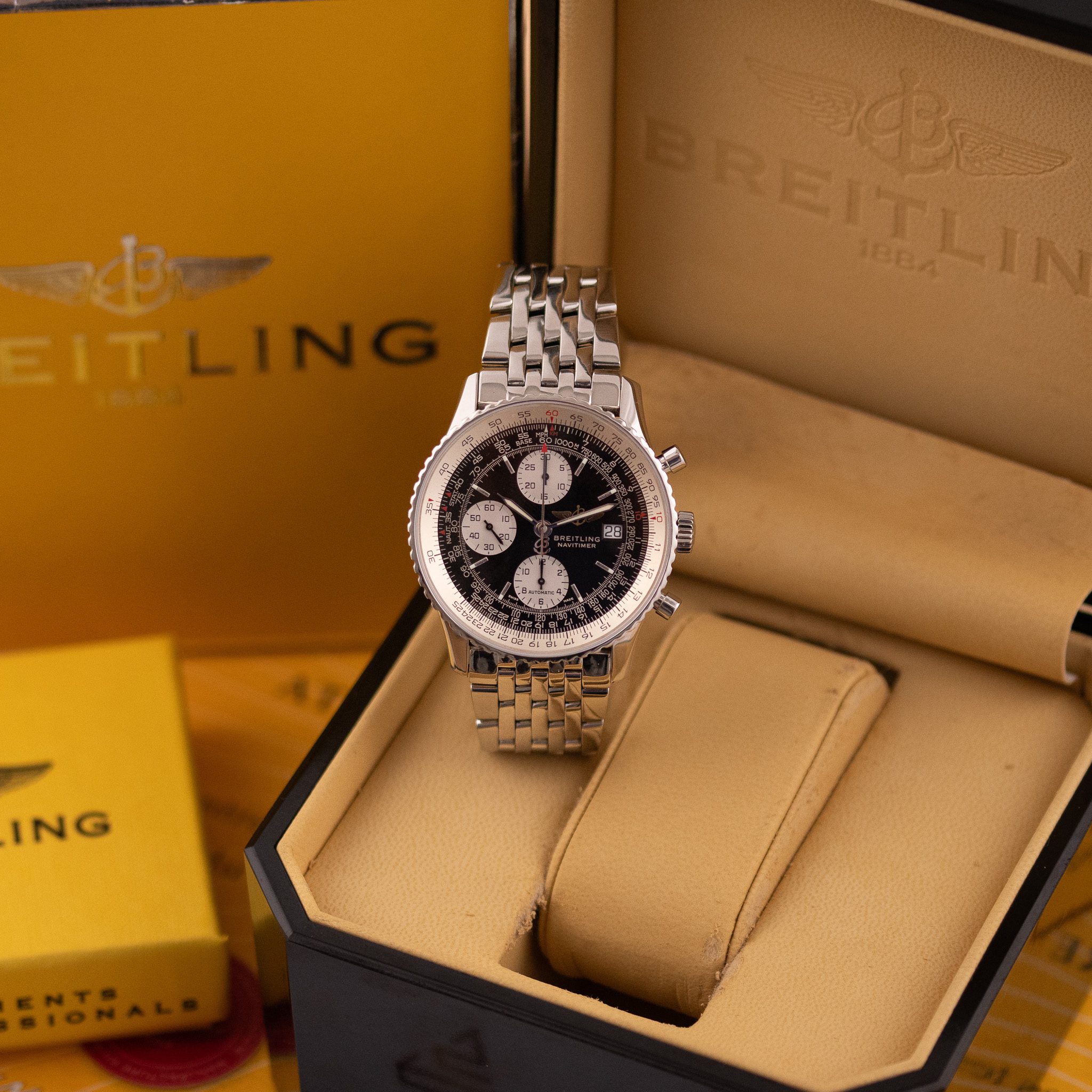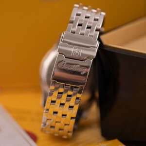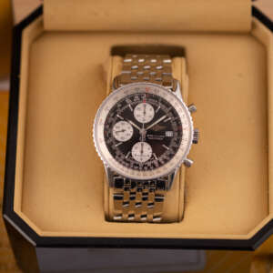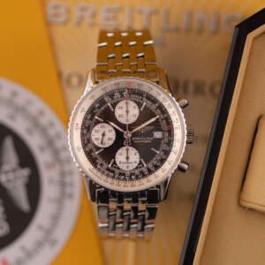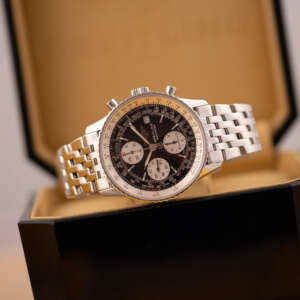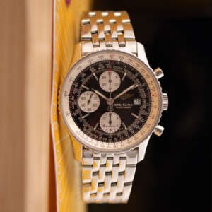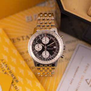 Powered by the automatic Breitling Calibre 13, this watch offers reliable chronograph performance based on the proven Valjoux 7750 architecture. Originally sold in 2003, this example is presented in very good condition and comes as a full set with its original box and papers. A standout choice for collectors and enthusiasts seeking a legendary aviation timepiece with enduring appeal.