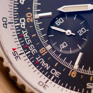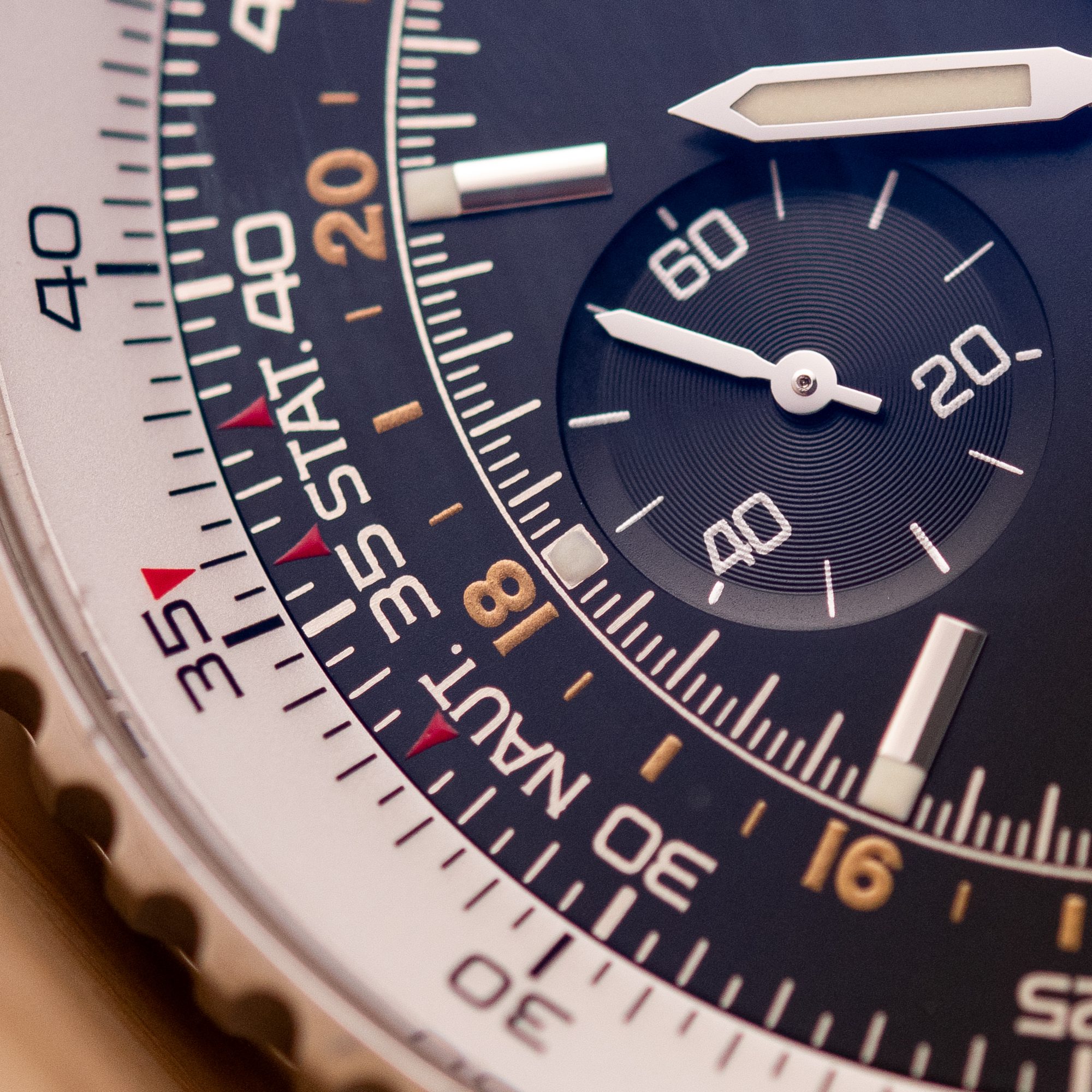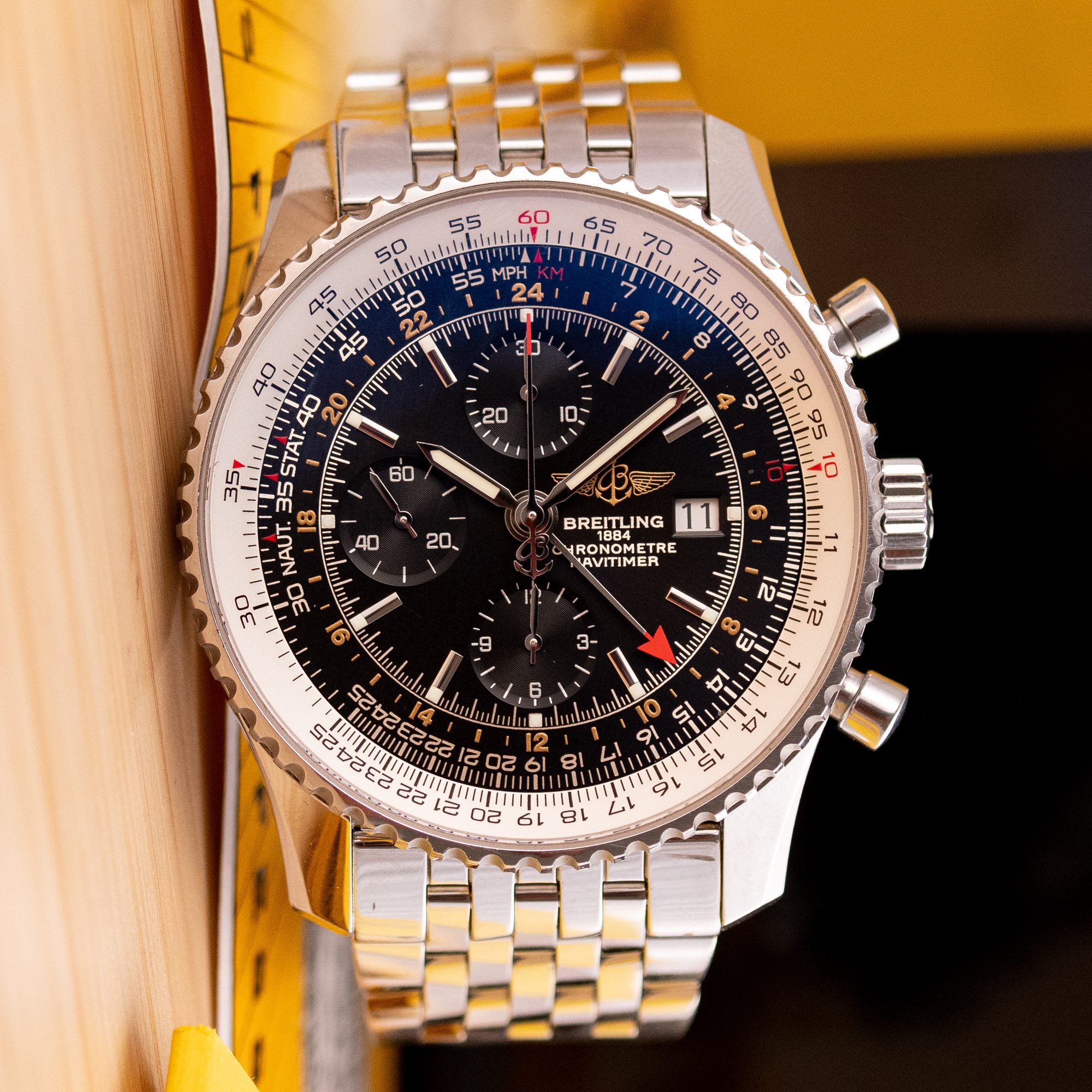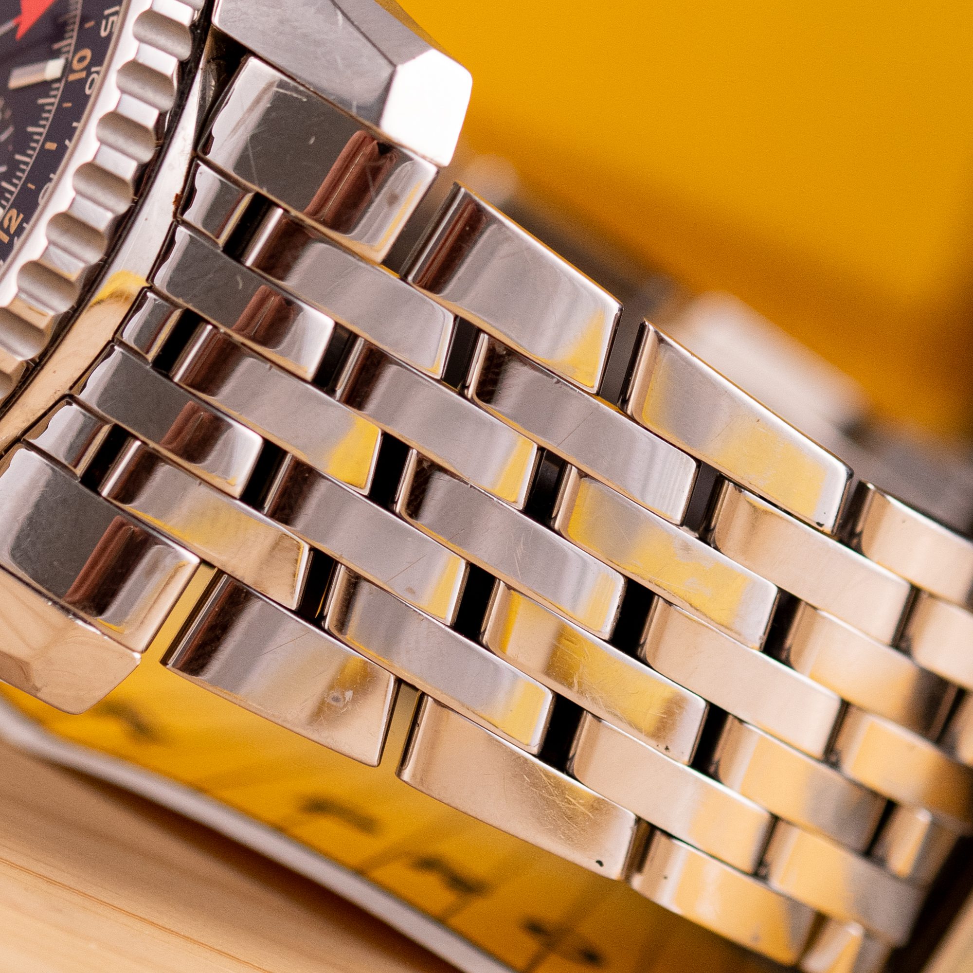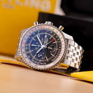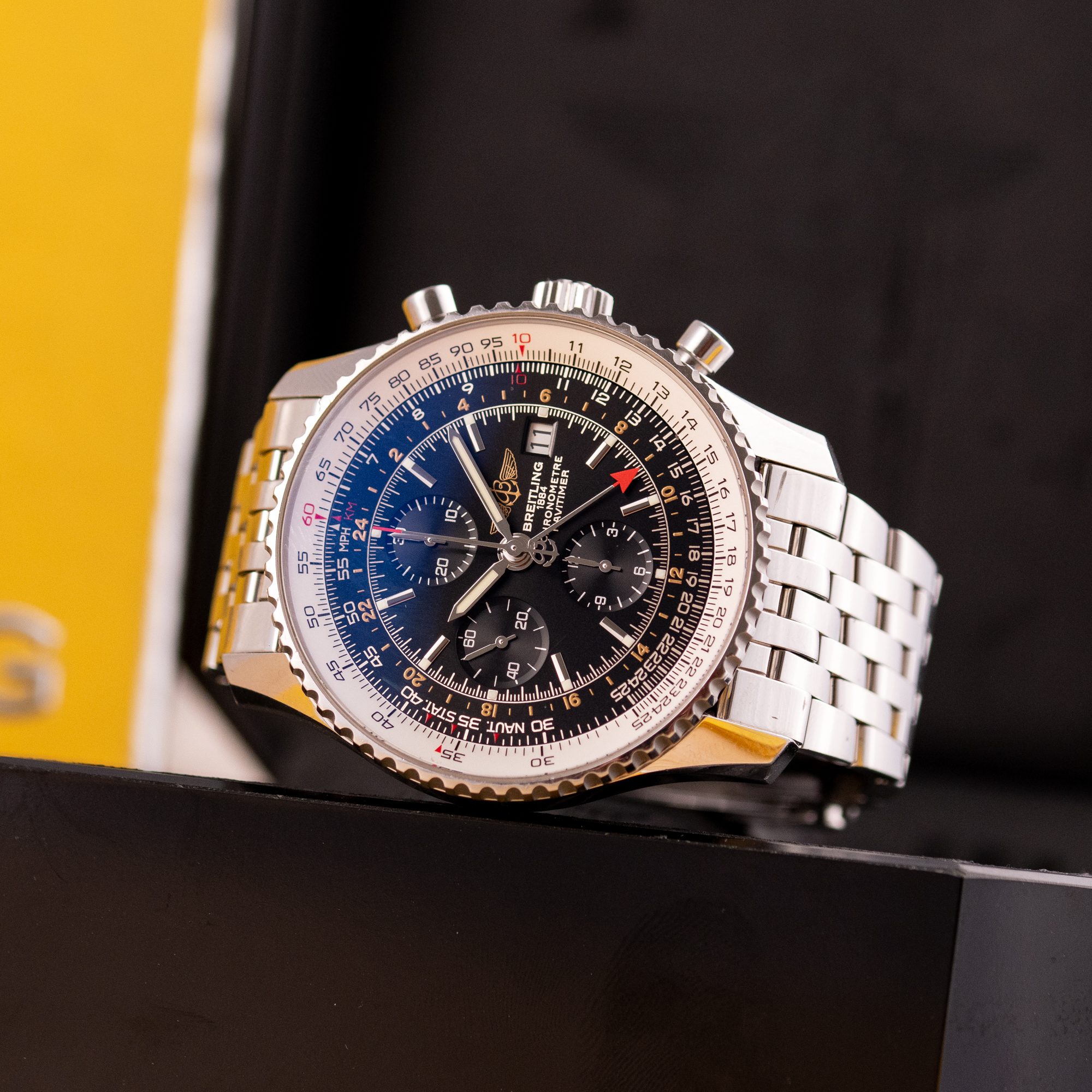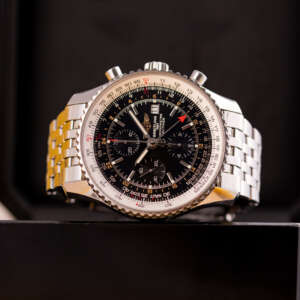 This particular piece was originally sold in 2007 and is in very good condition, with a mechanically fully functional movement. The bracelet is sized for wrists up to 19 cm, ensuring a comfortable fit. Presented as a full set with the original Breitling box and papers, this watch is an ideal addition for collectors or enthusiasts seeking a versatile, high-performance timepiece with a storied legacy.
