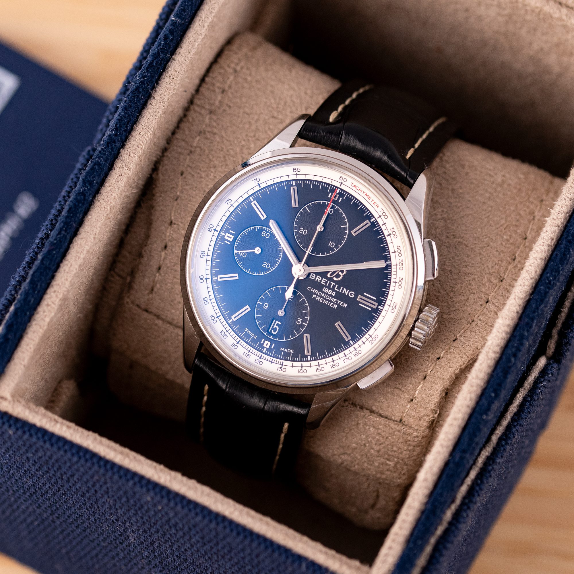 The Breitling Premier Chronograph A13315 is a perfect fusion of classic sophistication and modern performance, reflecting Breitling’s dedication to precision timekeeping. With its elegant design and reliable chronograph movement, this timepiece is ideal for those who appreciate both heritage and functionality.