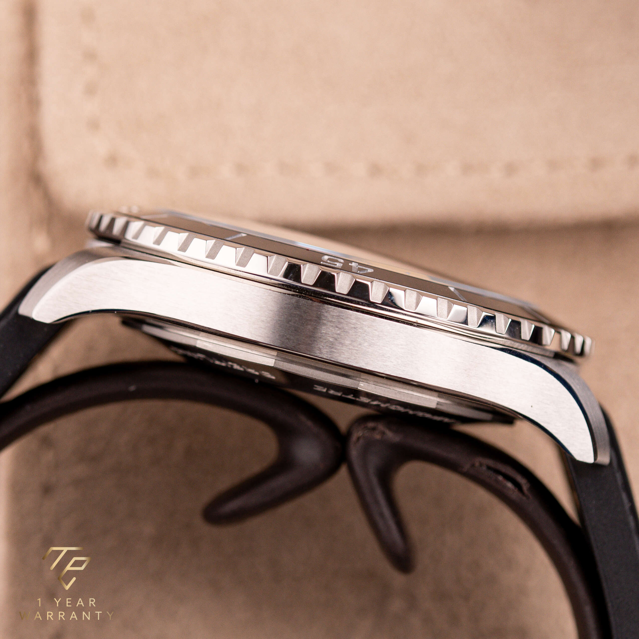 This particular piece features a sporty configuration with a black dial and rubber strap. Originally sold in 2023, the watch is in excellent condition, comes as a full set with the original box and papers, and remains under manufacturer warranty.