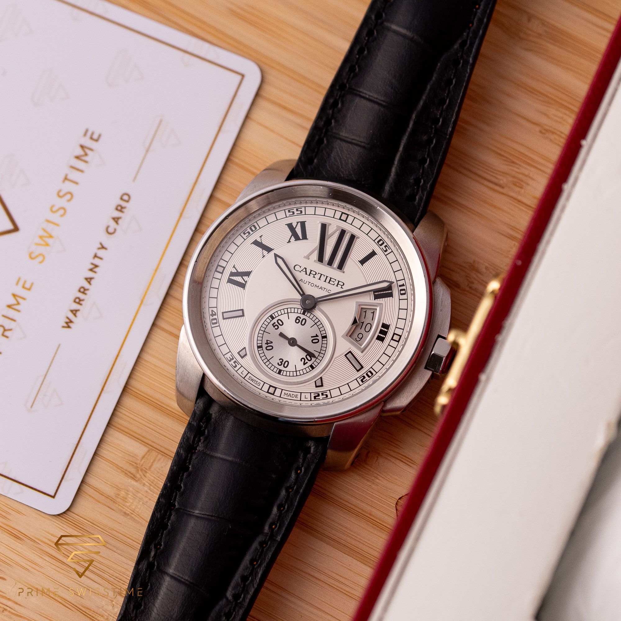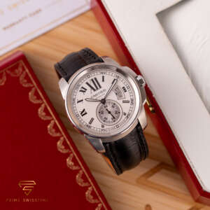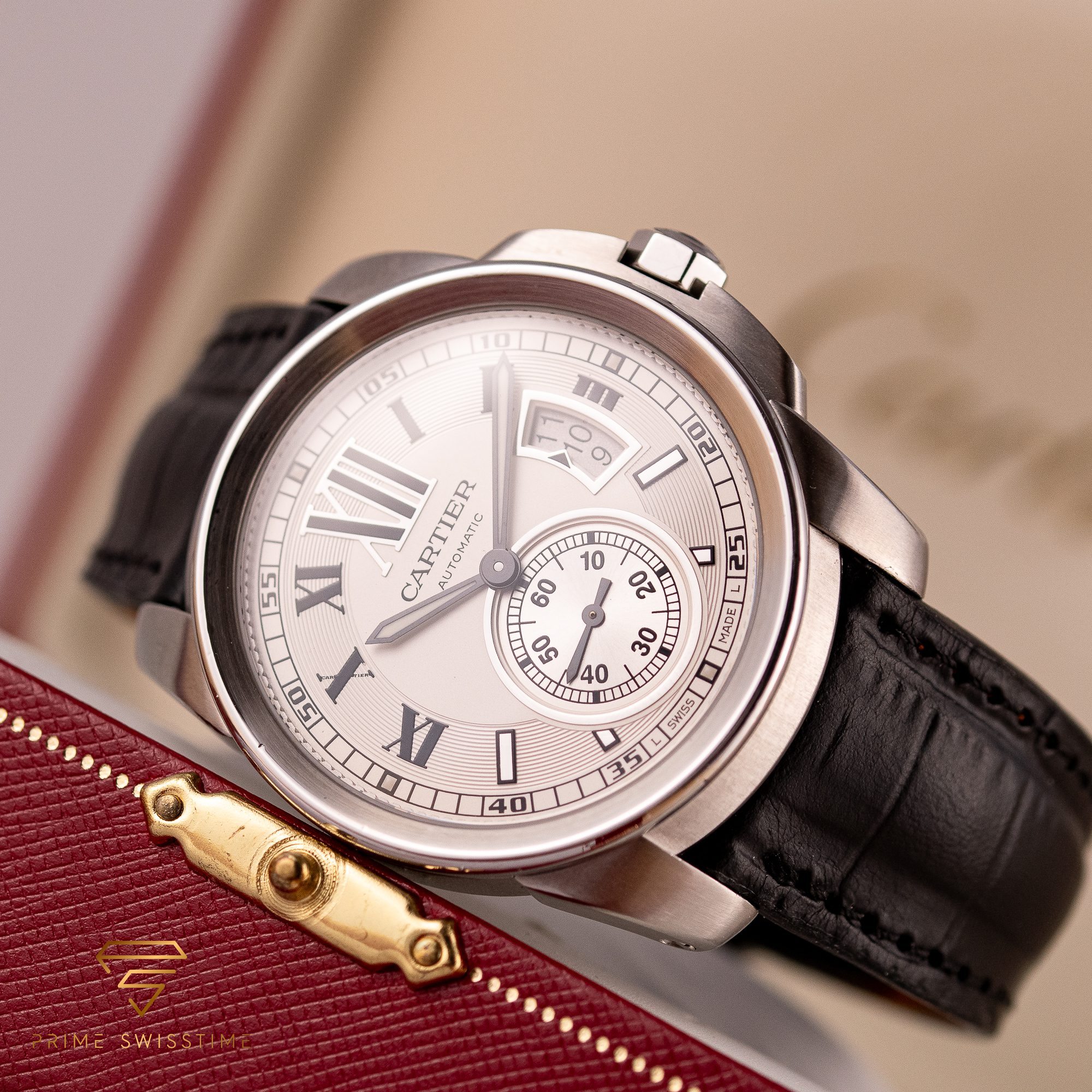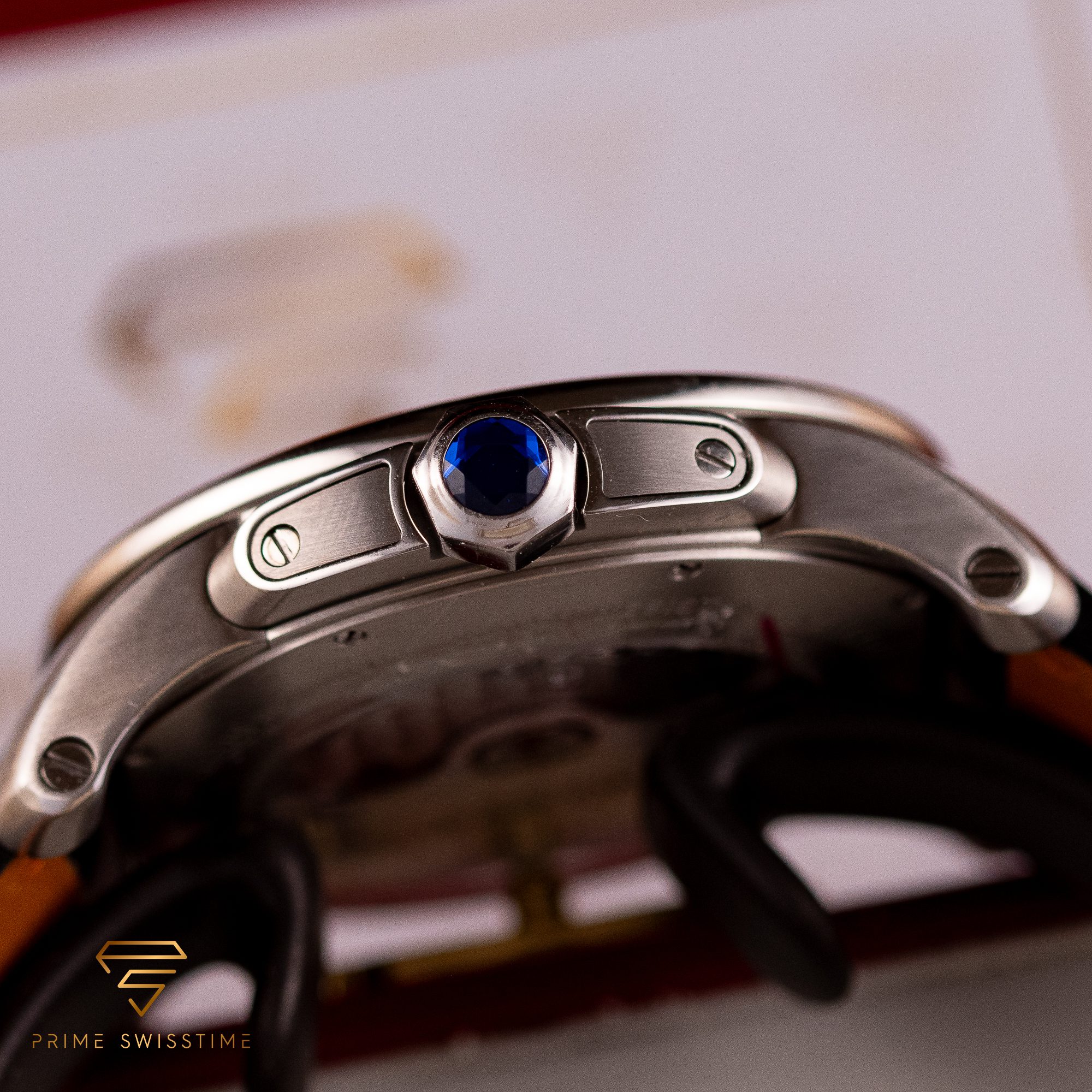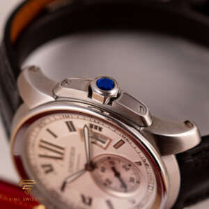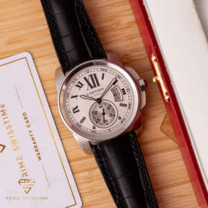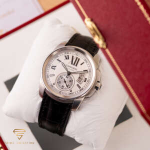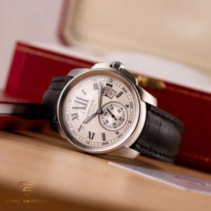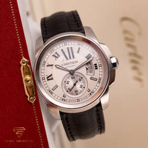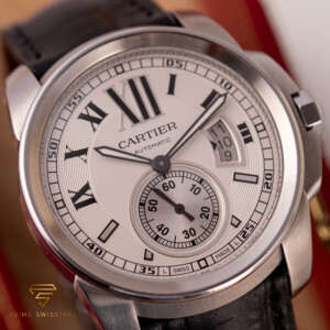 The Cartier Calibre de Cartier, ref. 3389, is a bold and sophisticated timepiece that combines the brand’s signature elegance with a modern sporty edge. Powered by Cartier’s in-house 1904-PS MC automatic movement, this watch offers precision, reliability, and expert craftsmanship.