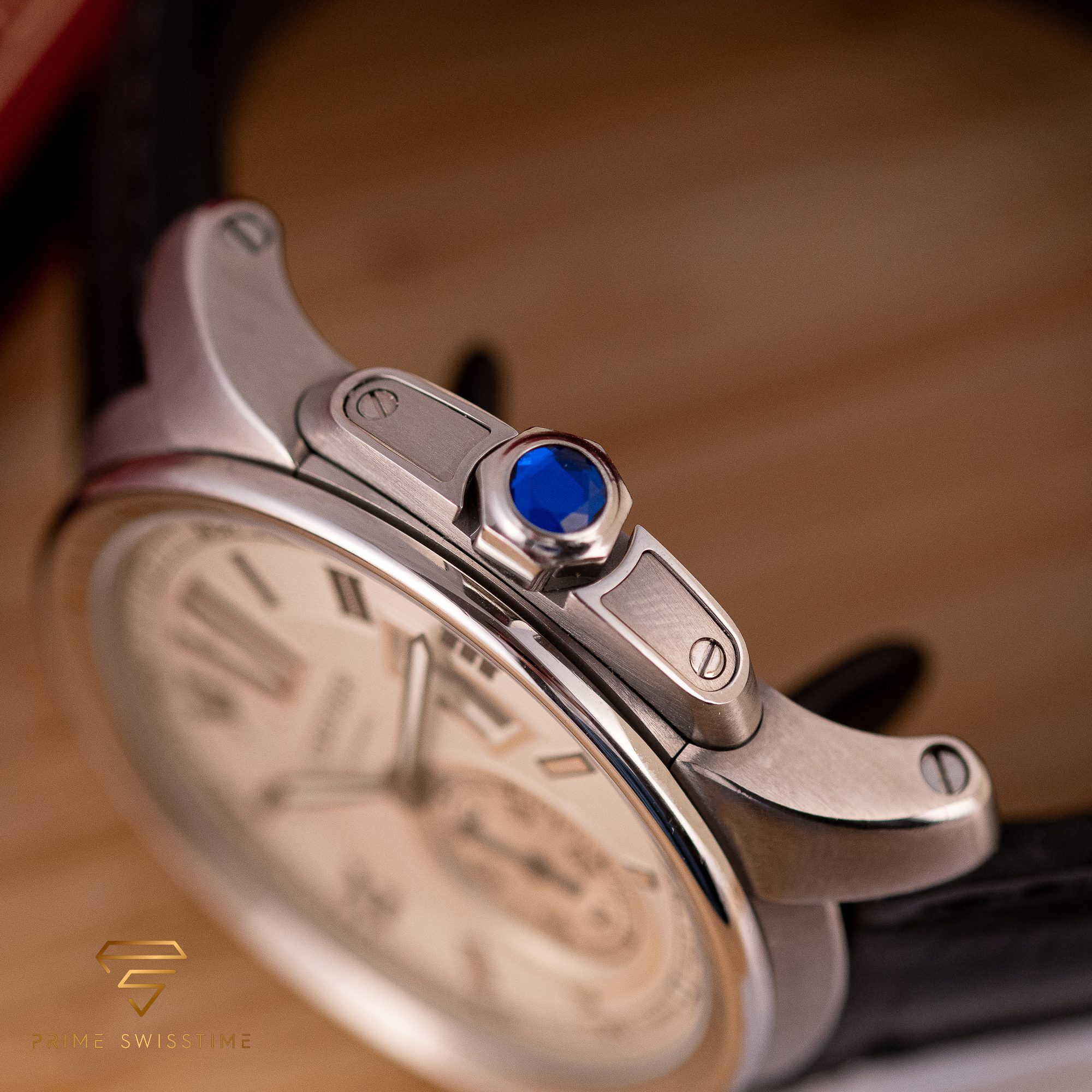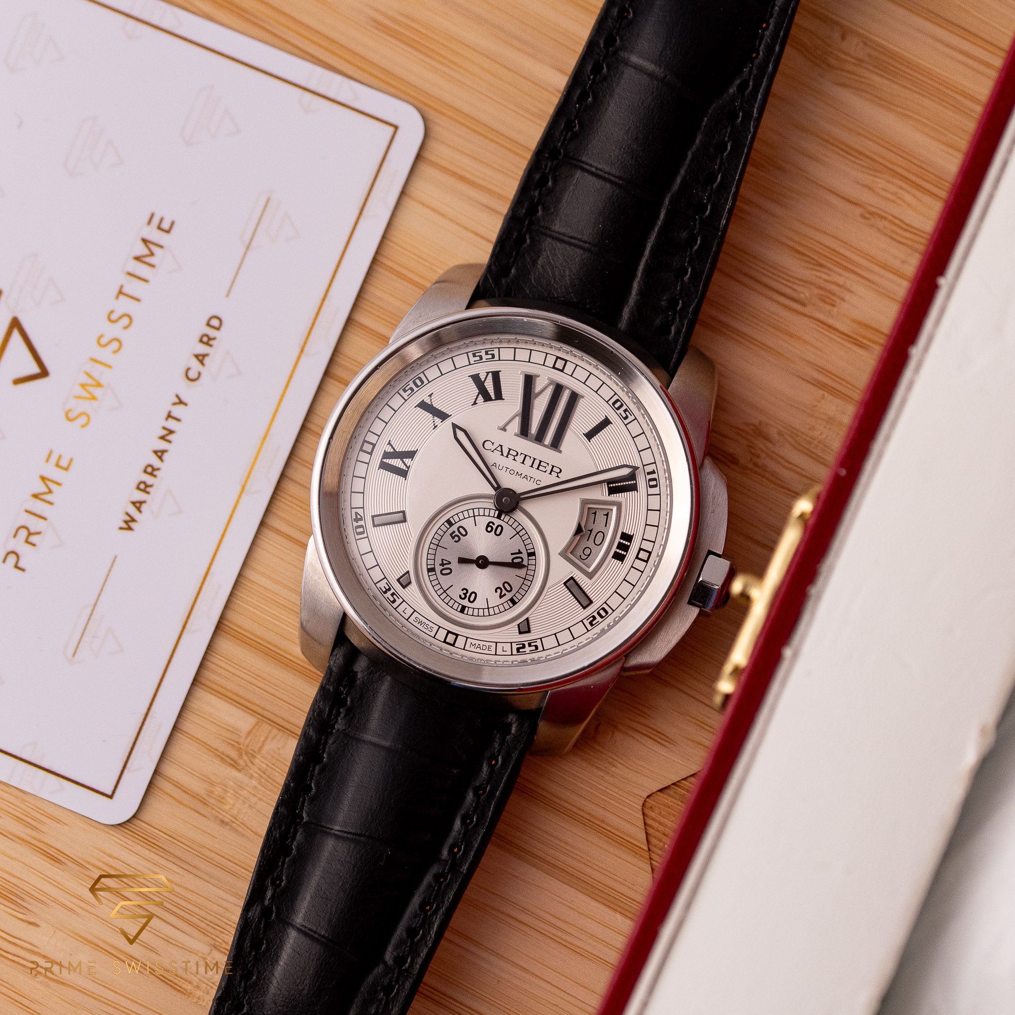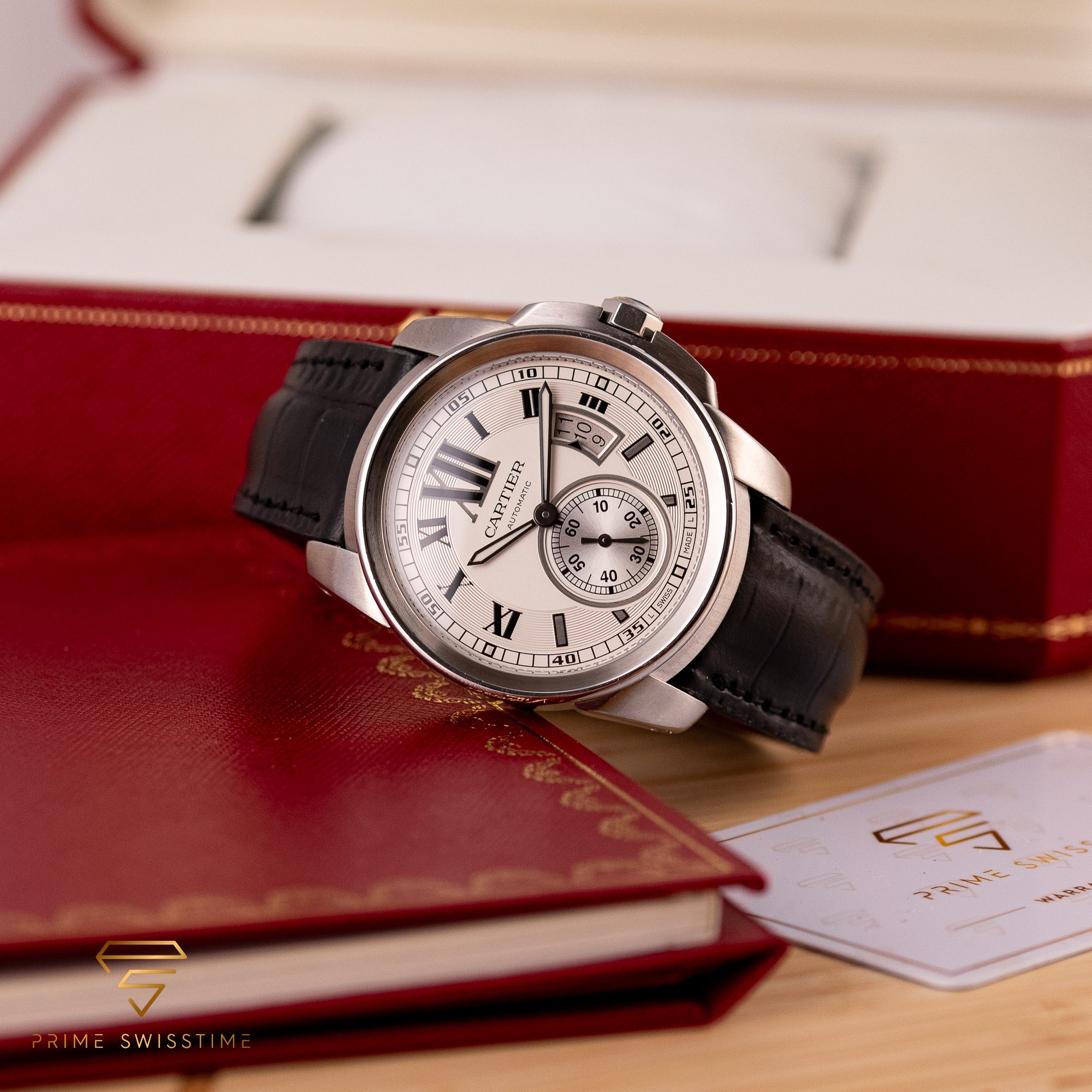 The Cartier Calibre de Cartier, ref. 3389, is a bold and sophisticated timepiece that combines the brand’s signature elegance with a modern sporty edge. Powered by Cartier’s in-house 1904-PS MC automatic movement, this watch offers precision, reliability, and expert craftsmanship.