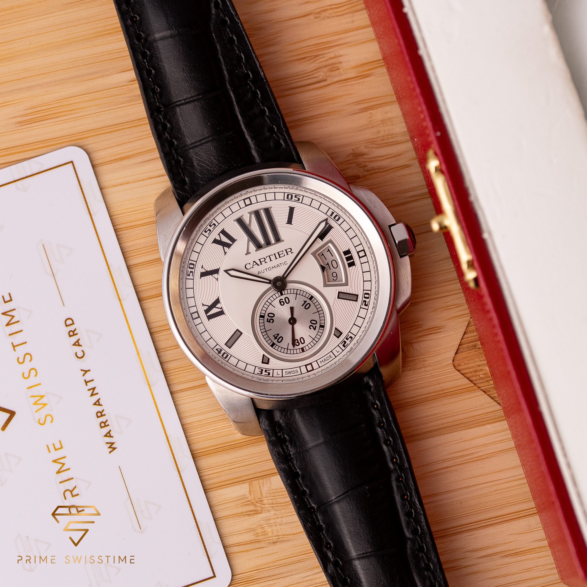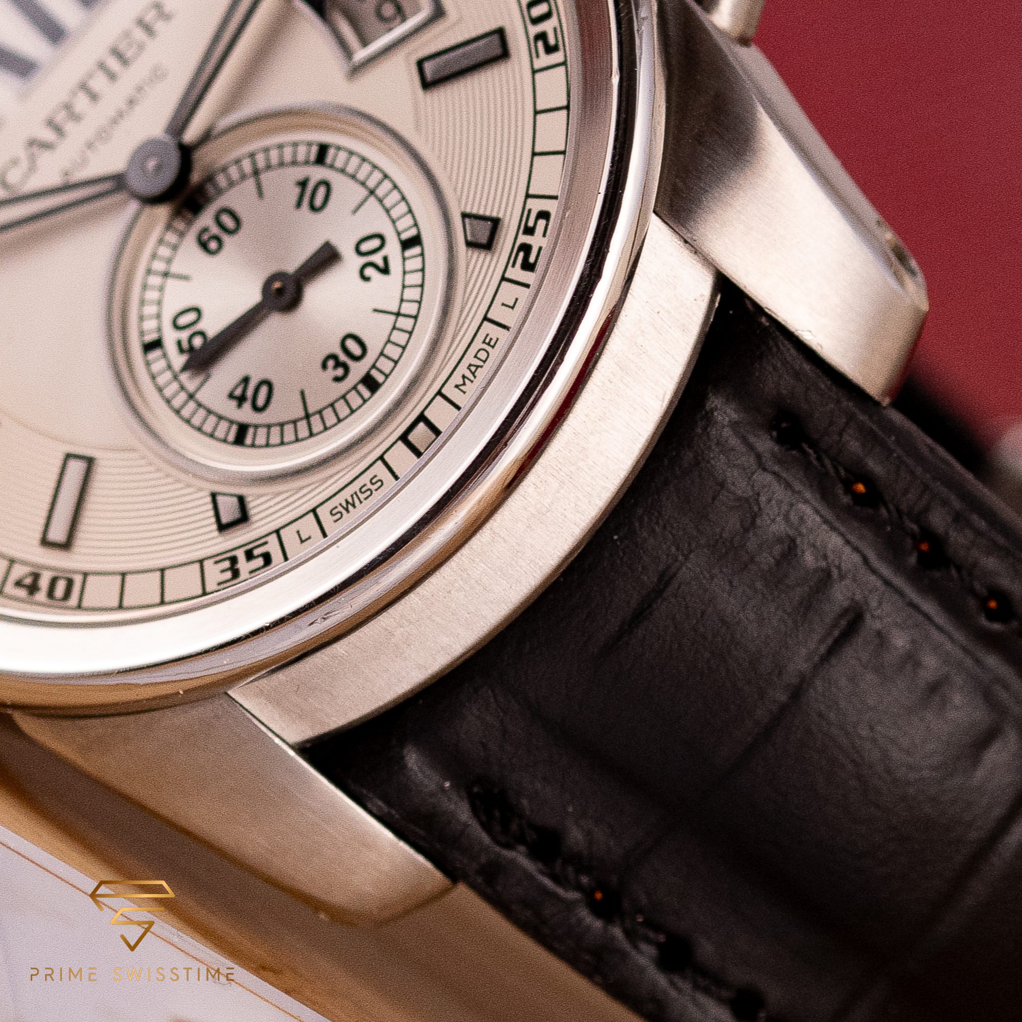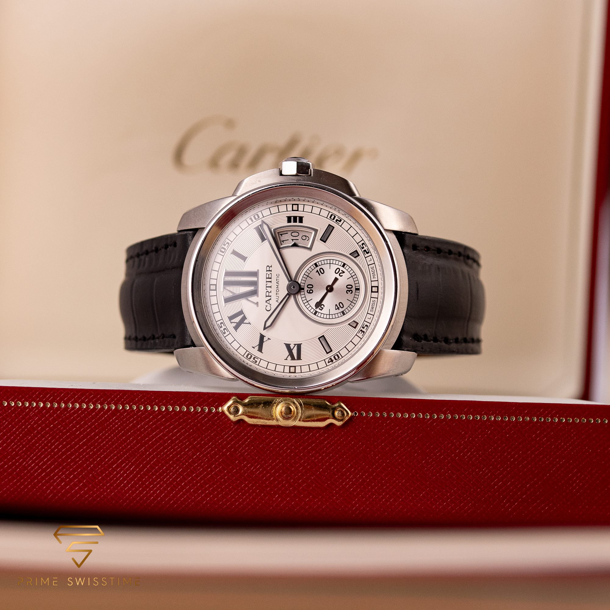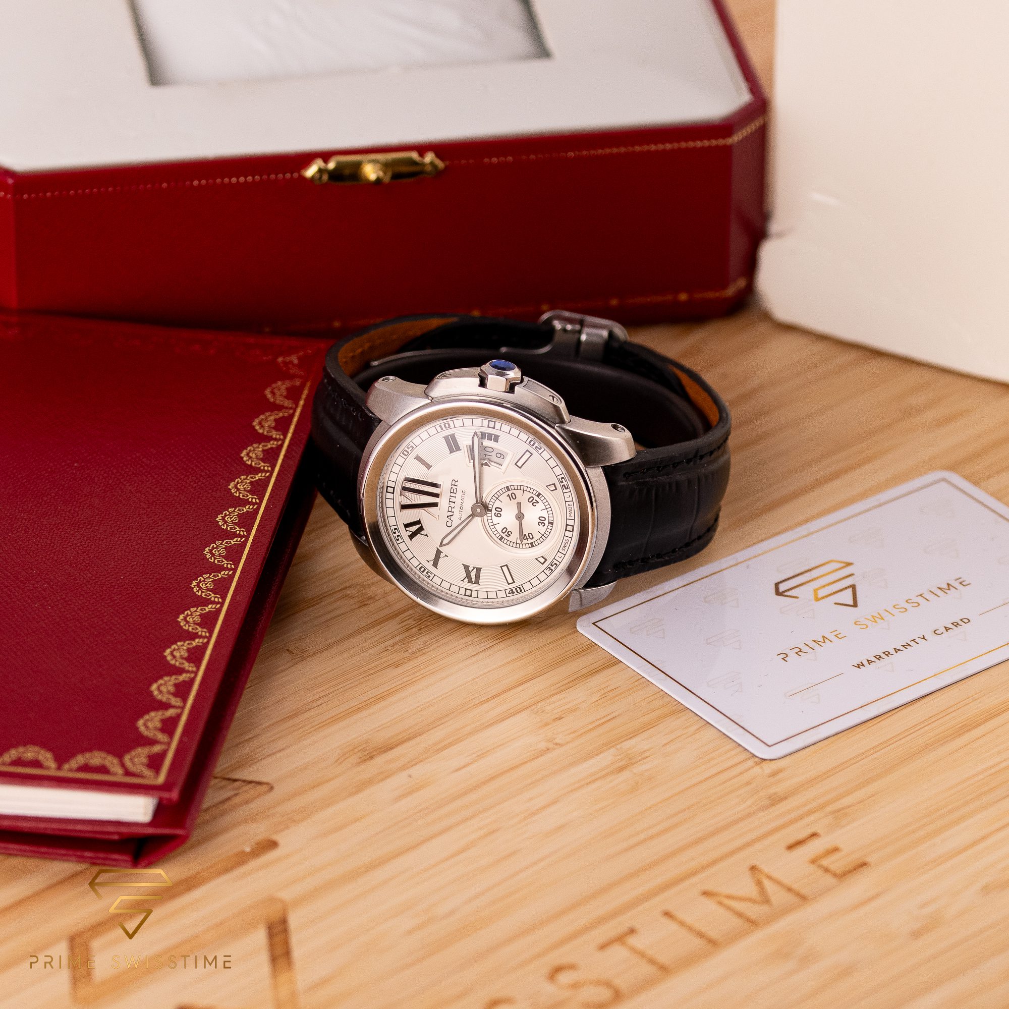 The Cartier Calibre de Cartier, ref. 3389, is a bold and sophisticated timepiece that combines the brand’s signature elegance with a modern sporty edge. Powered by Cartier’s in-house 1904-PS MC automatic movement, this watch offers precision, reliability, and expert craftsmanship.