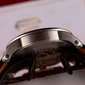 This particular piece comes with a new handmade leather strap and the original box. A great choice for collectors seeking a luxurious yet contemporary automatic watch.