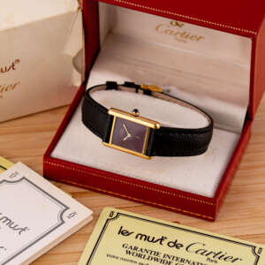 The Must de Cartier Tank is an elegant and iconic timepiece, admired for its timeless design and refined presence. With a rectangular case and minimalist aesthetic, it represents the essence of Cartier’s classic watchmaking.