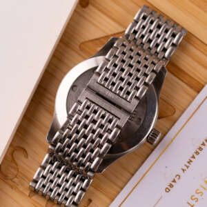 This particular piece is one of the rarest references, highly coveted by collectors. The watch is in very good condition, freshly serviced, and comes with the original box, making it a remarkable find for any enthusiast.
