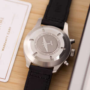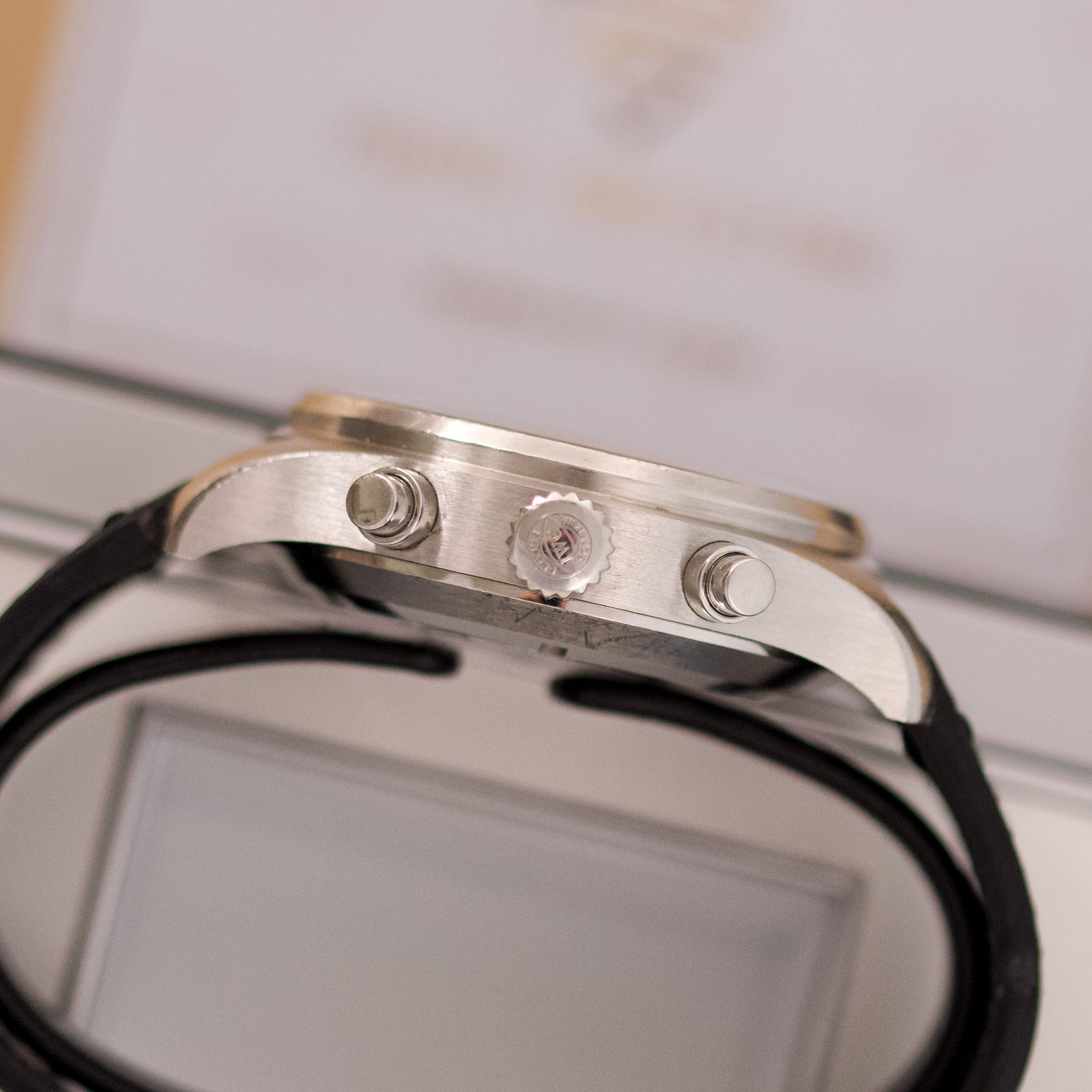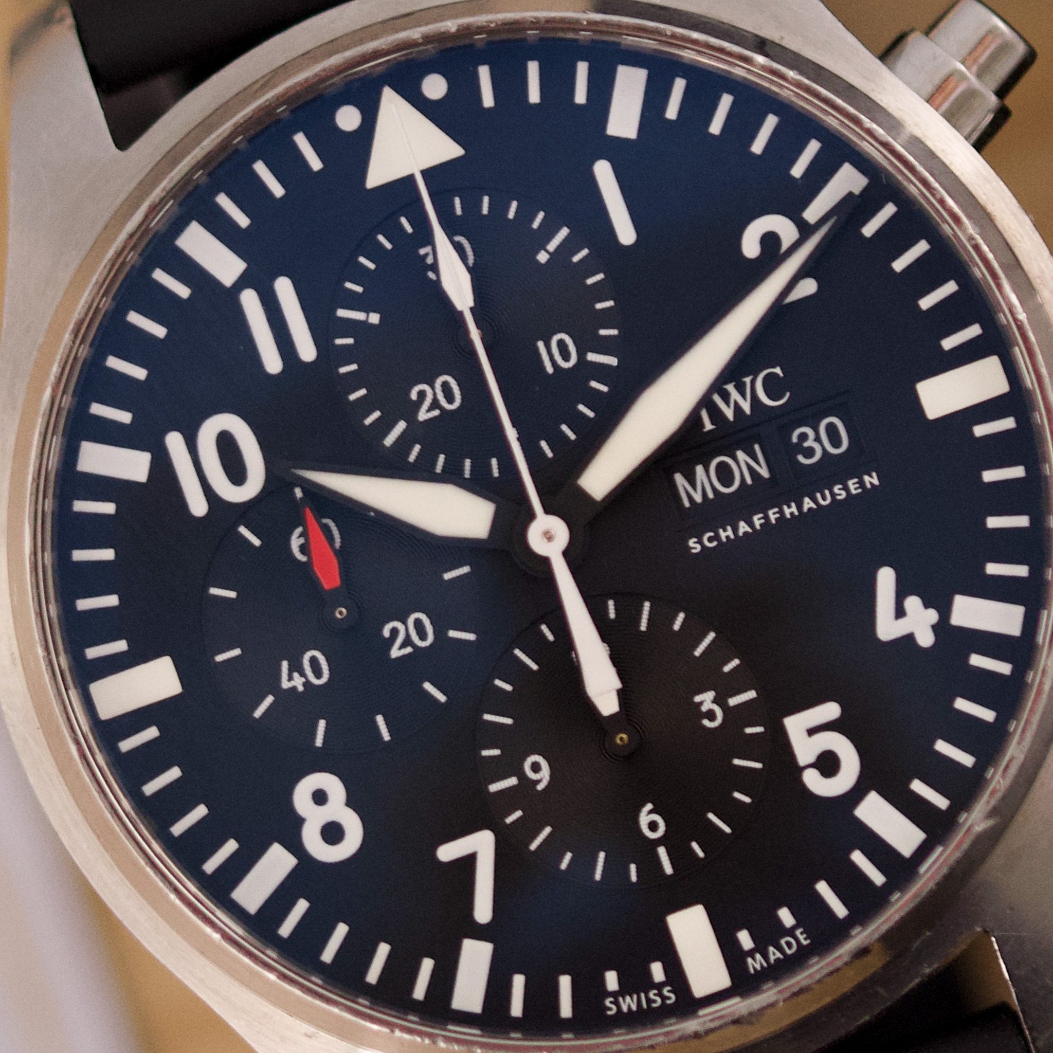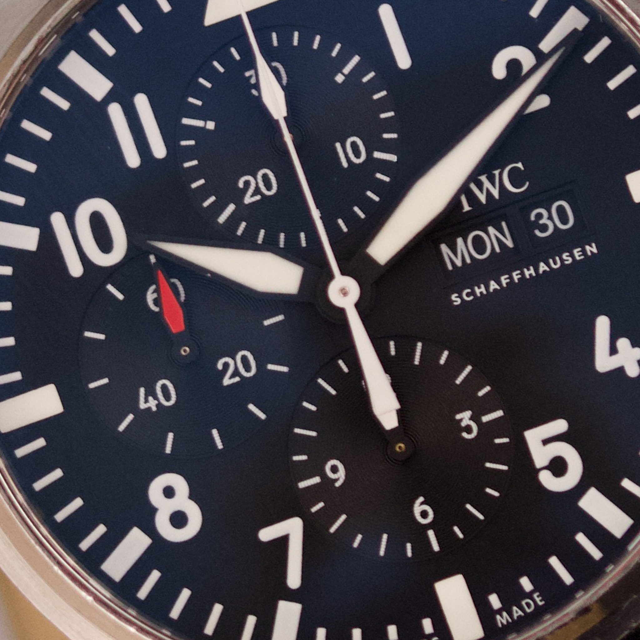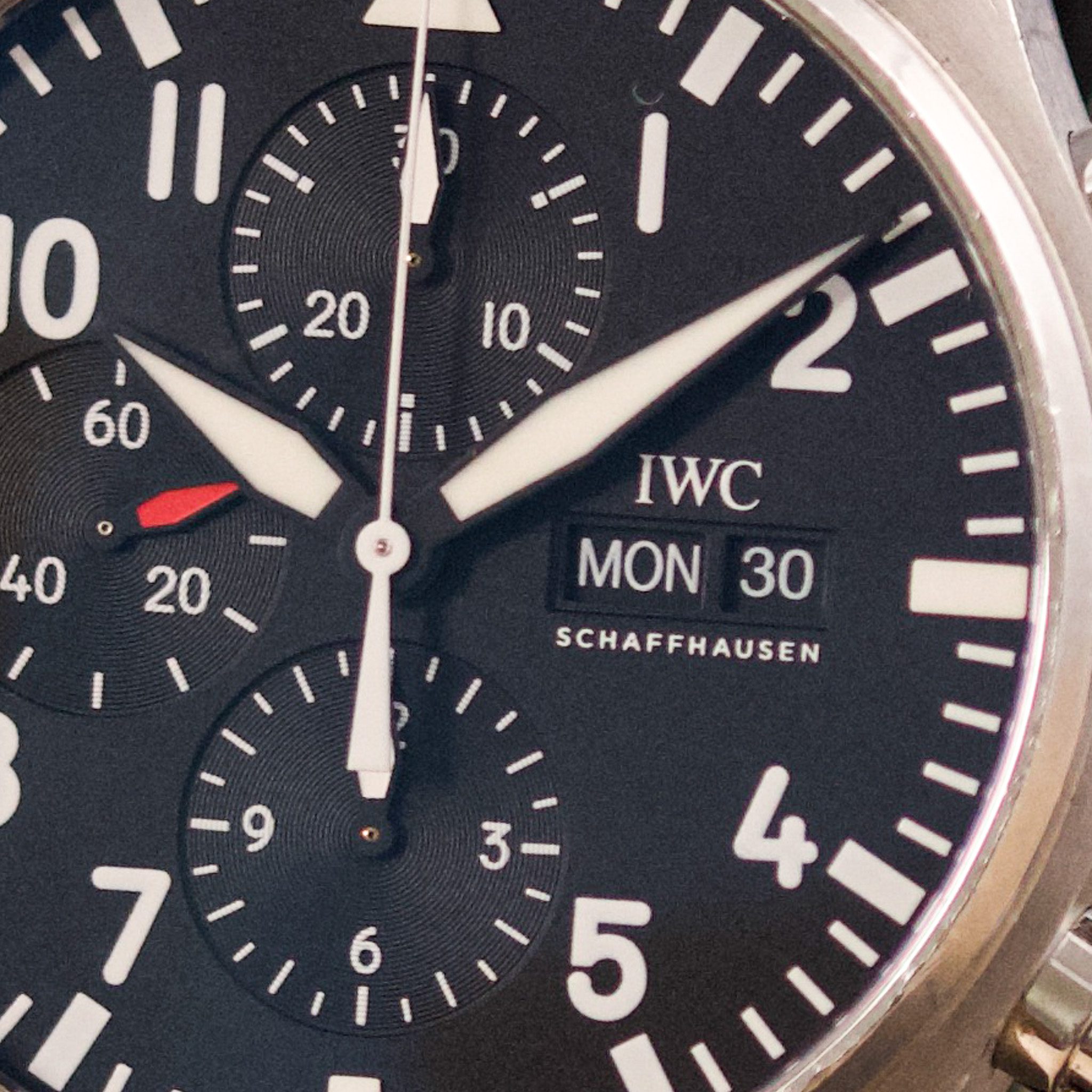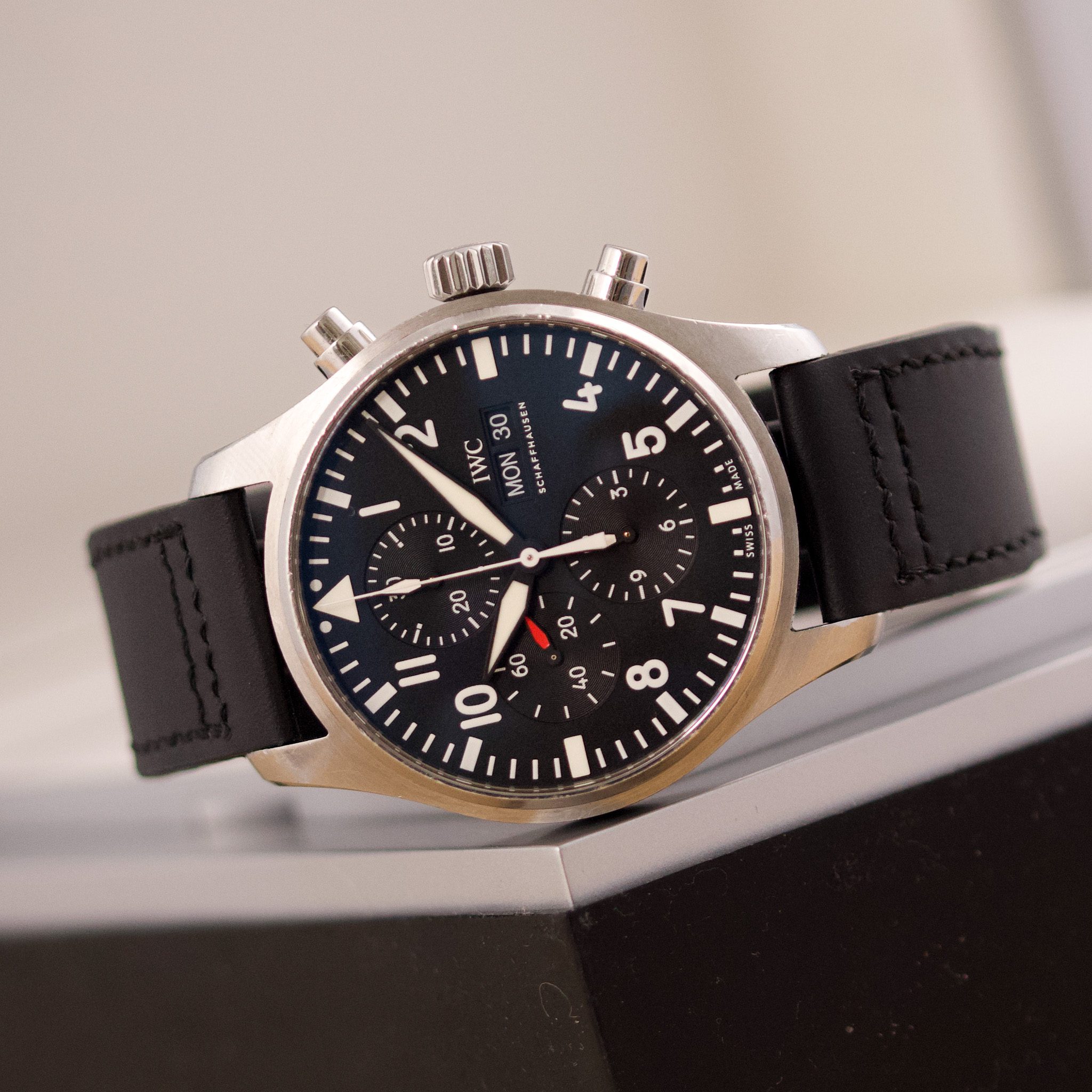 Originally sold in 2018, this example remains in good condition, with a fully functional automatic chronograph movement ensuring precise timekeeping and reliable performance. It is fitted with a calb leather strap, adding a more classic and refined touch to the overall look. Presented as a full set with its original IWC box and papers, this Pilot Chronograph is an excellent choice for collectors or those seeking a versatile, high-performance timepiece for daily wear.