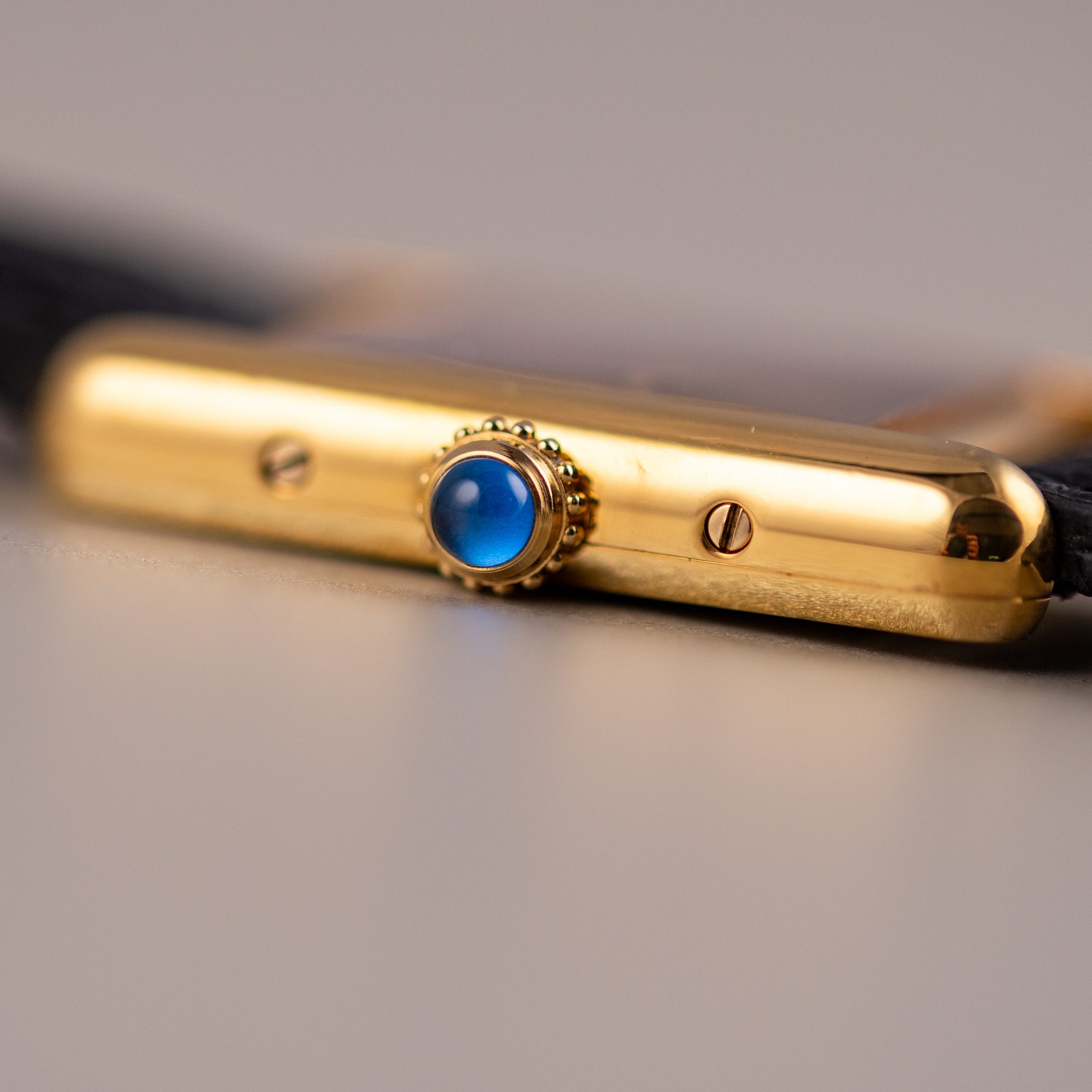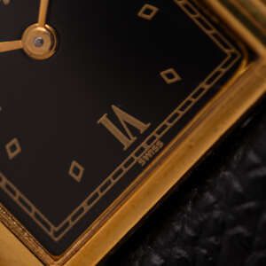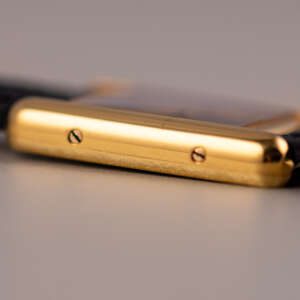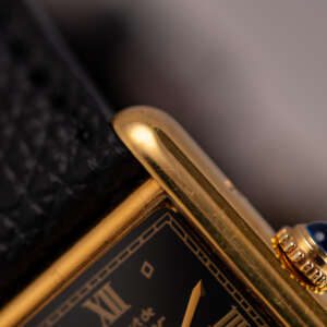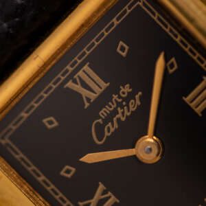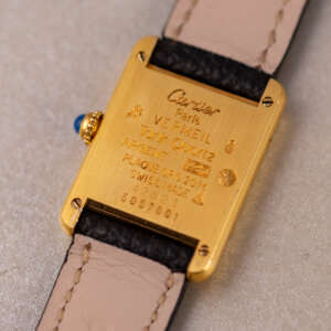 The Must de Cartier Tank, ref. 5057001, epitomizes understated luxury with its rectangular vermeil case, Roman numerals, and signature cabochon crown, offering a timeless design that seamlessly blends elegance and versatility for both formal occasions and everyday wear.