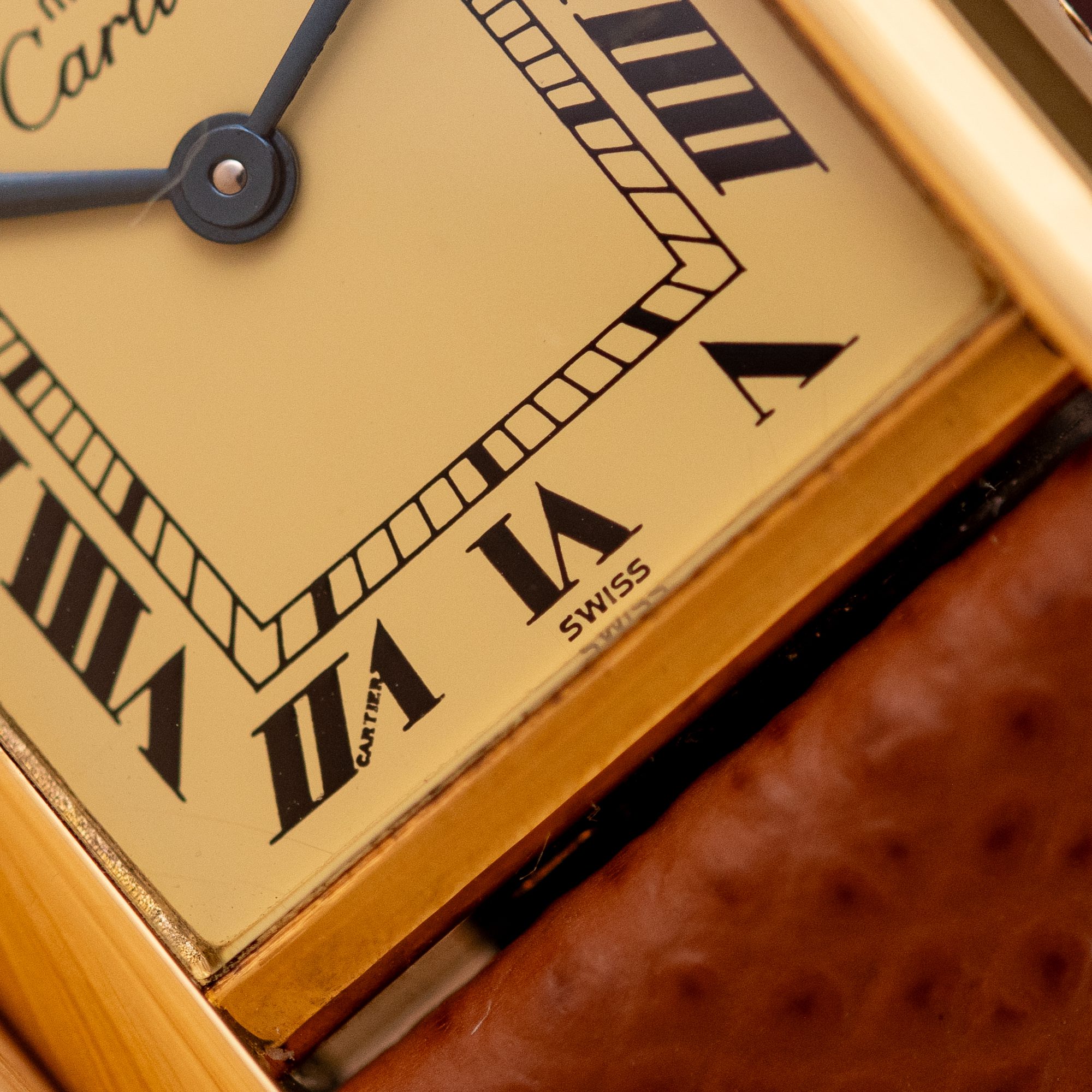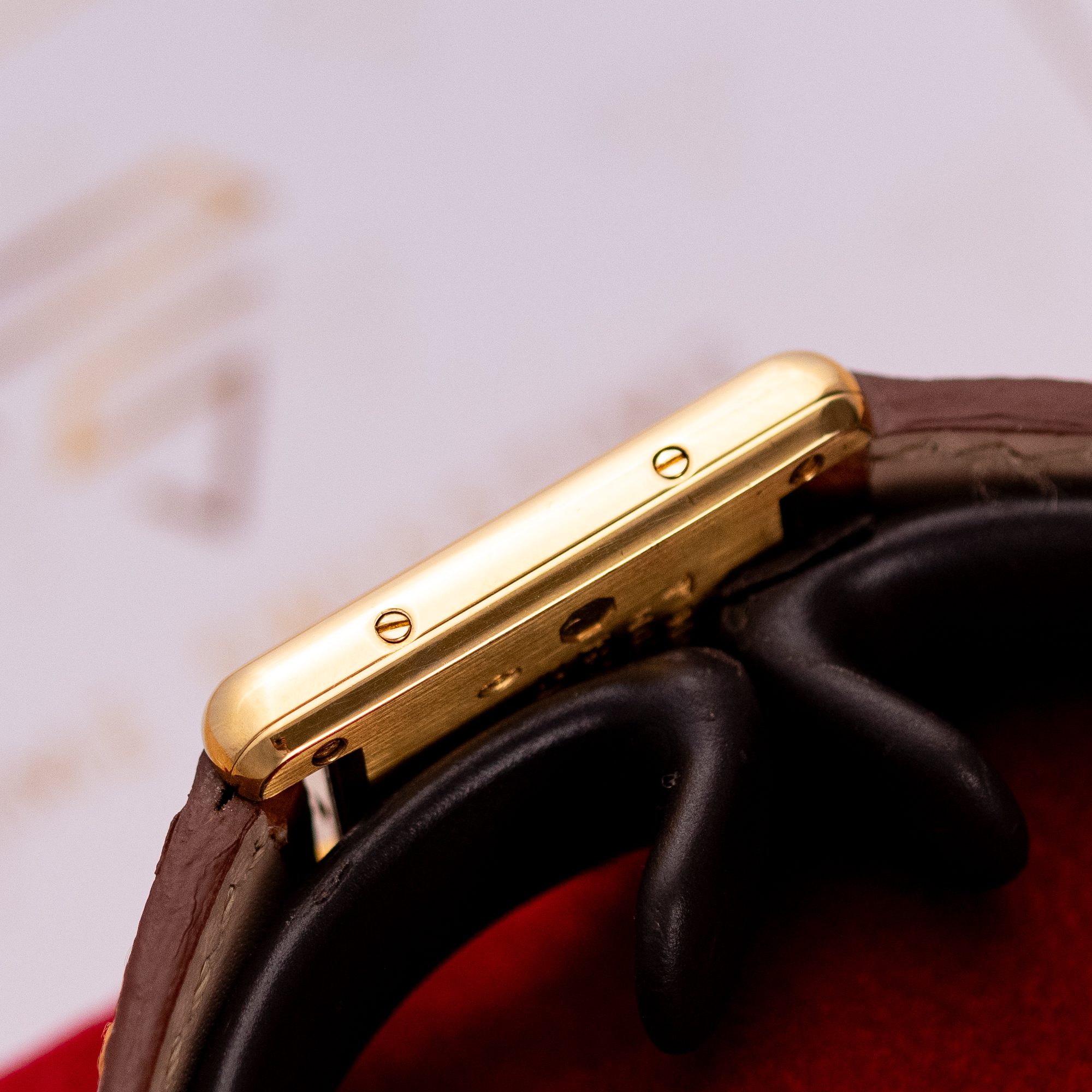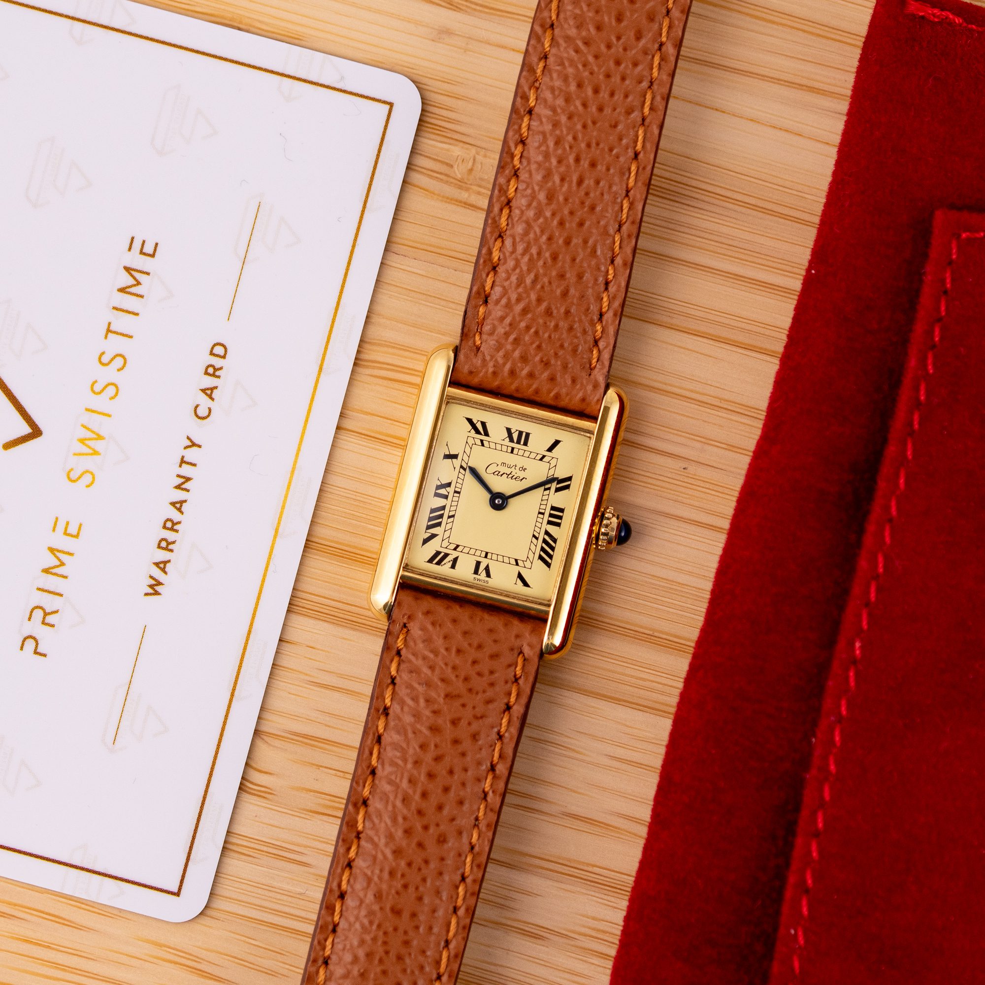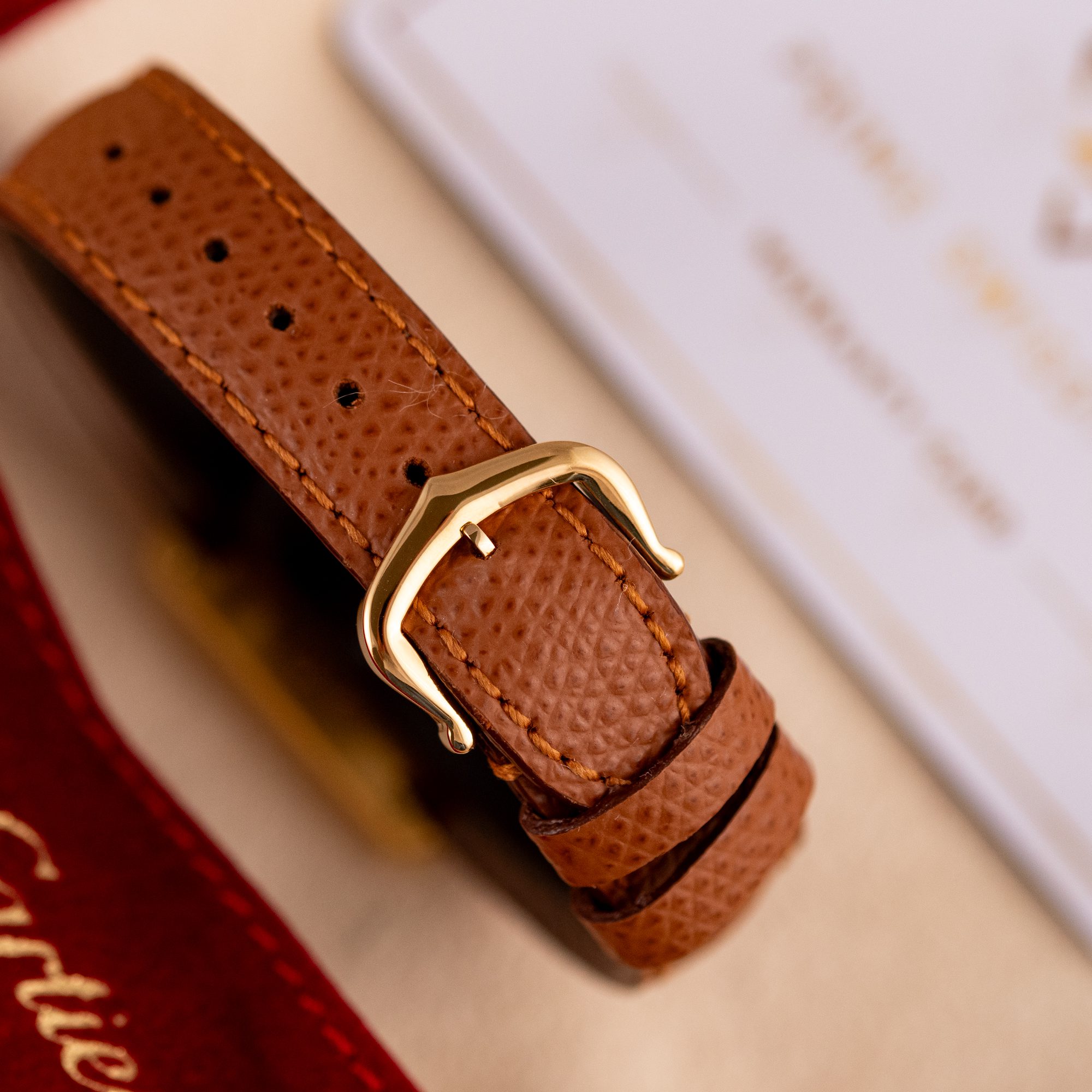 This example features a refined Champagne dial, lending a warm, sophisticated aesthetic to its classic profile. The watch is in very good condition, with a fully functional quartz movement ensuring reliable timekeeping. Fitted with a new leather strap for enhanced comfort and style, it is sold as watch only, making this Must de Cartier Tank an appealing choice for collectors or those seeking a distinguished, minimalist timepiece.
