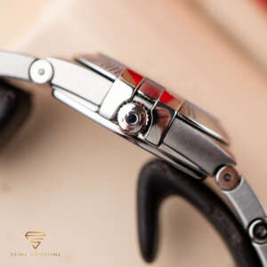 This particular piece features an exceptional pink mother-of-pearl dial with diamond indexes. Sold in 2023, it is in practically unworn condition, offering a fantastic opportunity for collectors.