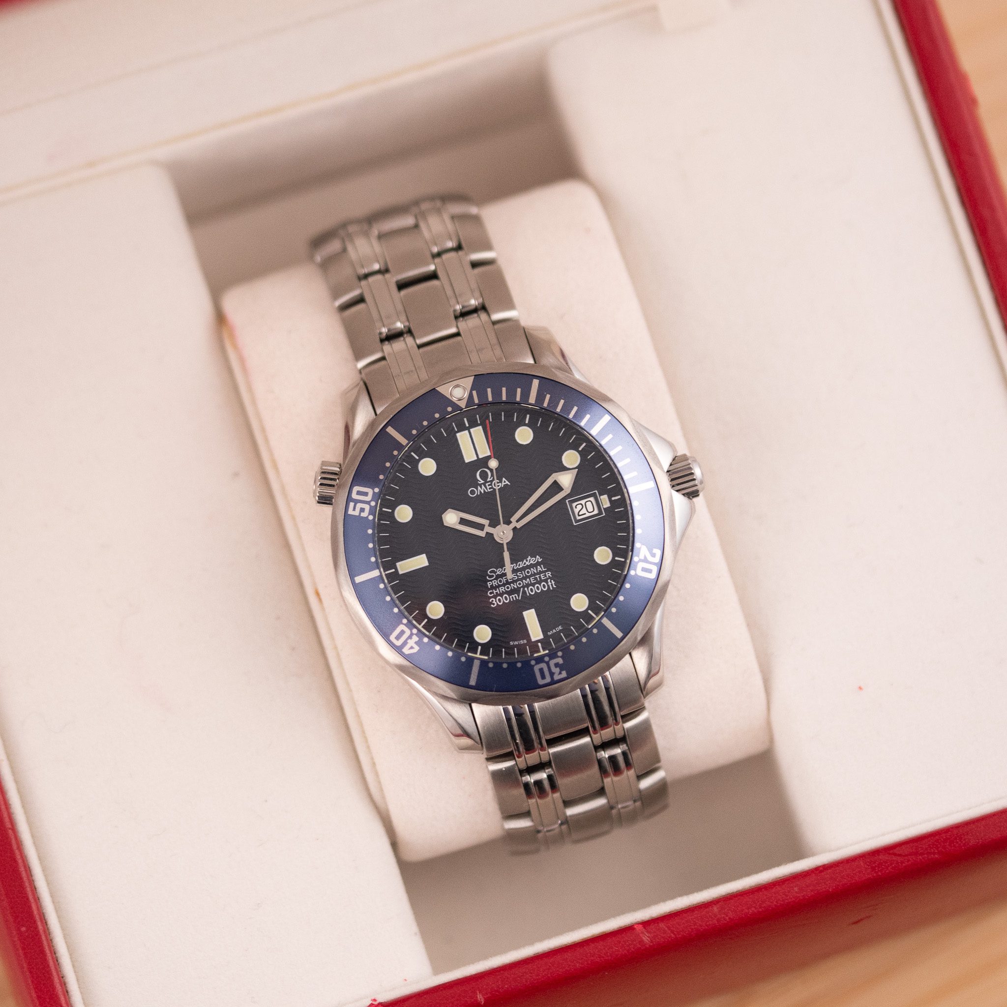 Based on the serial number, this watch can be dated to approximately 2006, which is consistent with the production period of this reference. This example is in very good condition, with a fully functional automatic movement ensuring reliable performance. Presented with its original Omega box, this Seamaster is a great choice for collectors or those seeking a classic and highly recognisable dive watch for daily wear.
