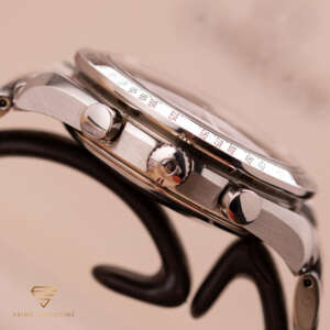 This particular piece, originally sold in 2007, is freshly serviced and comes as a full set with the original box and papers. A fantastic choice for collectors looking for a reliable and timeless chronograph.