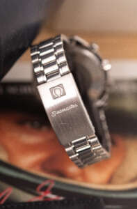 This particular watch, originally sold in 1995, is in excellent condition and comes with the original box, making it a perfect choice for anyone looking for a collectible Speedmaster with both history and everyday wearability.