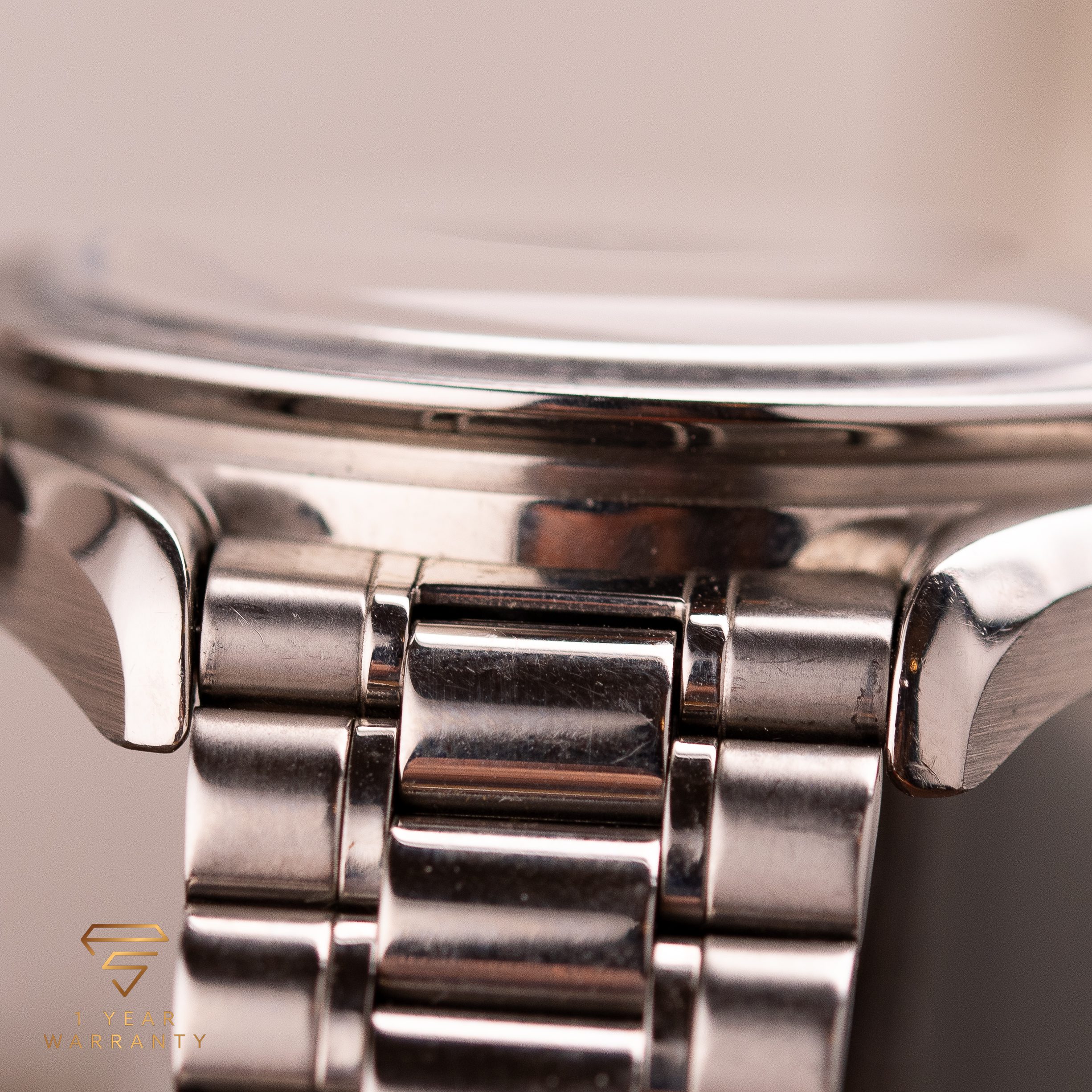 This particular piece, dating back to the 1990s, is in good condition and has been freshly serviced. The watch comes with the original box, making it an excellent choice for those seeking a classic timepiece in a smaller format.