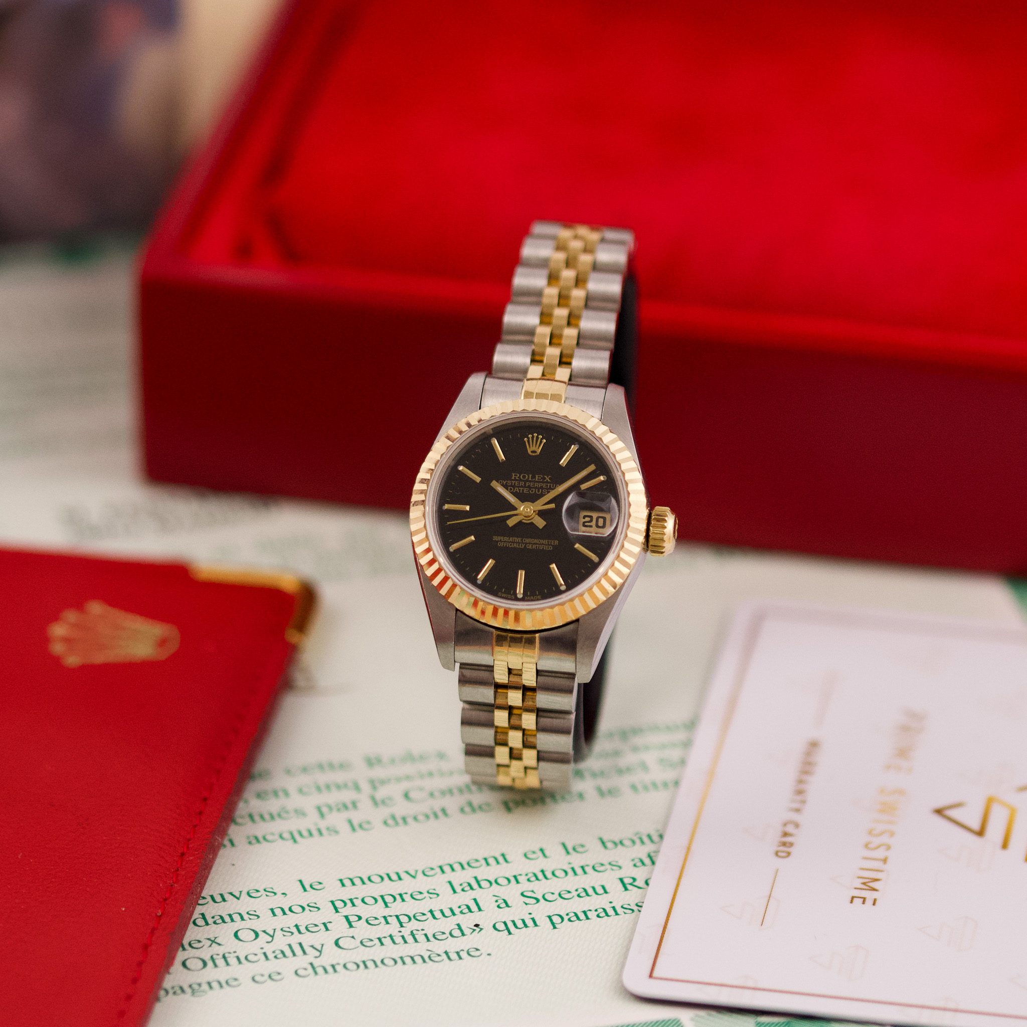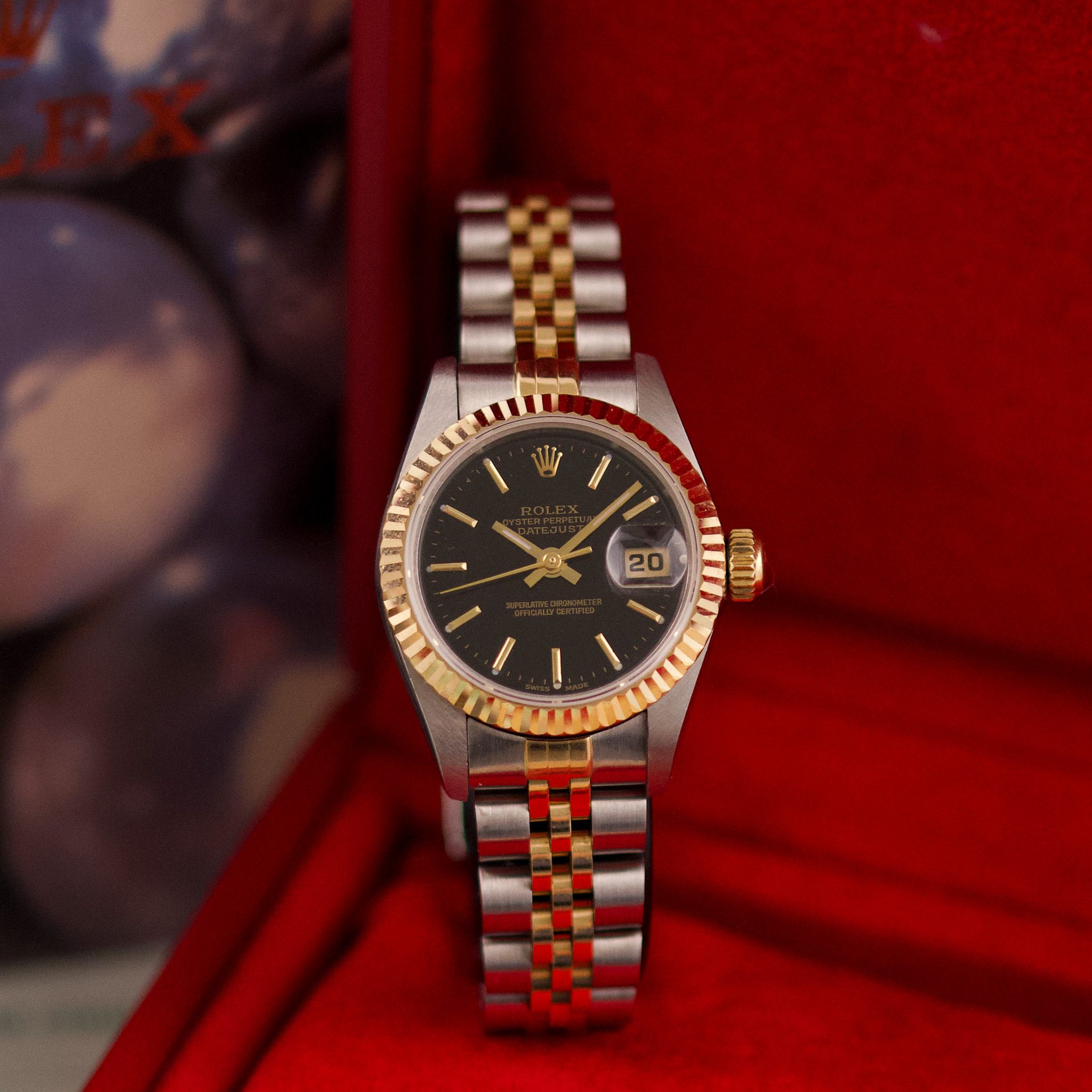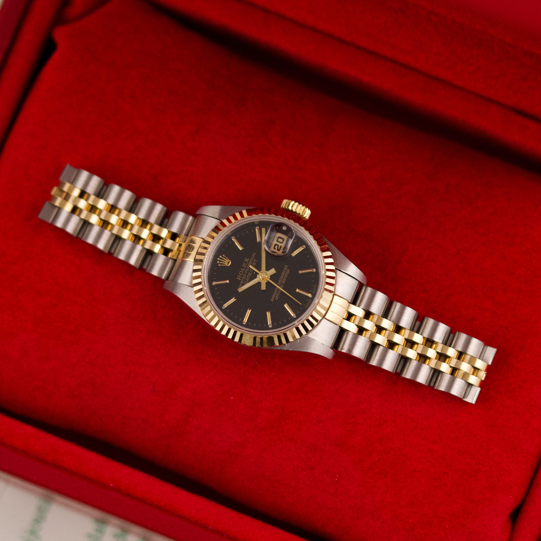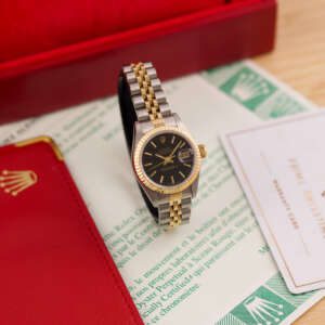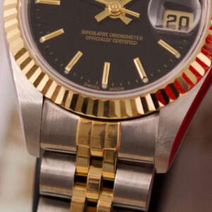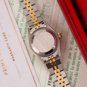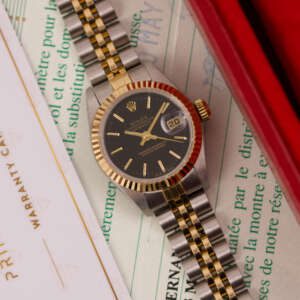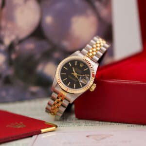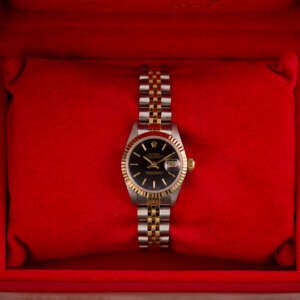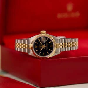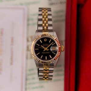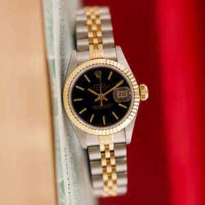 The Rolex Datejust 26, ref. 69173, crafted in stainless steel and yellow gold, features a 26mm case with a fluted bezel, embodying a classic two-tone design that blends refined elegance with versatile wearability, perfect for both formal occasions and daily use.