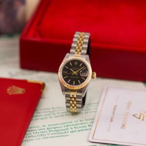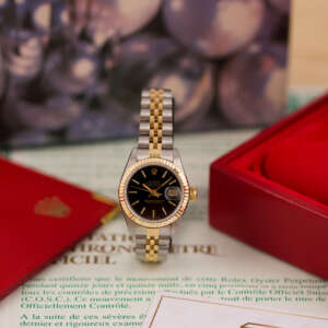 Originally sold in 1988, this example showcases a stunning Black dial. The watch was serviced in 2026 and is in very good condition, with a fully functional automatic movement ensuring precise timekeeping. The Jubilee bracelet, sized for wrists up to 16 cm, shows minimal stretch, preserving its structural integrity. Presented as a full set with its original Rolex box and papers, this Datejust is a distinguished choice for collectors or those seeking a well-maintained vintage timepiece.
