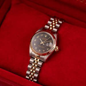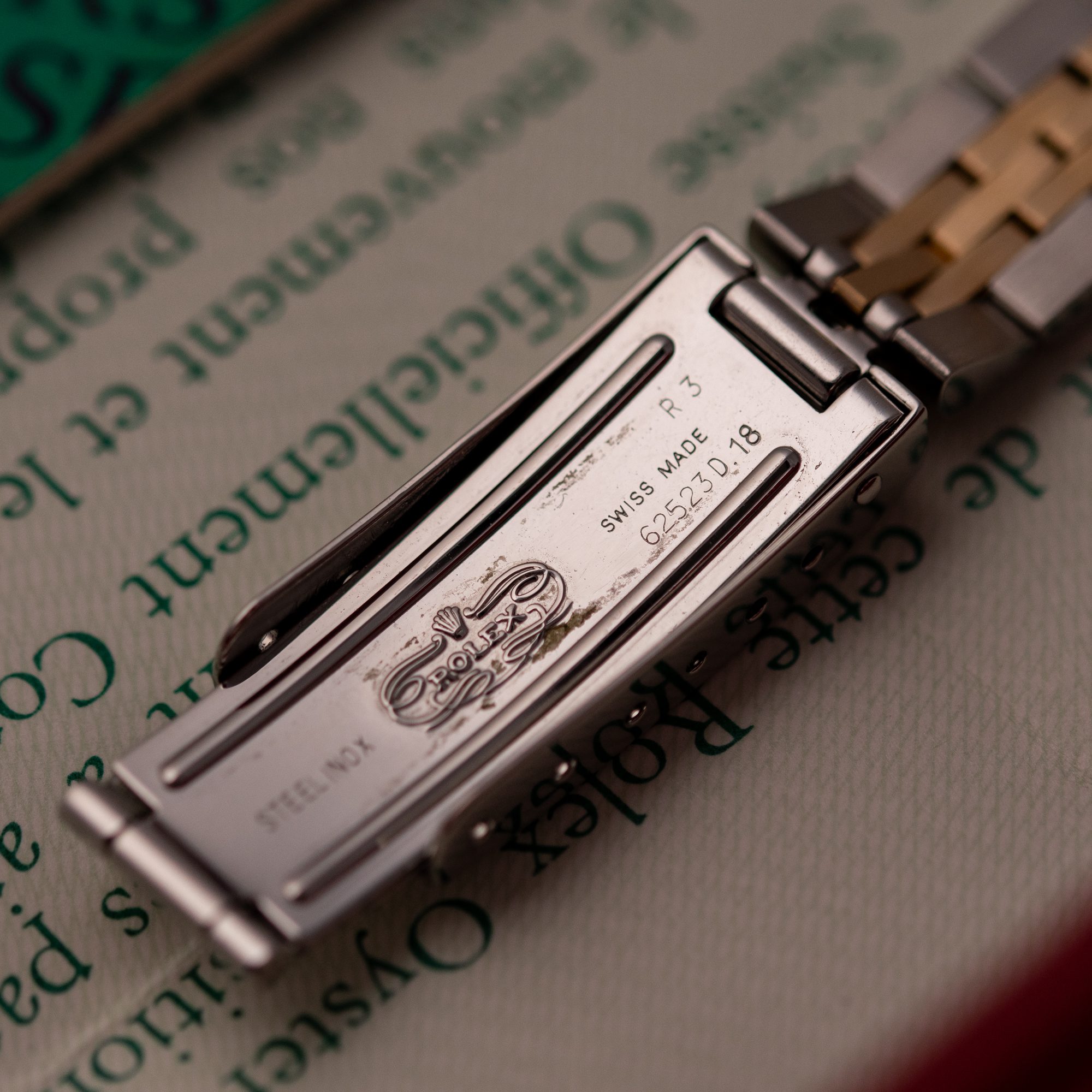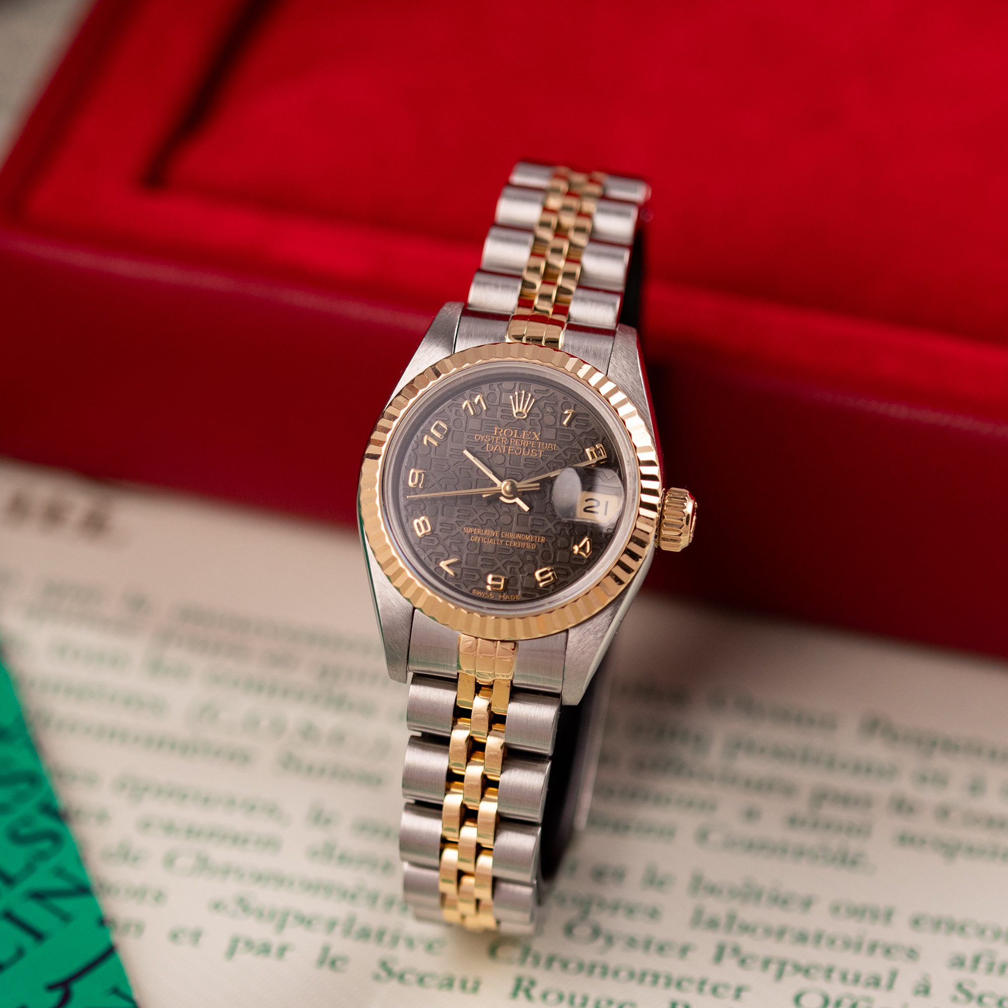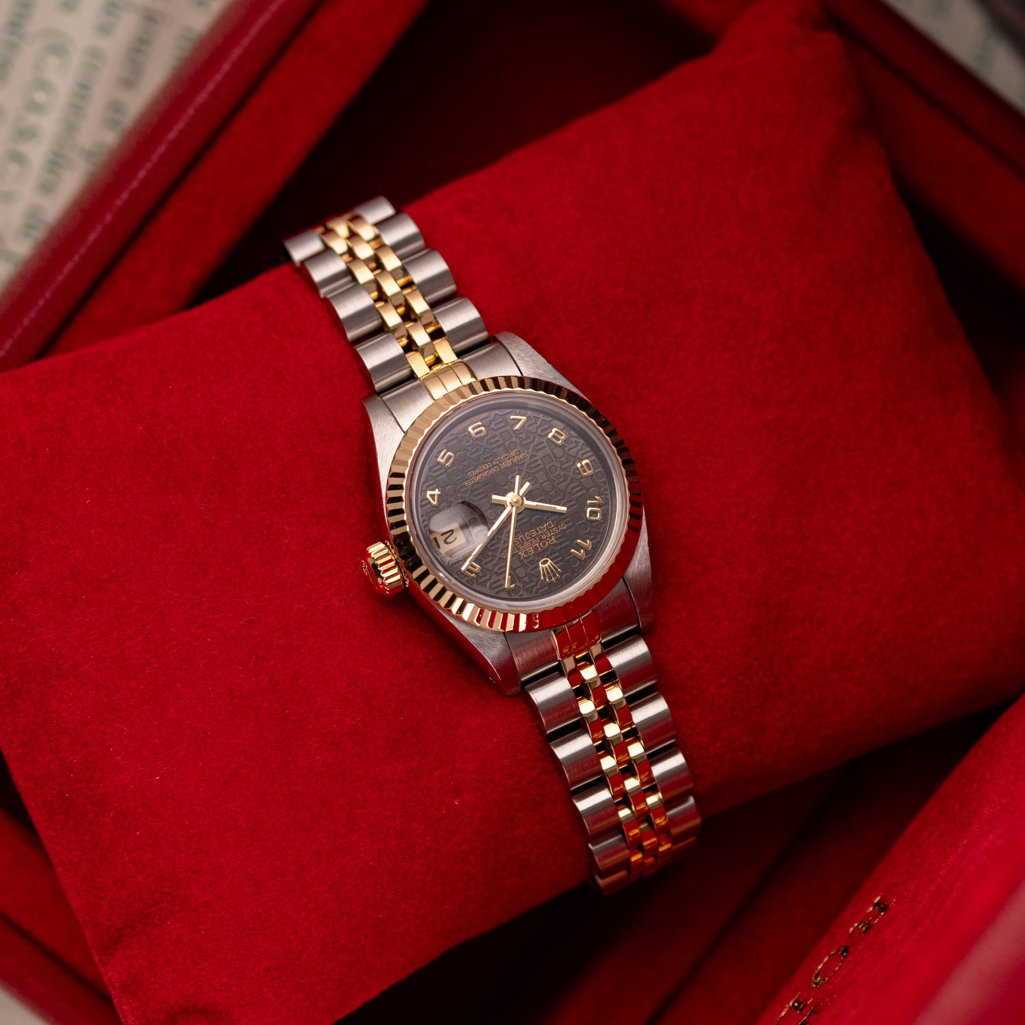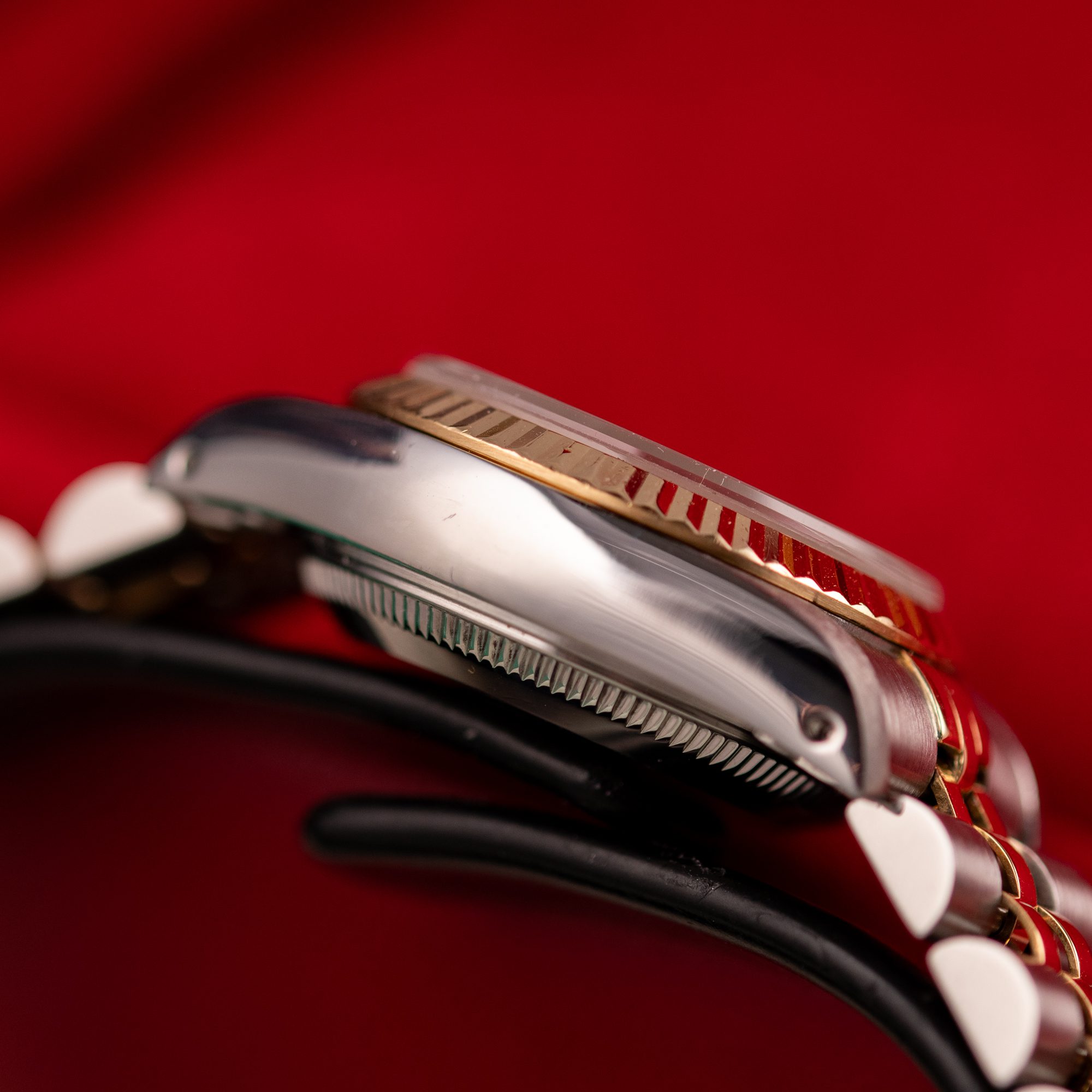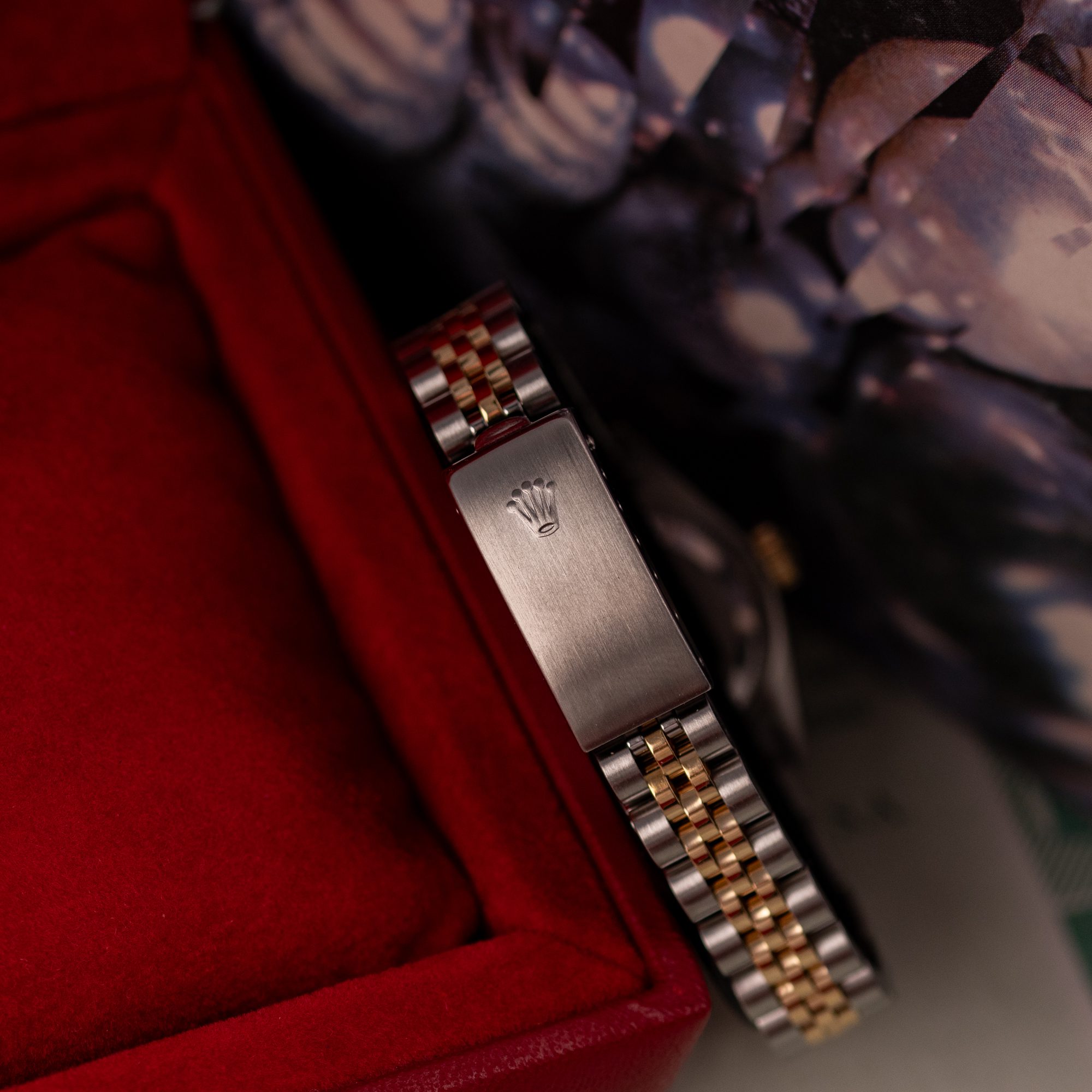 The Rolex Datejust 26, ref. 69173, is a timeless icon of refined elegance, crafted in a sophisticated two-tone steel and yellow gold design. Its compact size, fluted bezel, and classic aesthetic make it a coveted choice for those who cherish luxurious versatility with a distinctive charm.