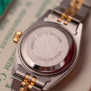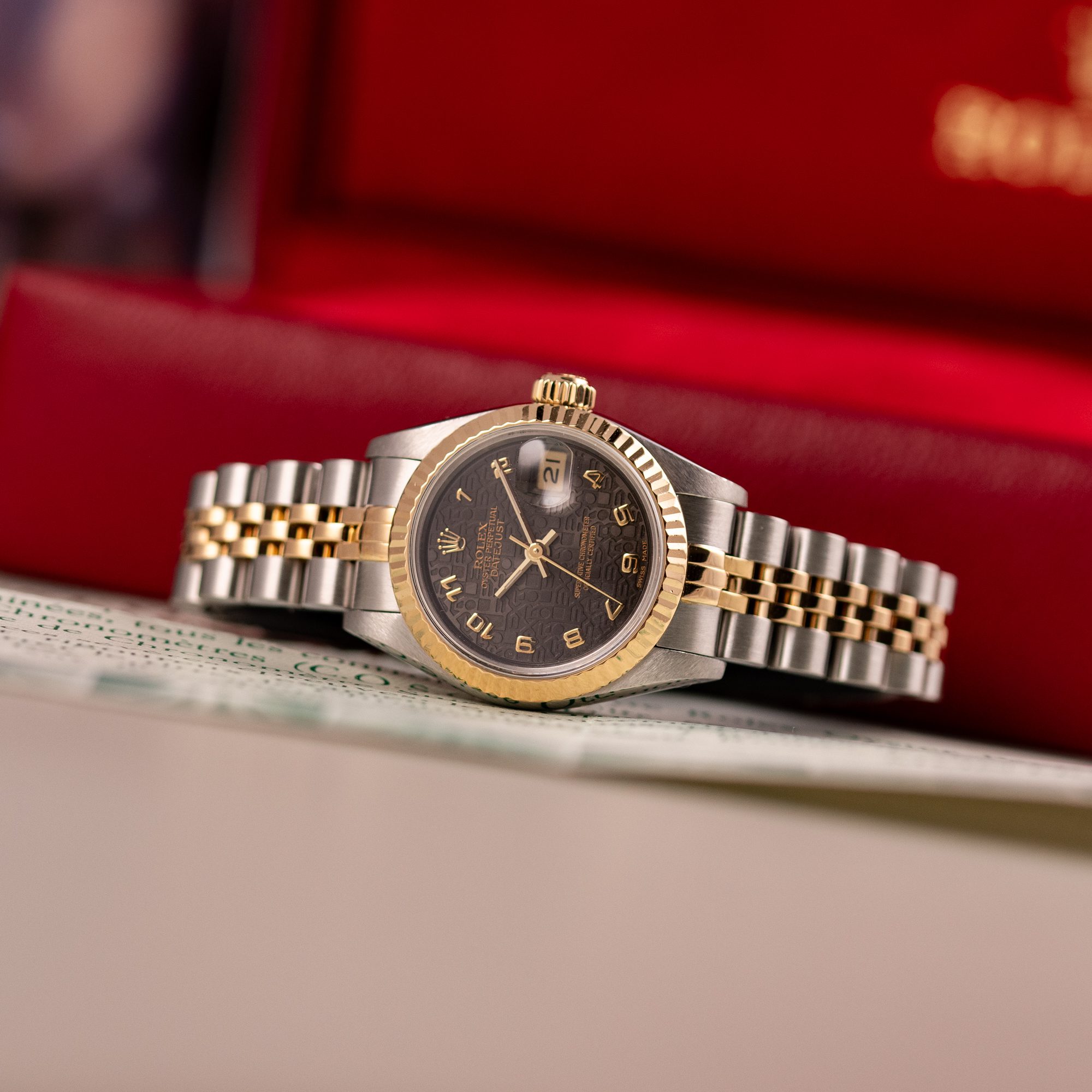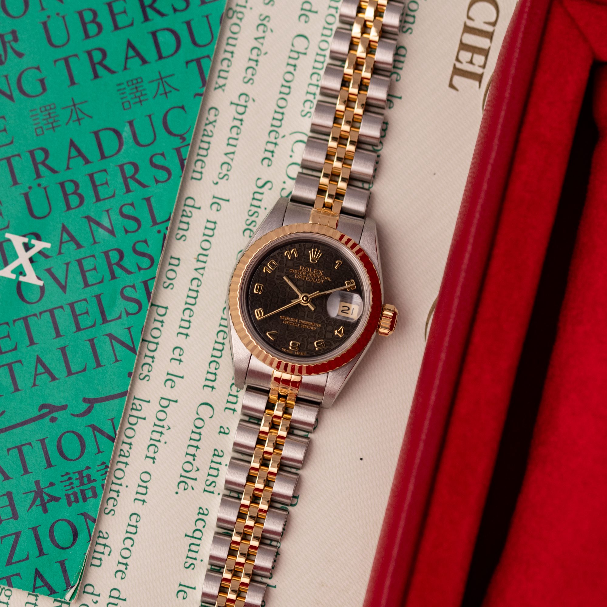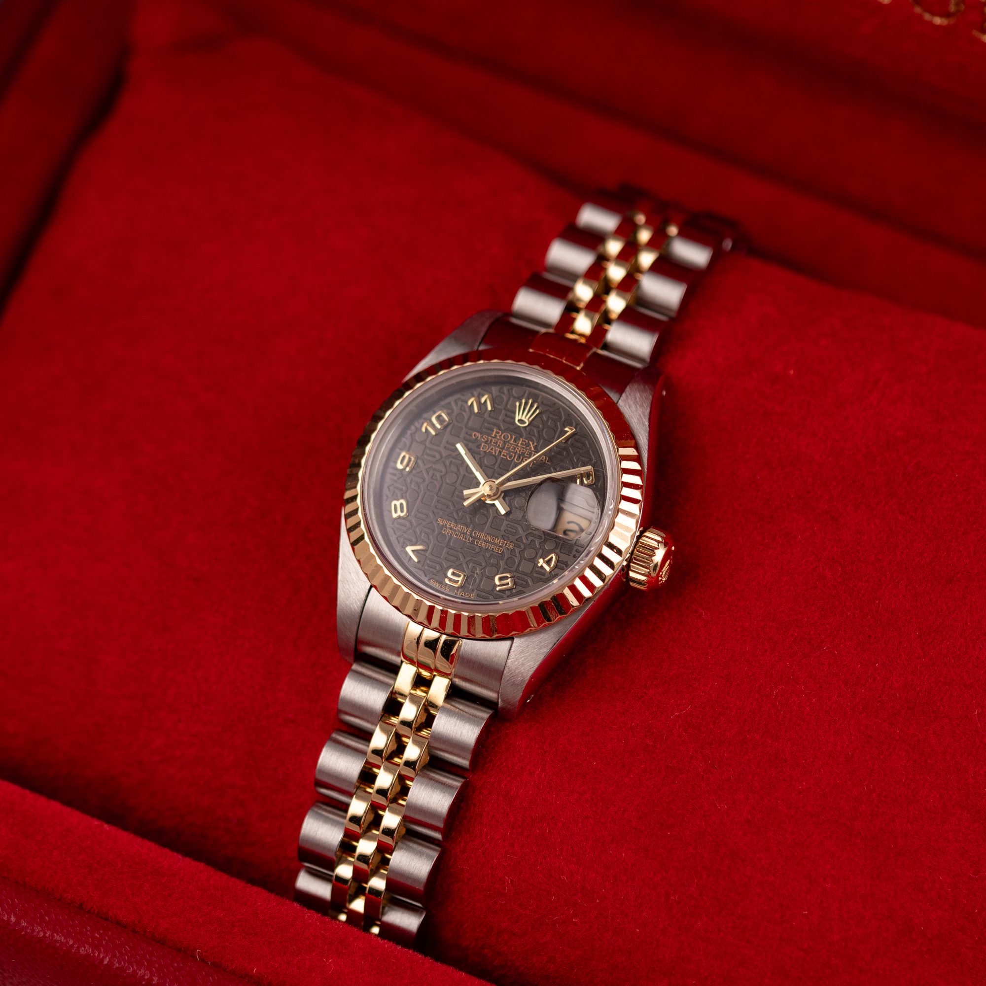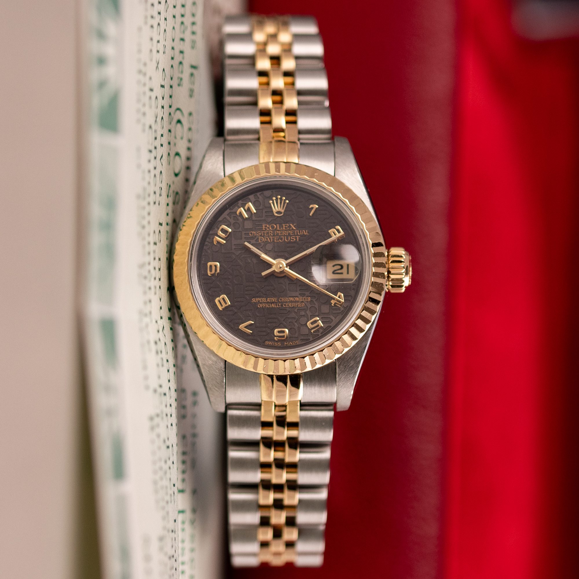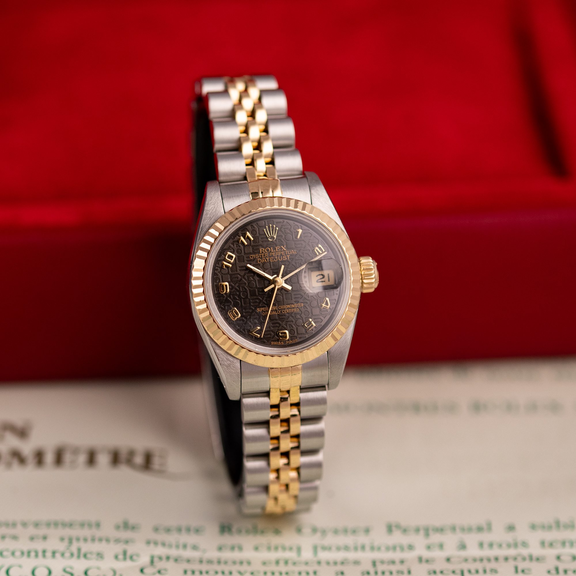 The Rolex Datejust 26, ref. 69173, is a timeless icon of refined elegance, crafted in a sophisticated two-tone steel and yellow gold design. Its compact size, fluted bezel, and classic aesthetic make it a coveted choice for those who cherish luxurious versatility with a distinctive charm.
