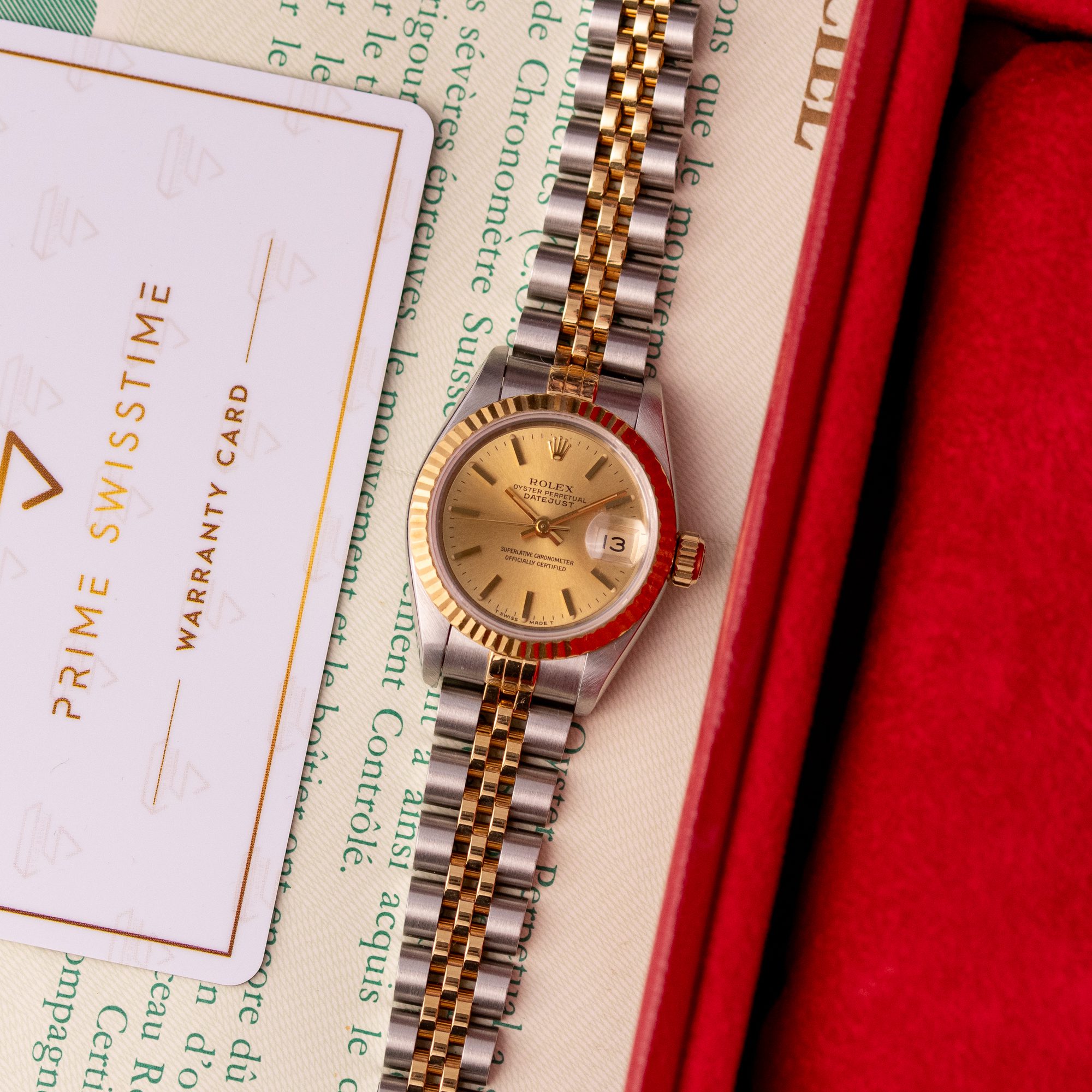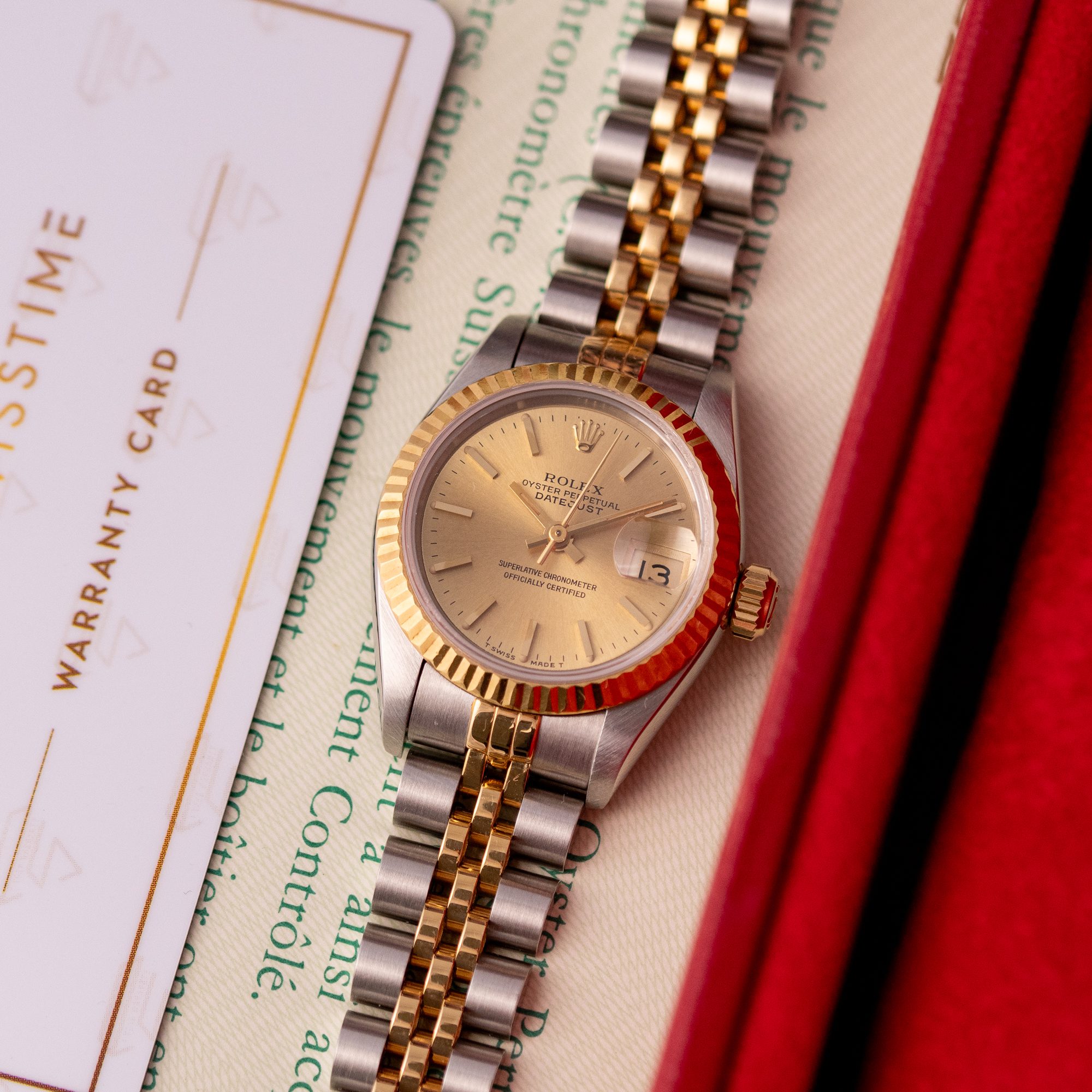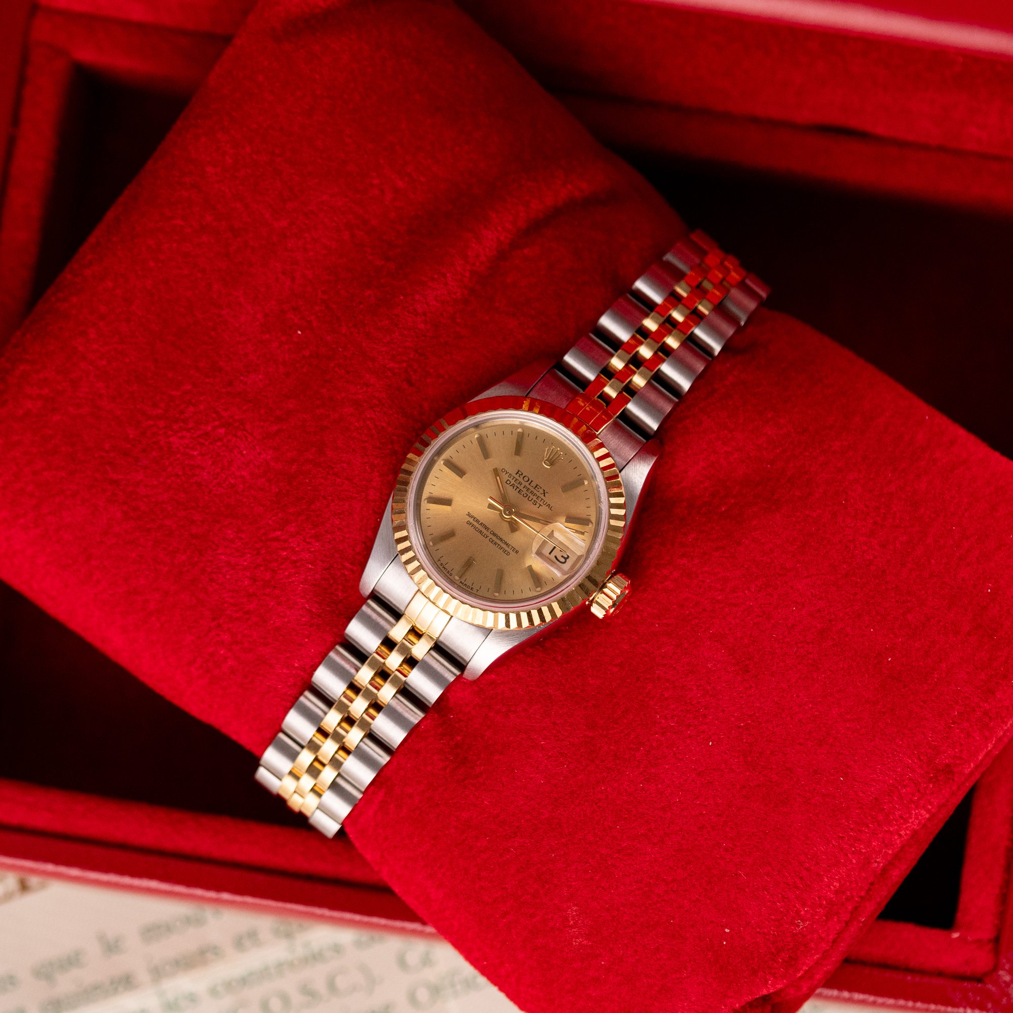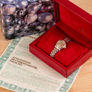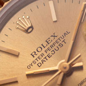 Originally sold in 1993, this example showcases a timeless Champagne dial, offering a warm, sophisticated aesthetic. The watch is in very good condition, with a fully functional automatic movement ensuring reliable performance. The Jubilee bracelet, sized for wrists up to 16 cm, exhibits minimal stretch, maintaining its structural integrity. Presented as a full set with its original Rolex box and papers, this Datejust is an excellent choice for collectors or those seeking a refined vintage timepiece.