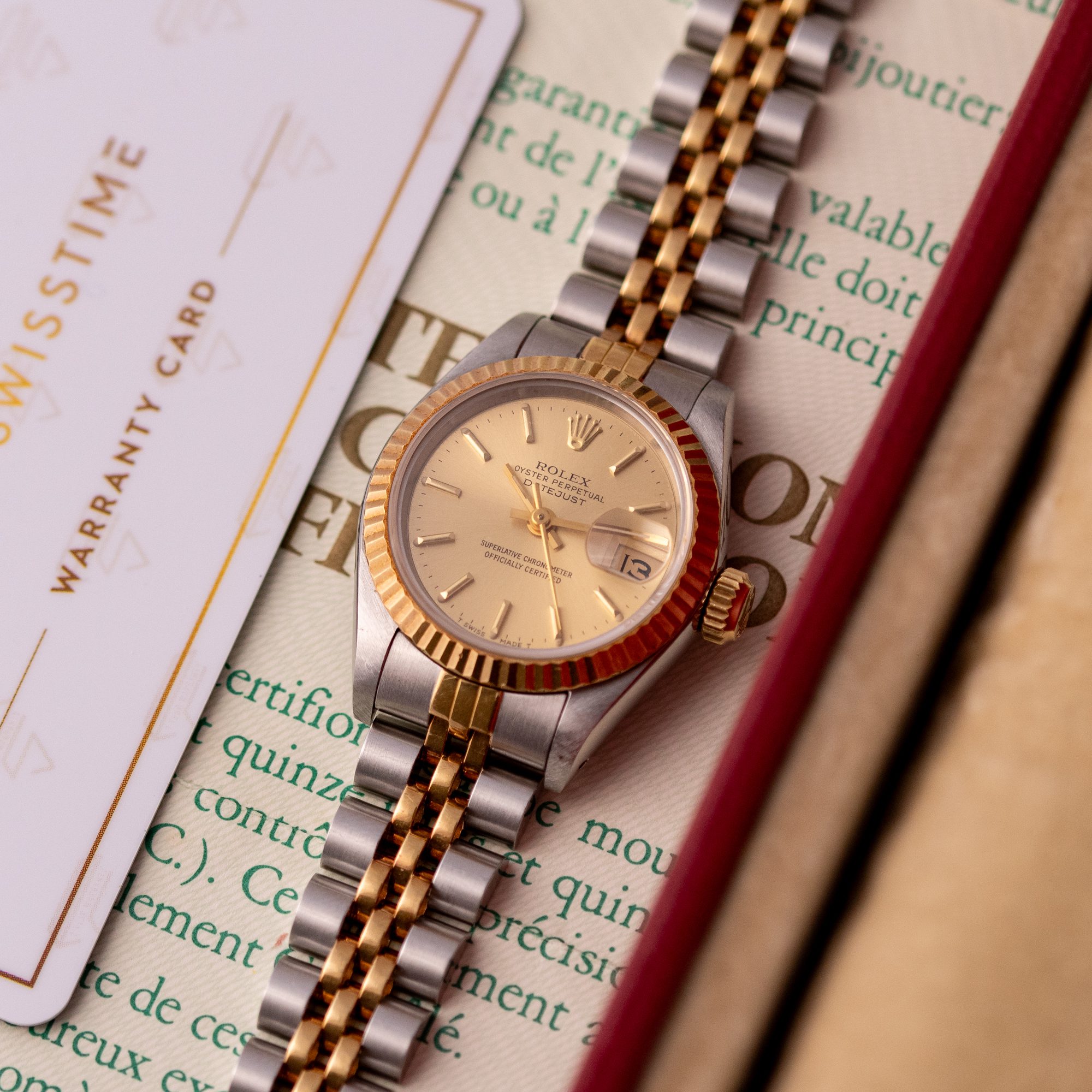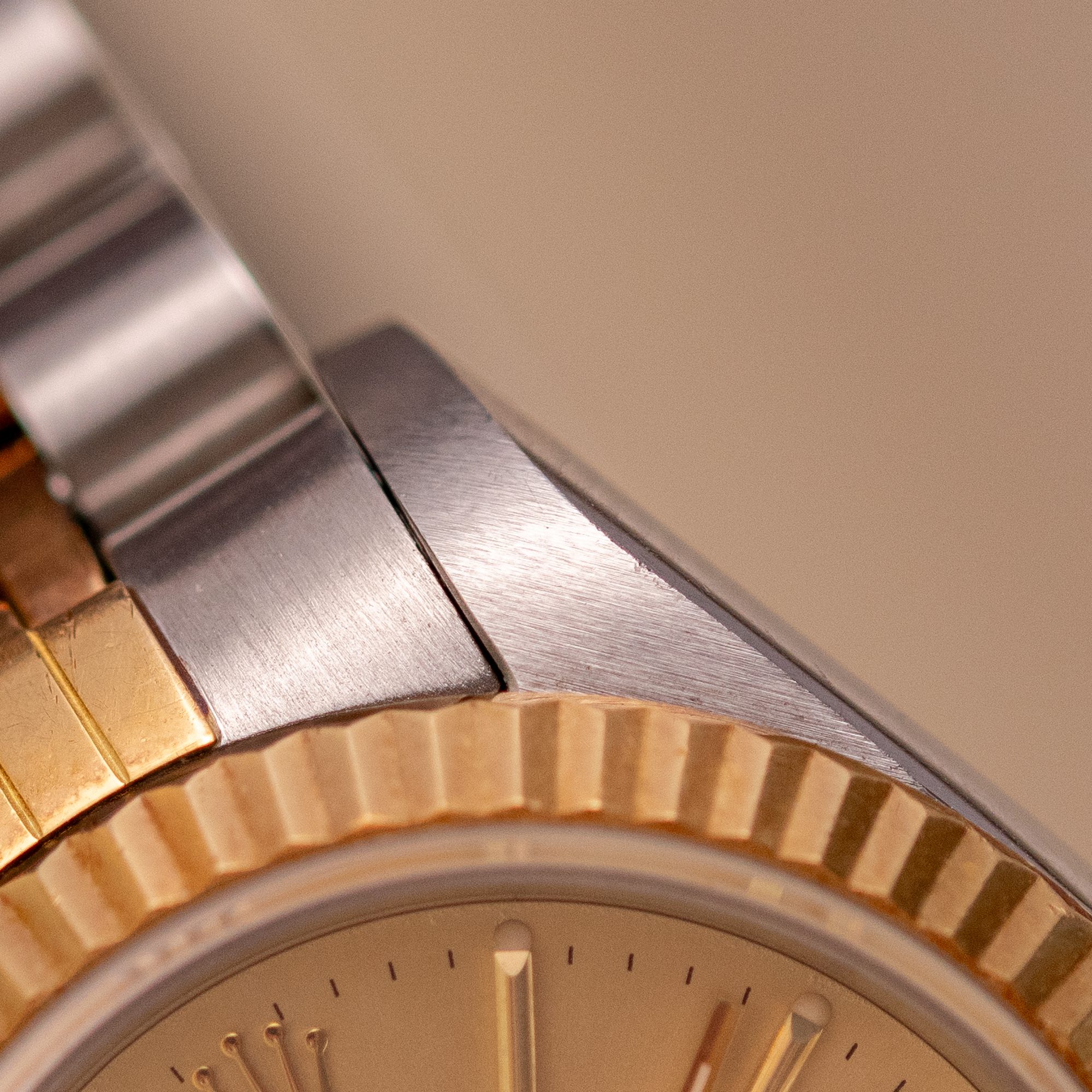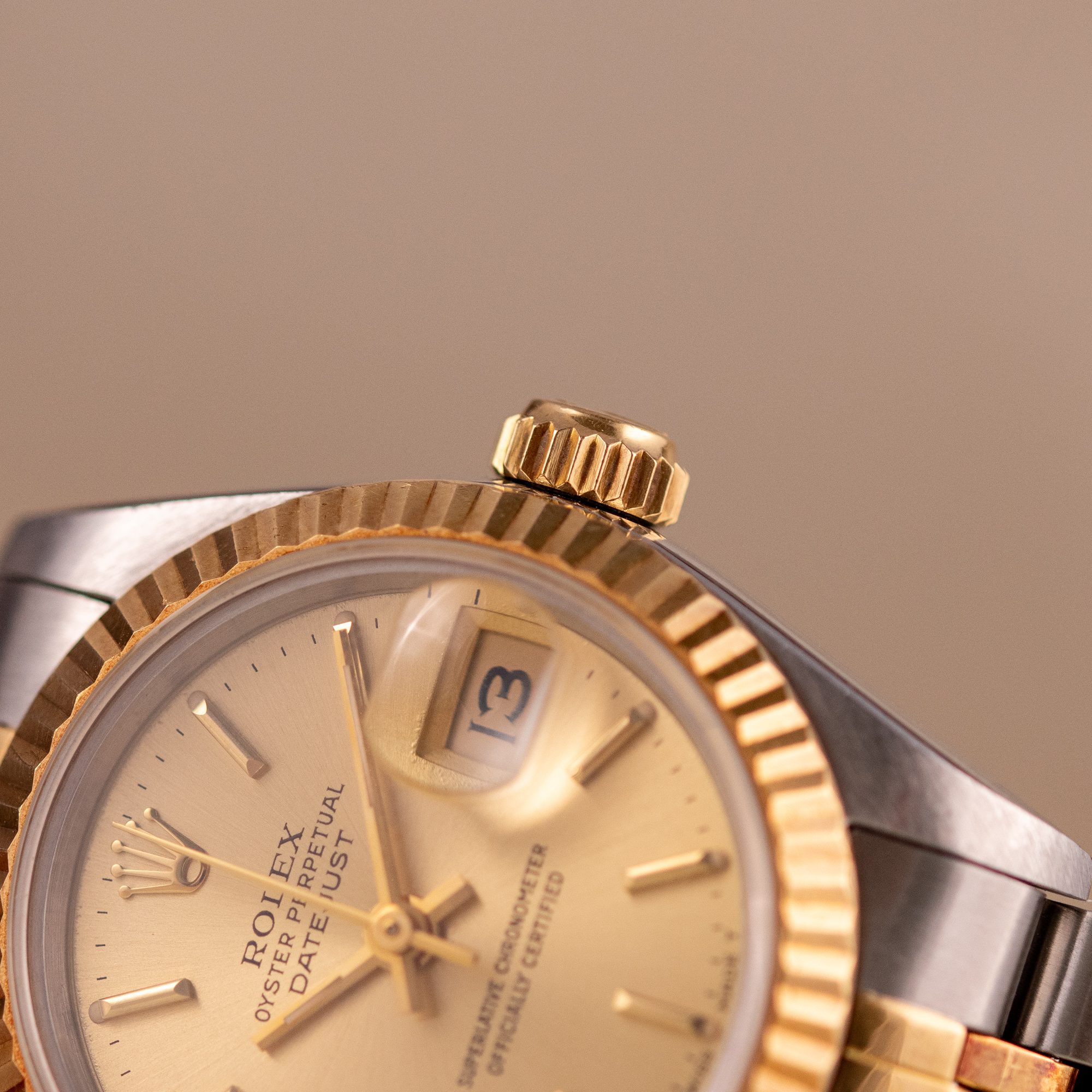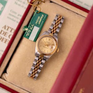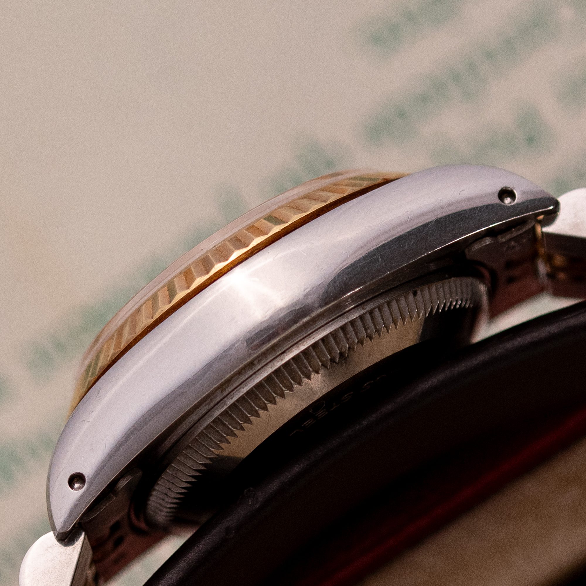 The Rolex Datejust 26 ref. 69173 is a timeless and elegant ladies’ timepiece that combines stainless steel and yellow gold for a refined two-tone look. With its fluted bezel, classic proportions and champagne dial, it represents the enduring legacy of the Datejust line in a smaller, more delicate format.