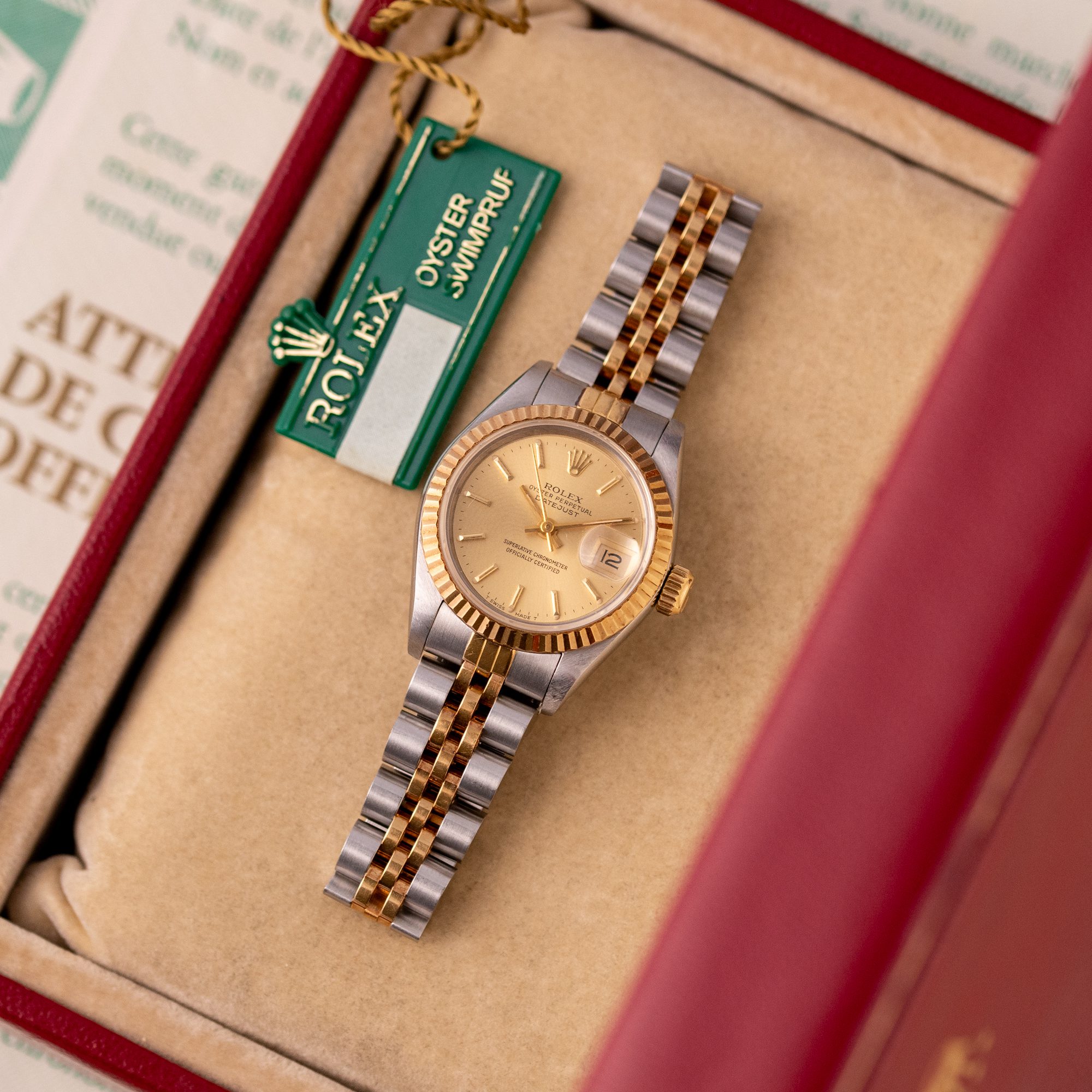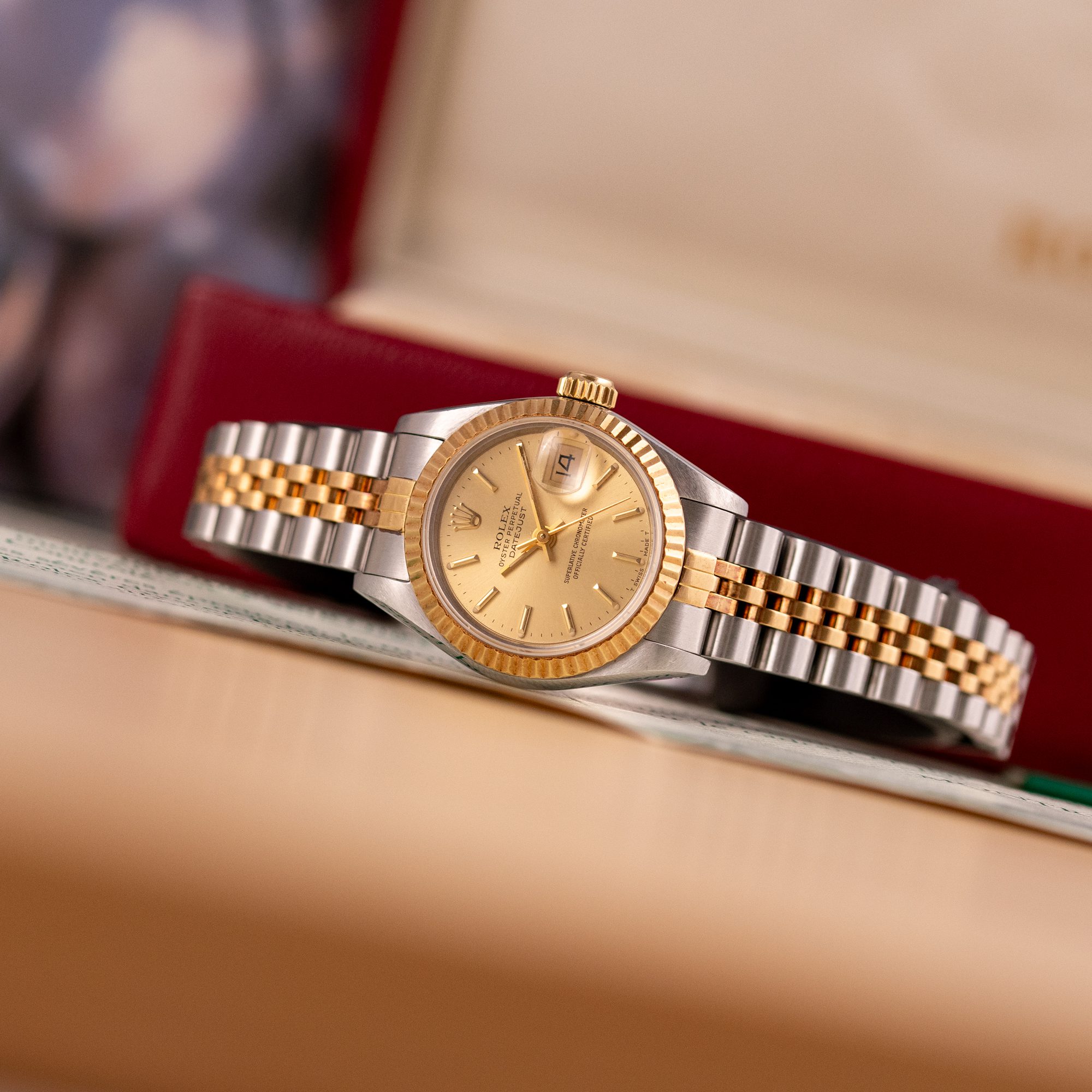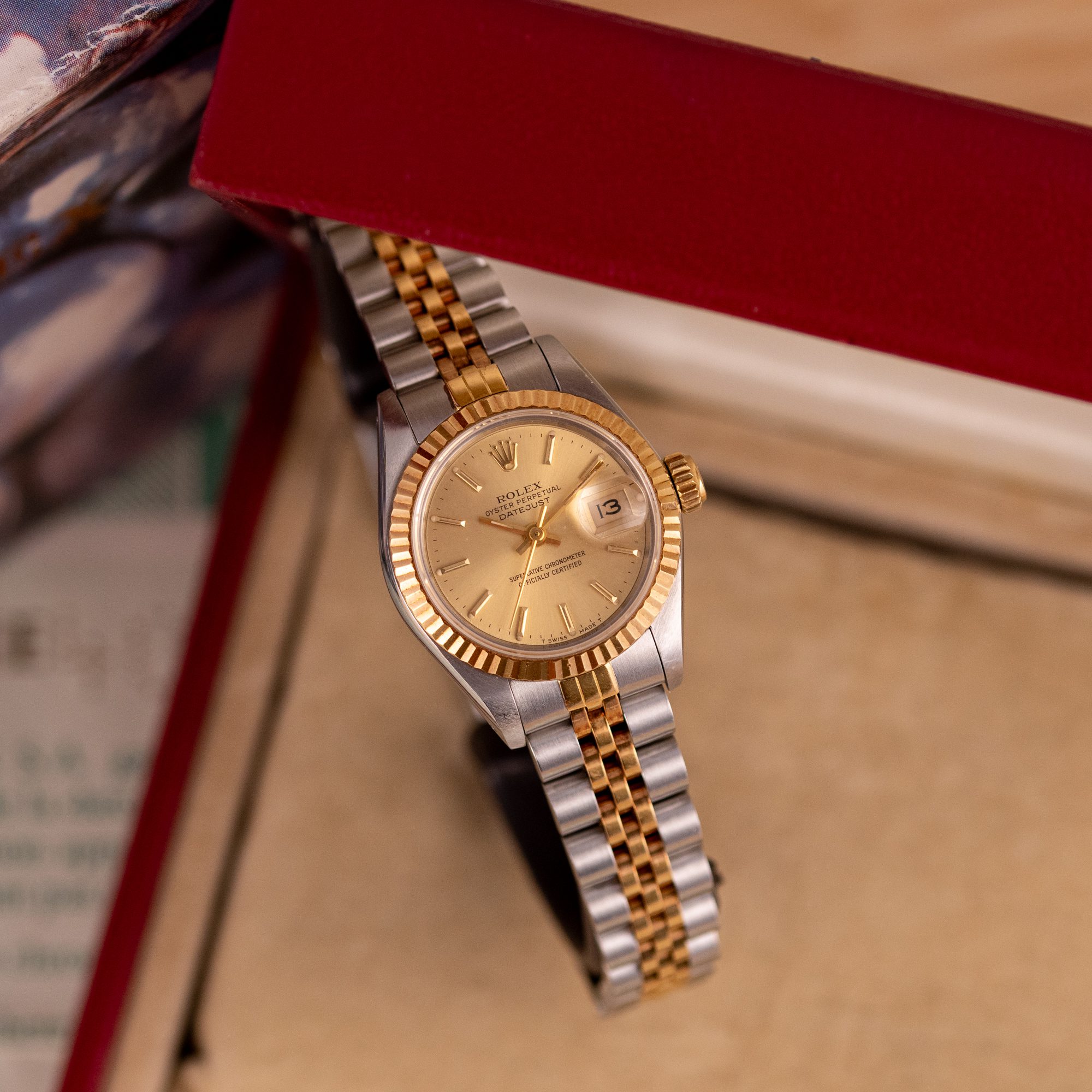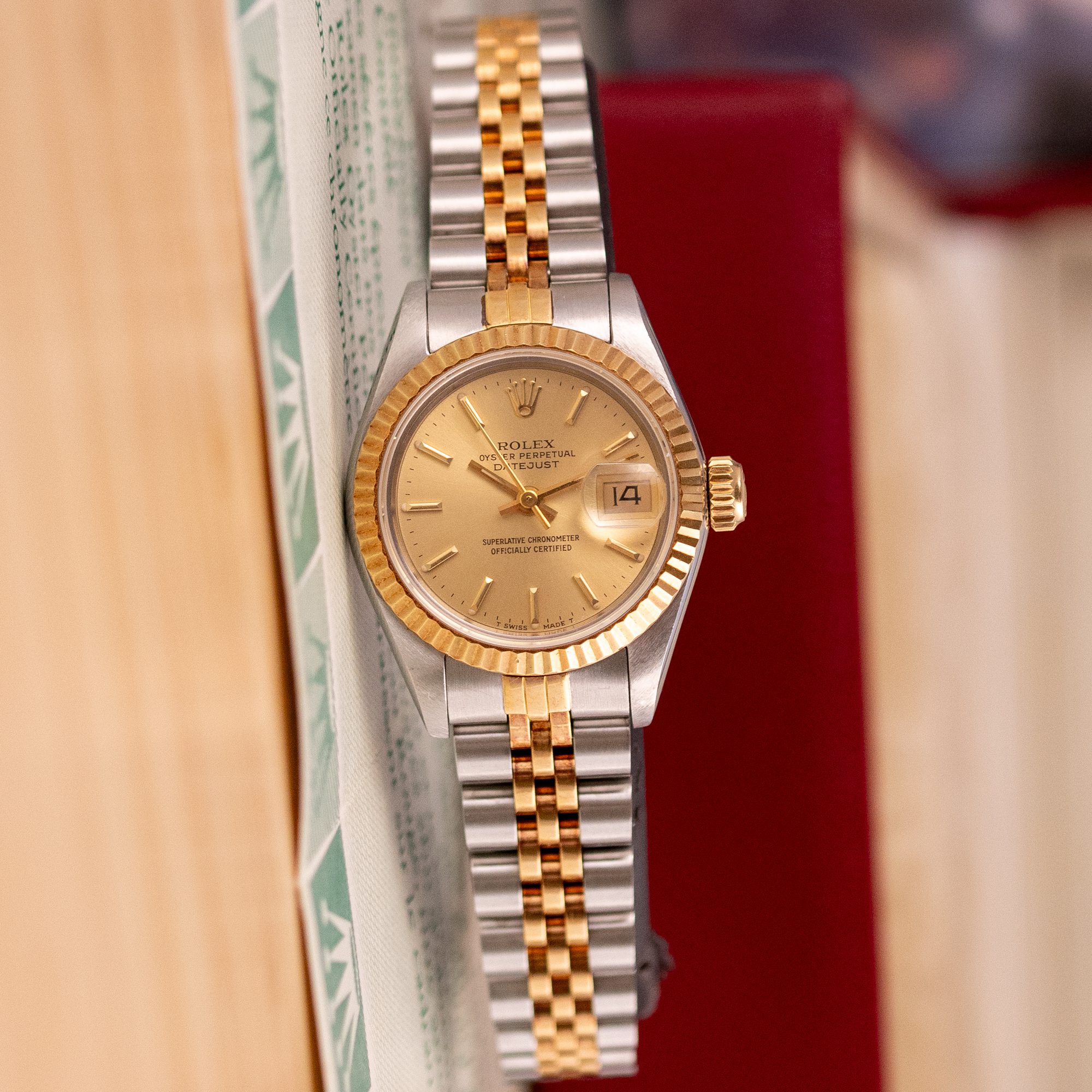 The Rolex Datejust 26 ref. 69173 is a timeless and elegant ladies’ timepiece that combines stainless steel and yellow gold for a refined two-tone look. With its fluted bezel, classic proportions and champagne dial, it represents the enduring legacy of the Datejust line in a smaller, more delicate format.