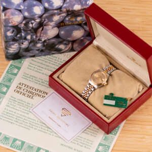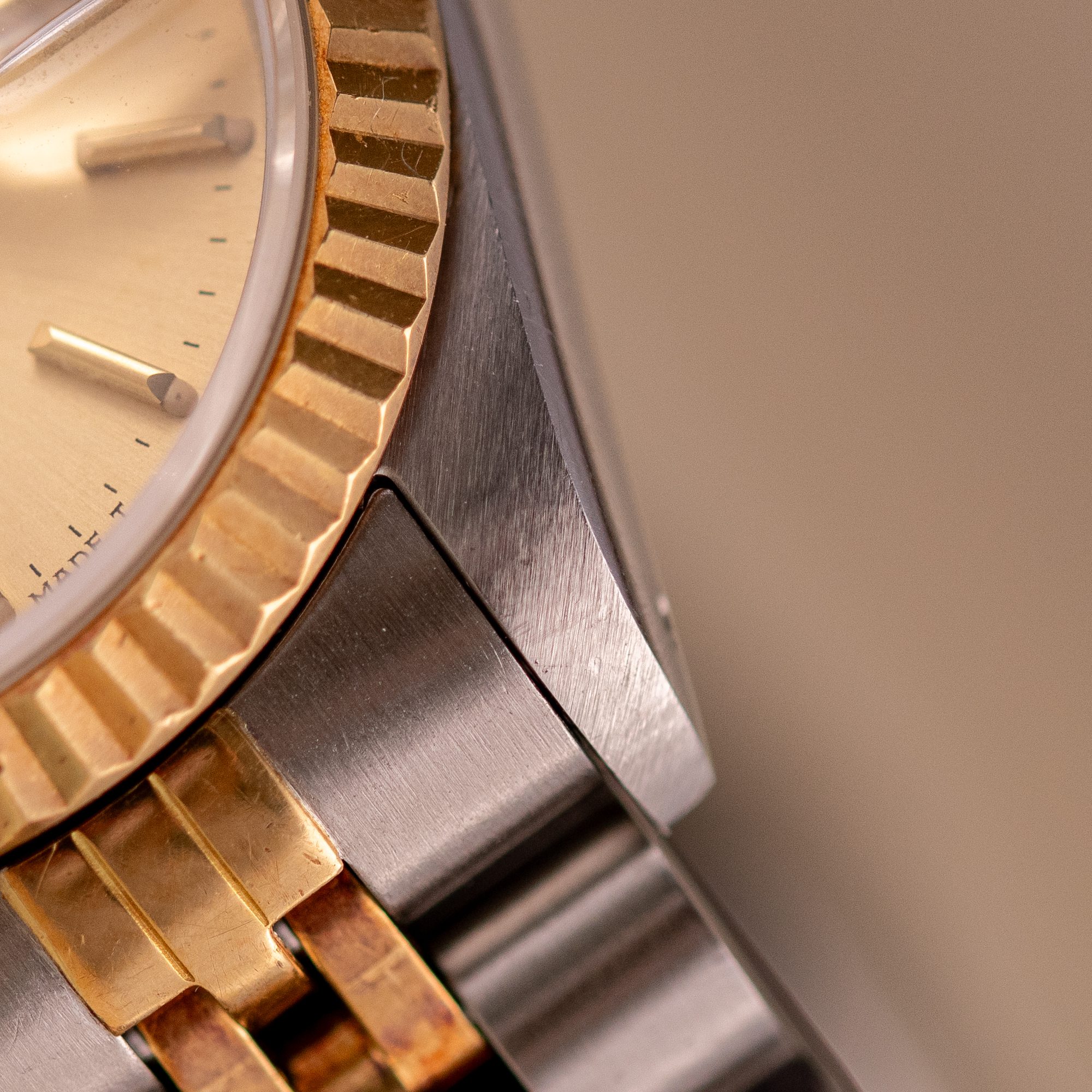 This particular example was originally sold in 1988. It features the traditional champagne dial and is in very good condition, with a tight bracelet showing no stretch. The watch has just undergone a full service and comes as a full set with the original Rolex box and papers.