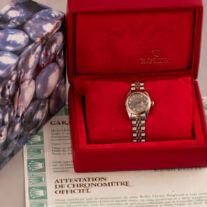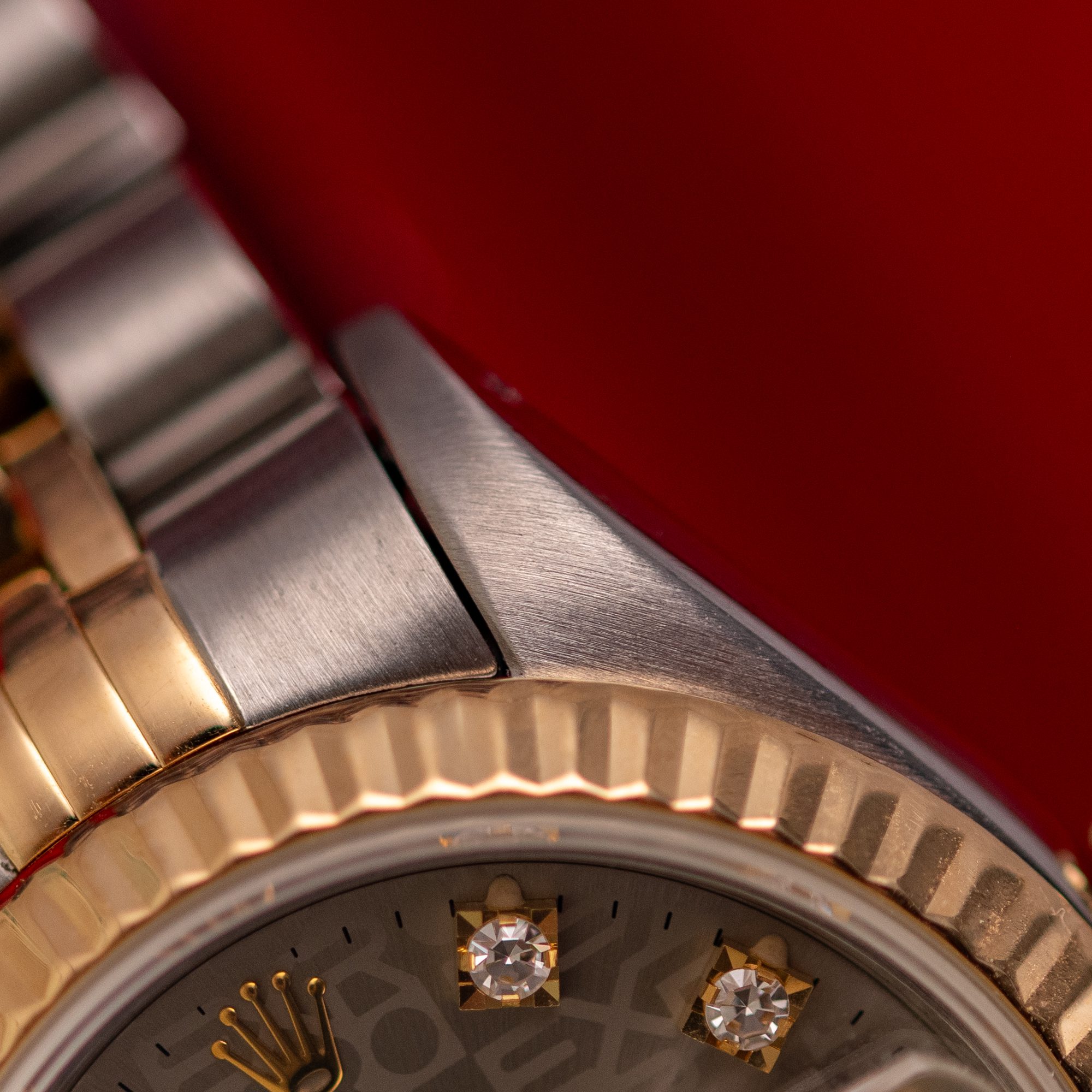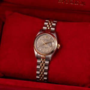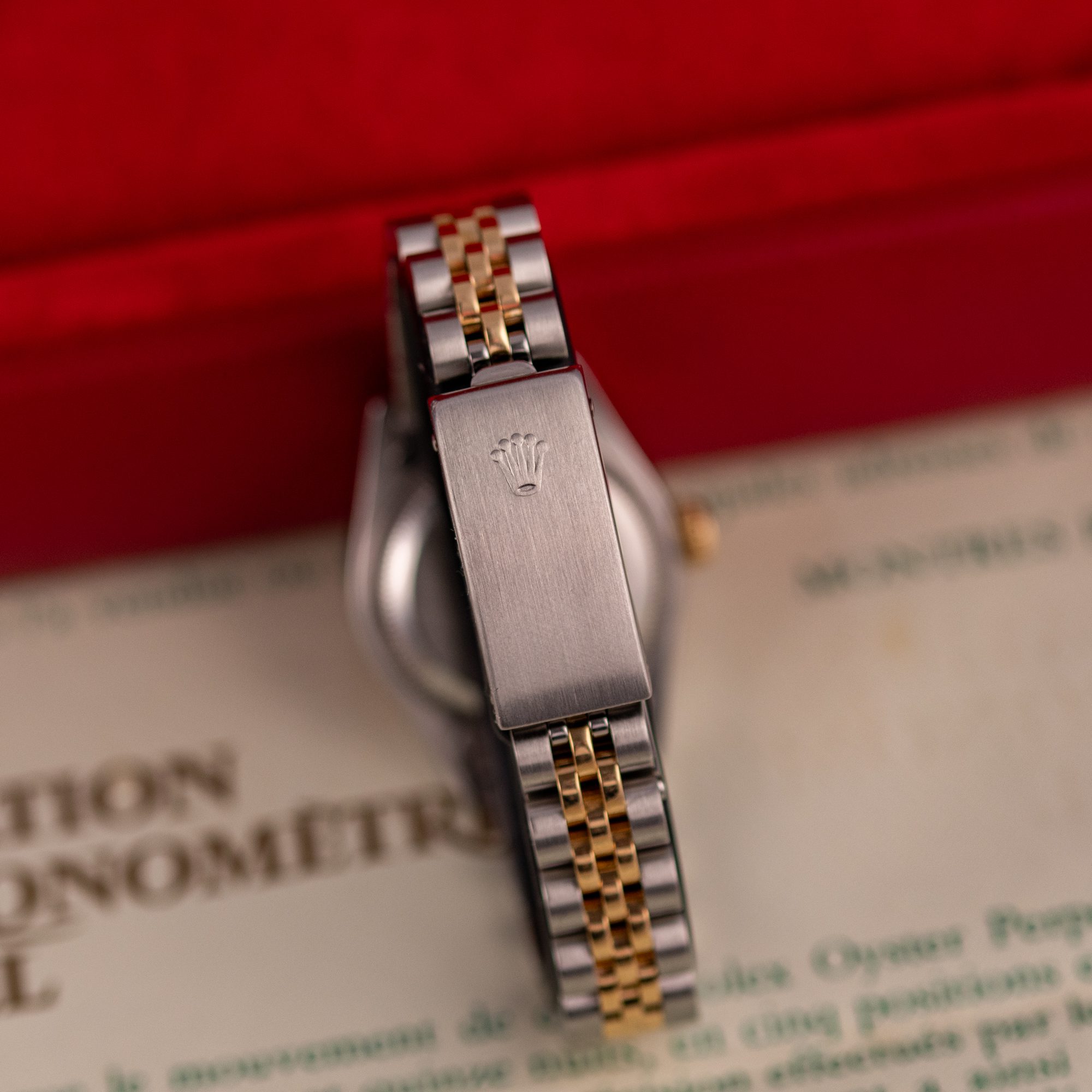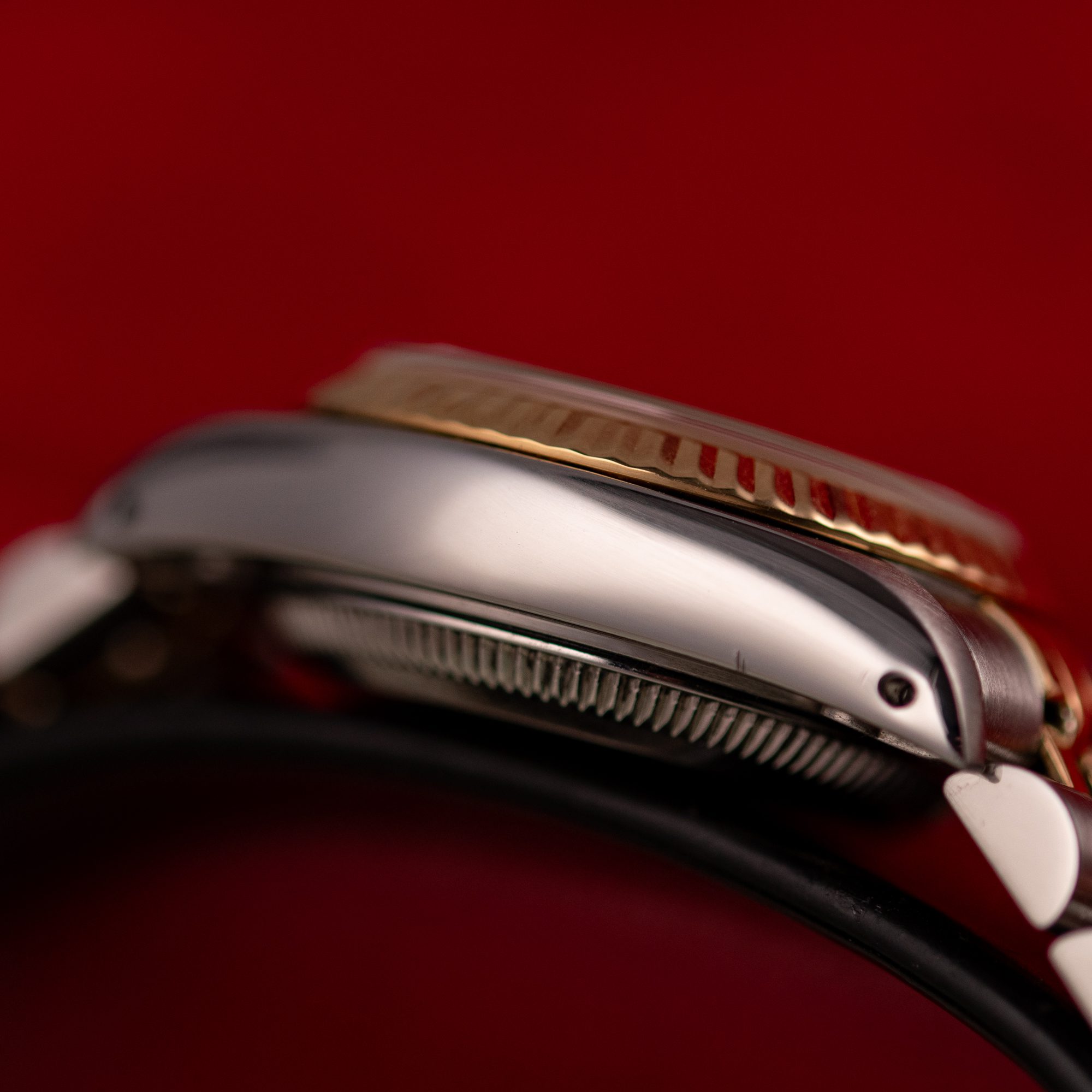 The Rolex Datejust 26, ref. 69173, crafted in stainless steel and yellow gold, features a 26mm case with a fluted bezel, offering a classic two-tone design that combines refined elegance with compact versatility, suitable for both formal occasions and daily wear.