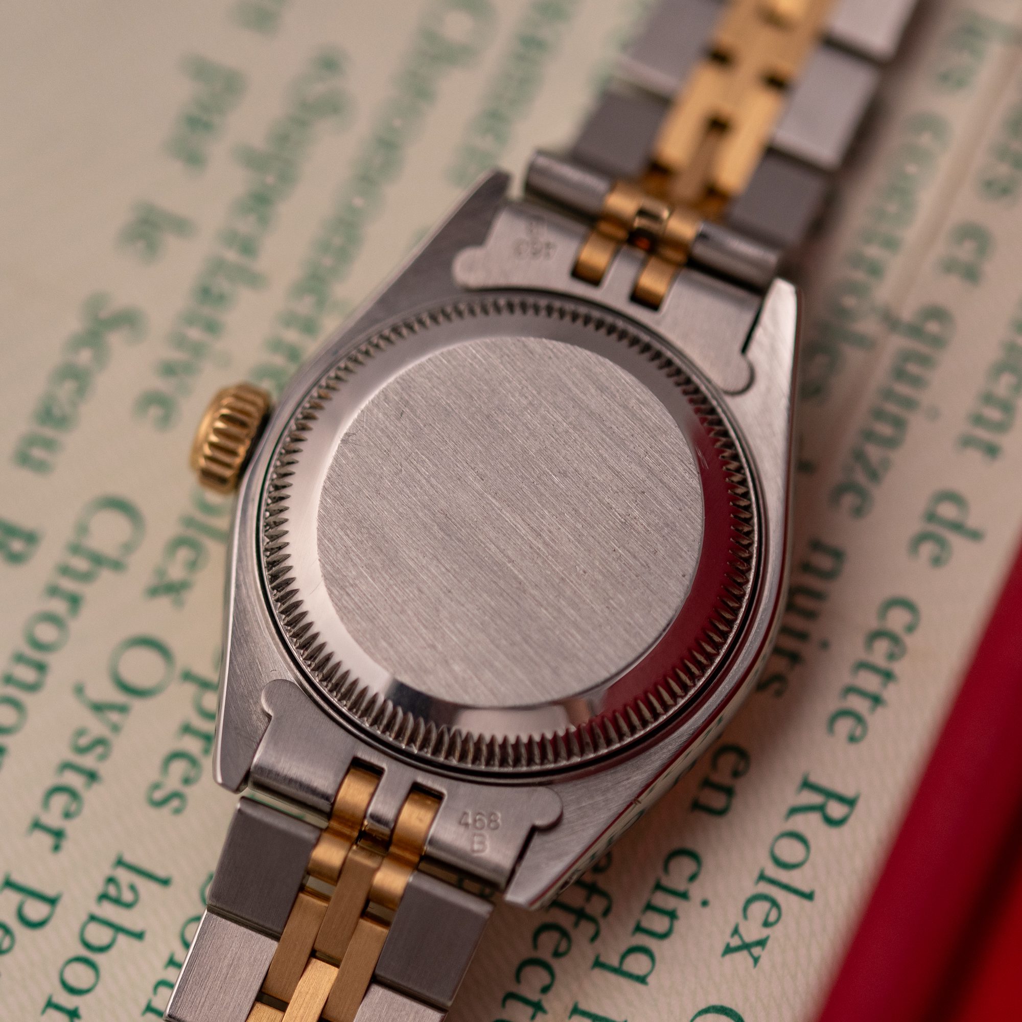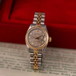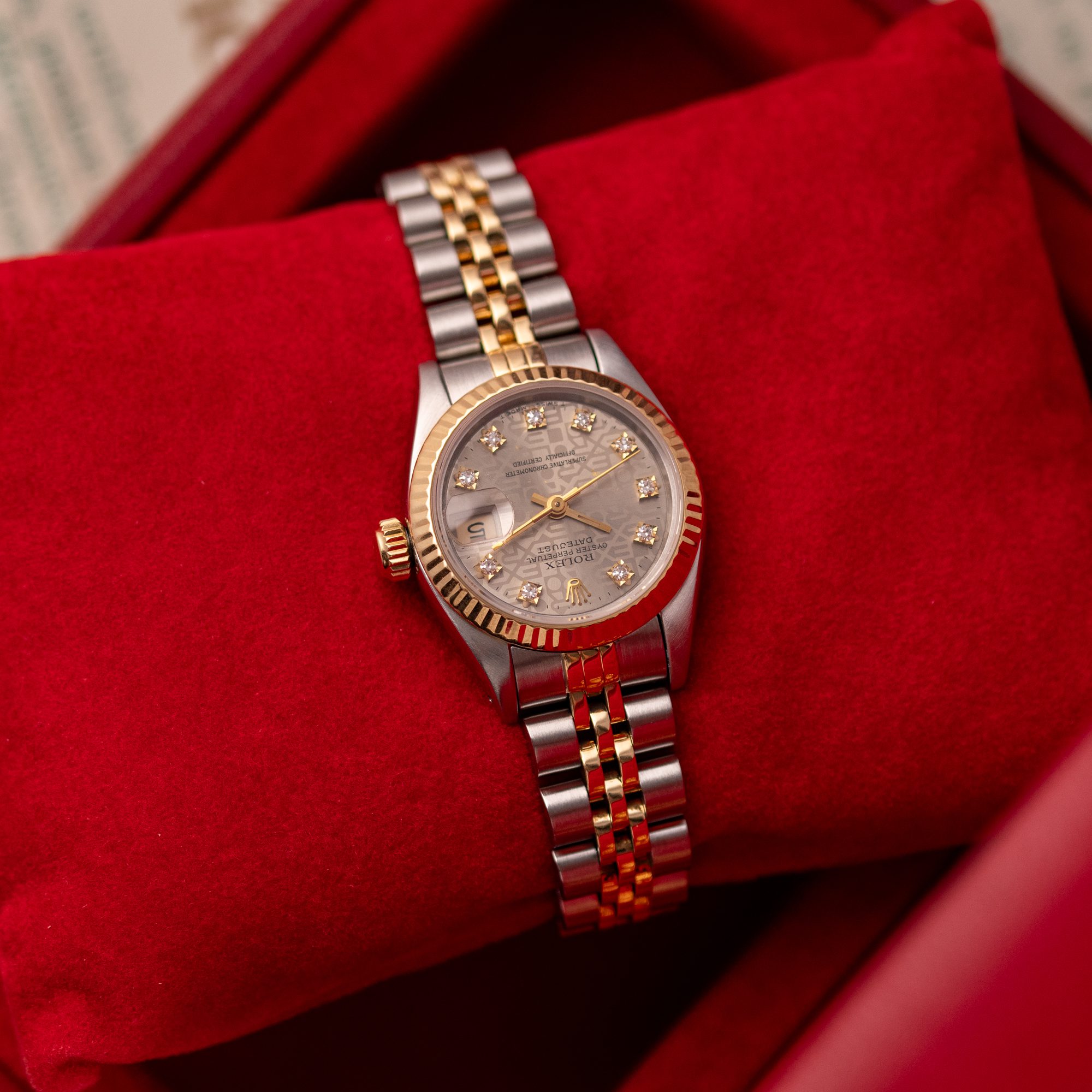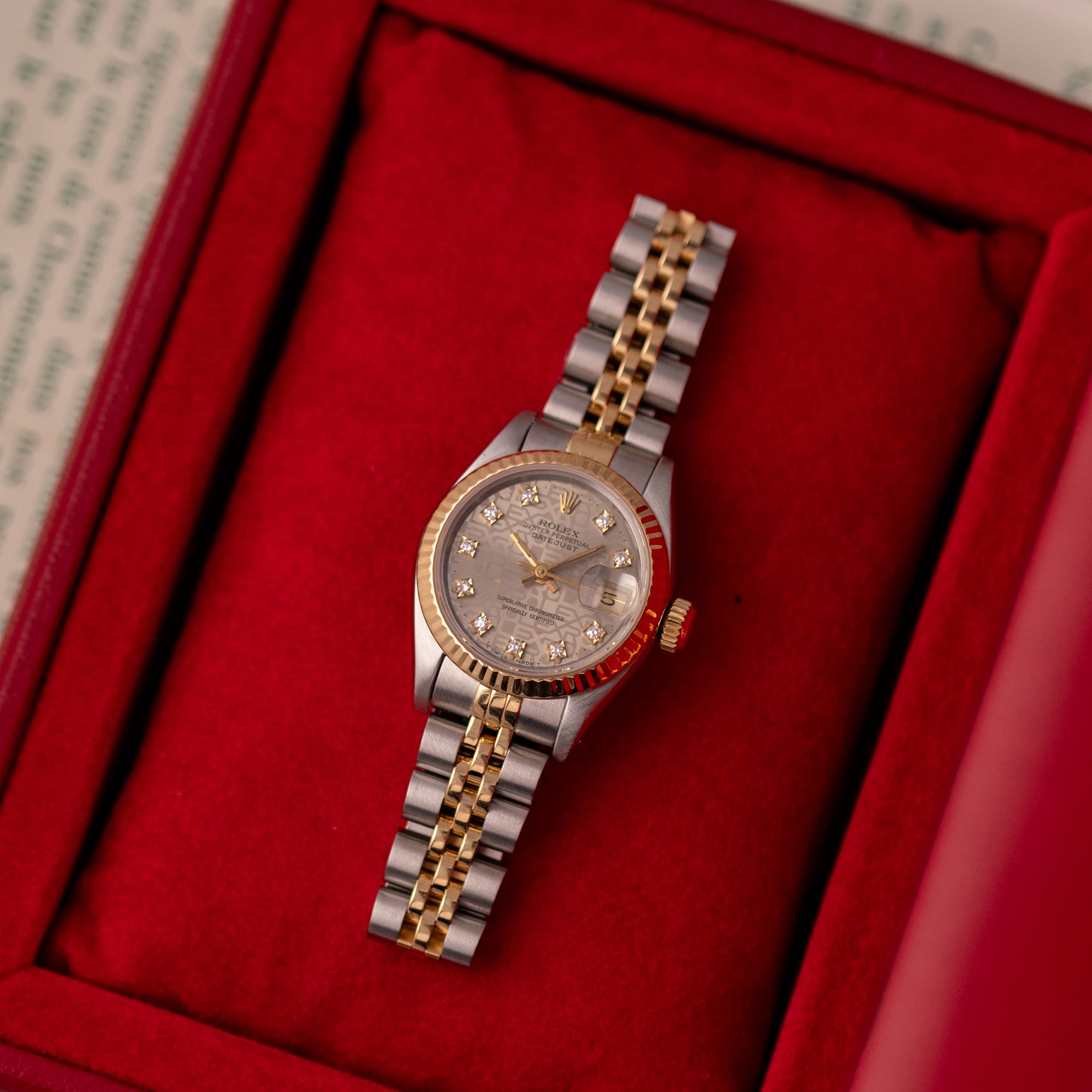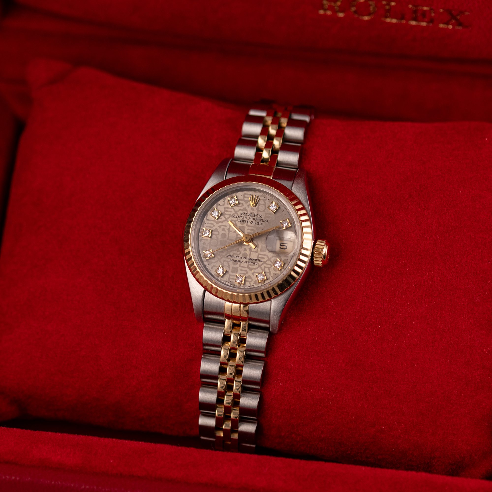 The Rolex Datejust 26, ref. 69173, crafted in stainless steel and yellow gold, features a 26mm case with a fluted bezel, offering a classic two-tone design that combines refined elegance with compact versatility, suitable for both formal occasions and daily wear.