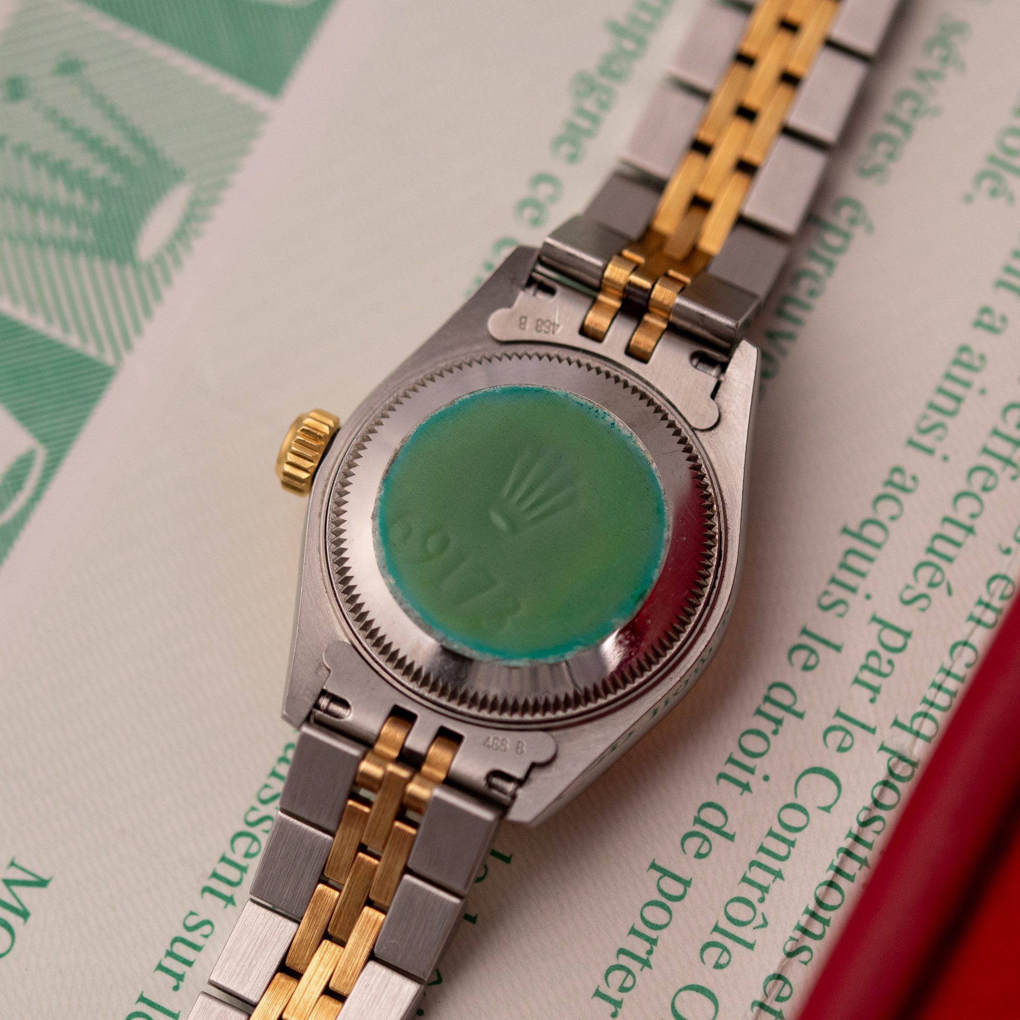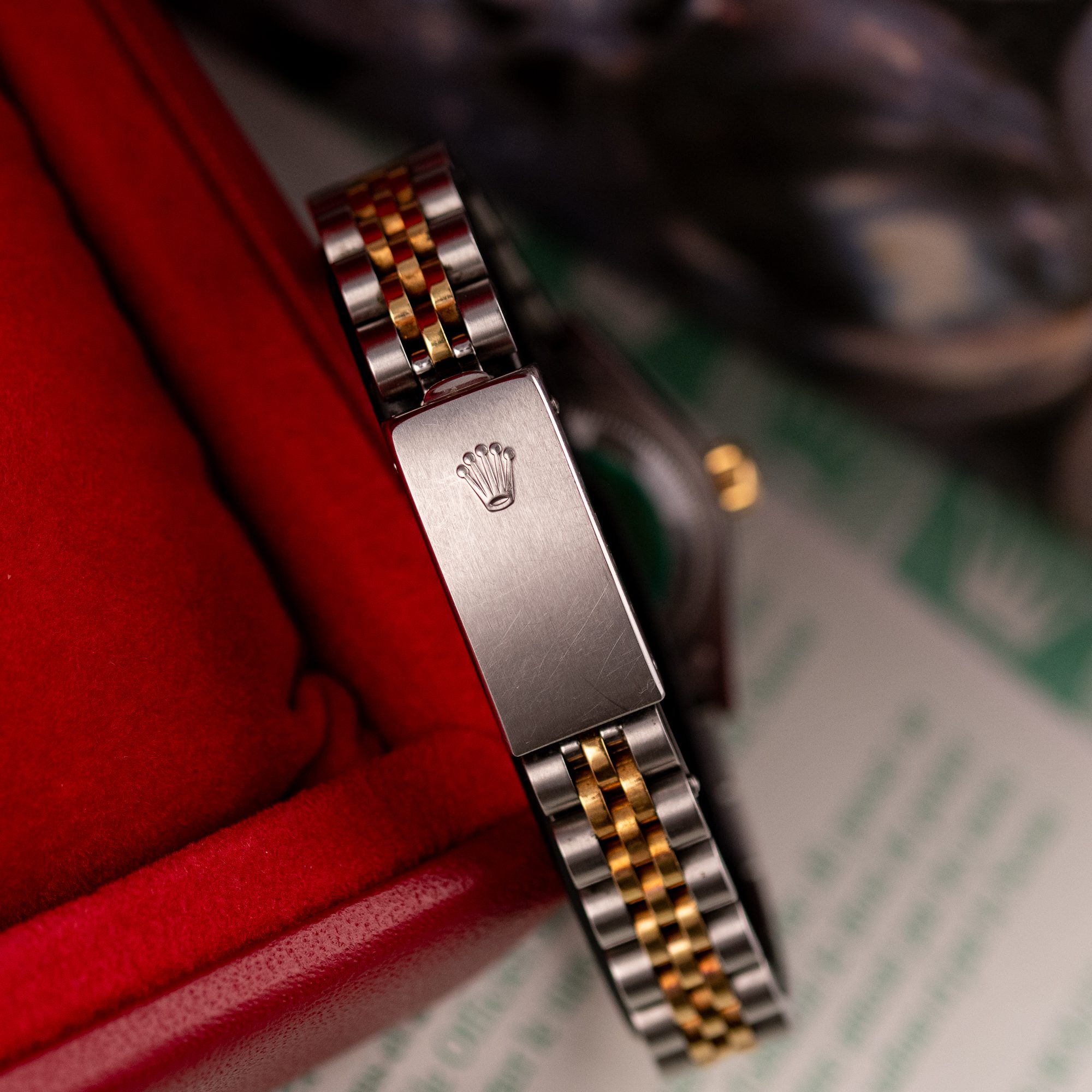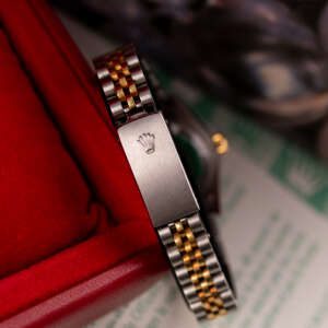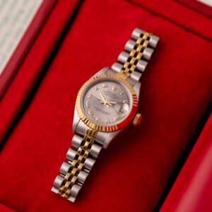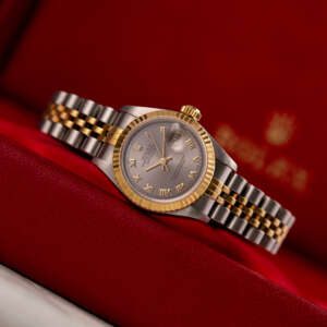 The Rolex Datejust 26, ref. 69173, combines stainless steel and yellow gold in a two-tone construction, featuring a fluted bezel and a compact 26mm case that balances classic proportions with versatile wearability for any occasion.