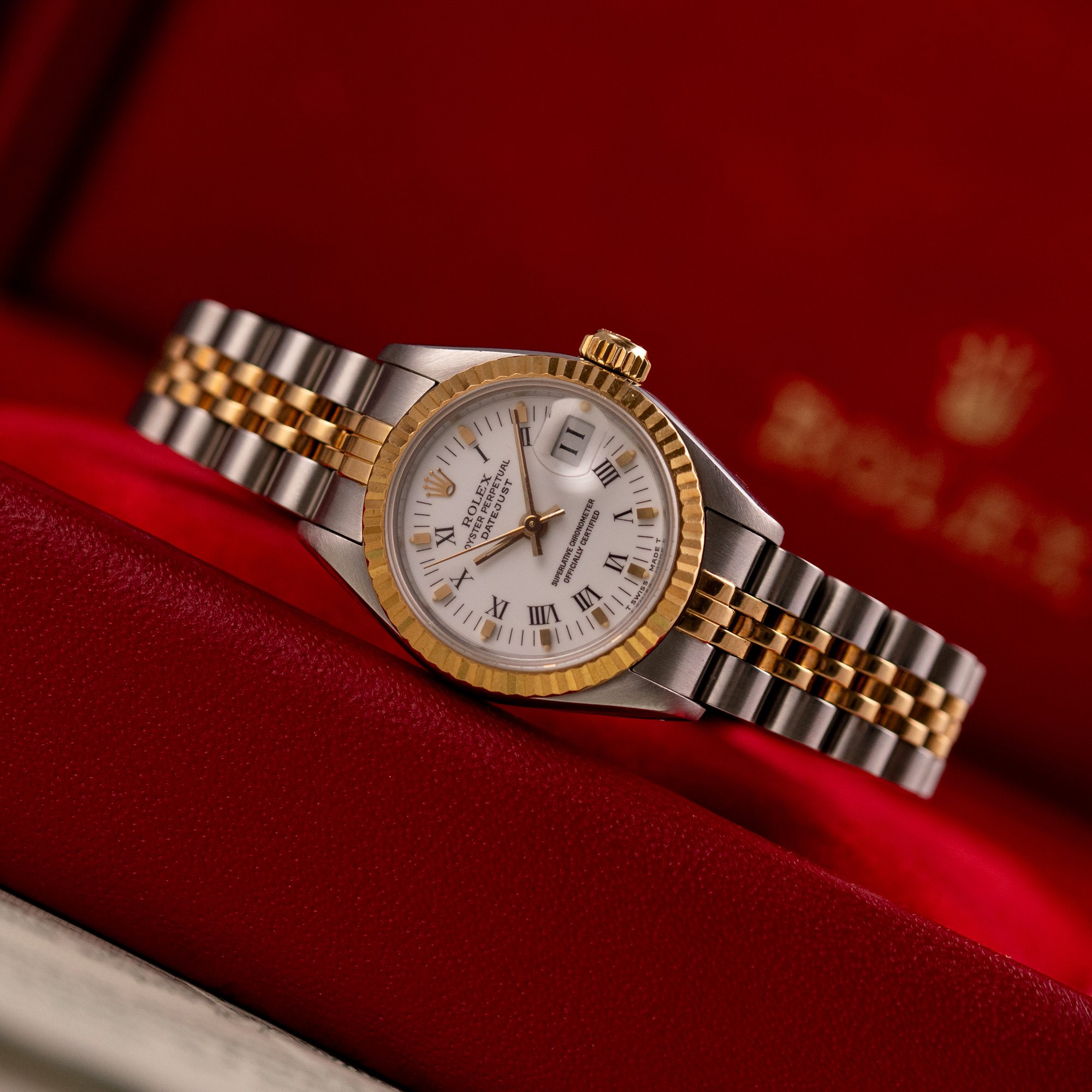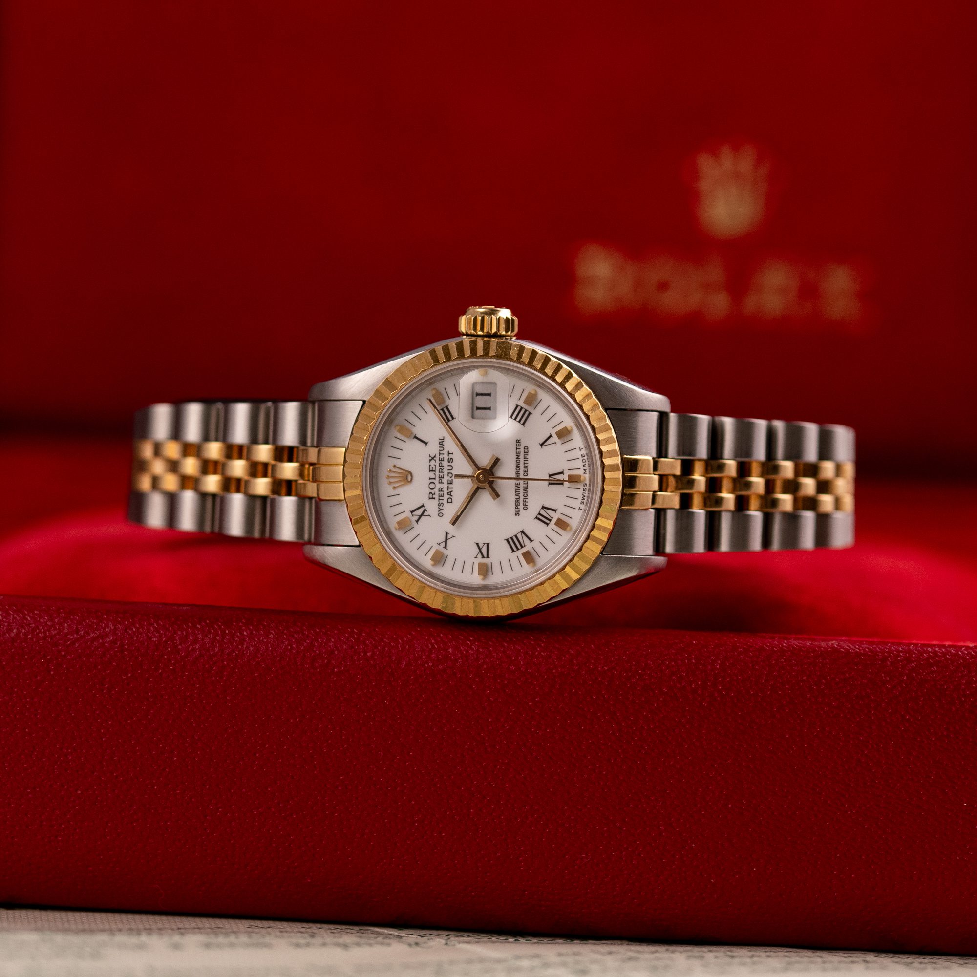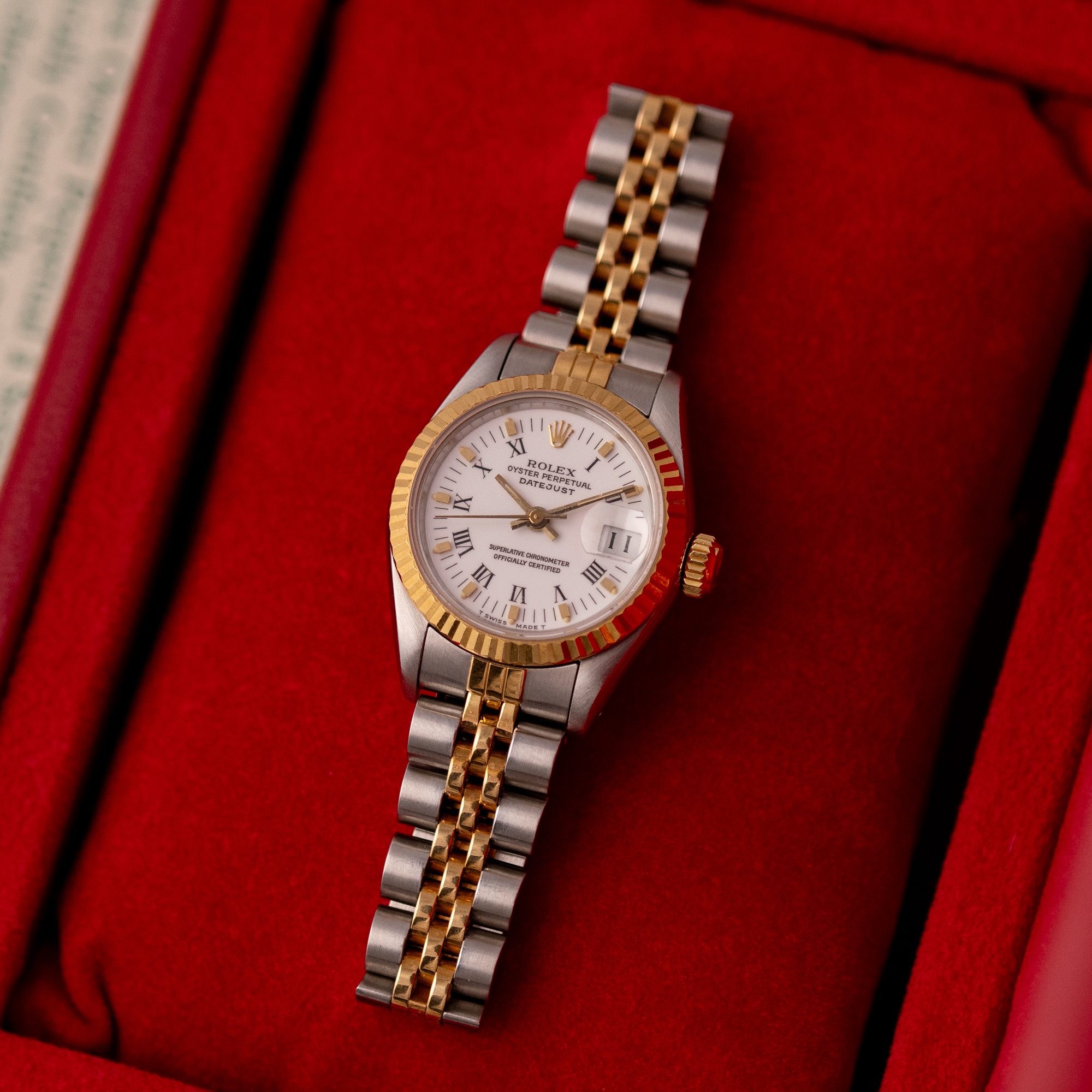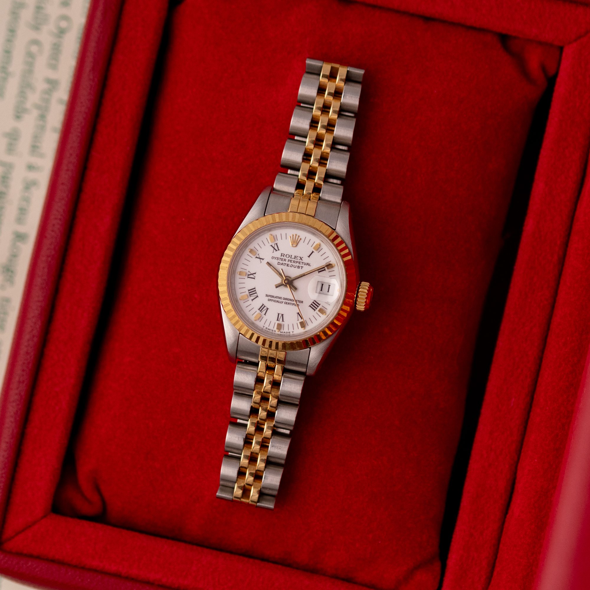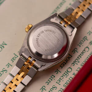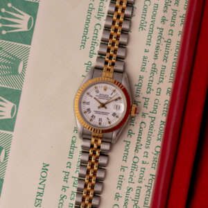 The Rolex Datejust 26, ref. 69173, crafted in stainless steel and yellow gold, features a 26mm case with a fluted bezel, offering a classic two-tone design that combines timeless sophistication with compact versatility, ideal for both formal occasions and everyday wear.