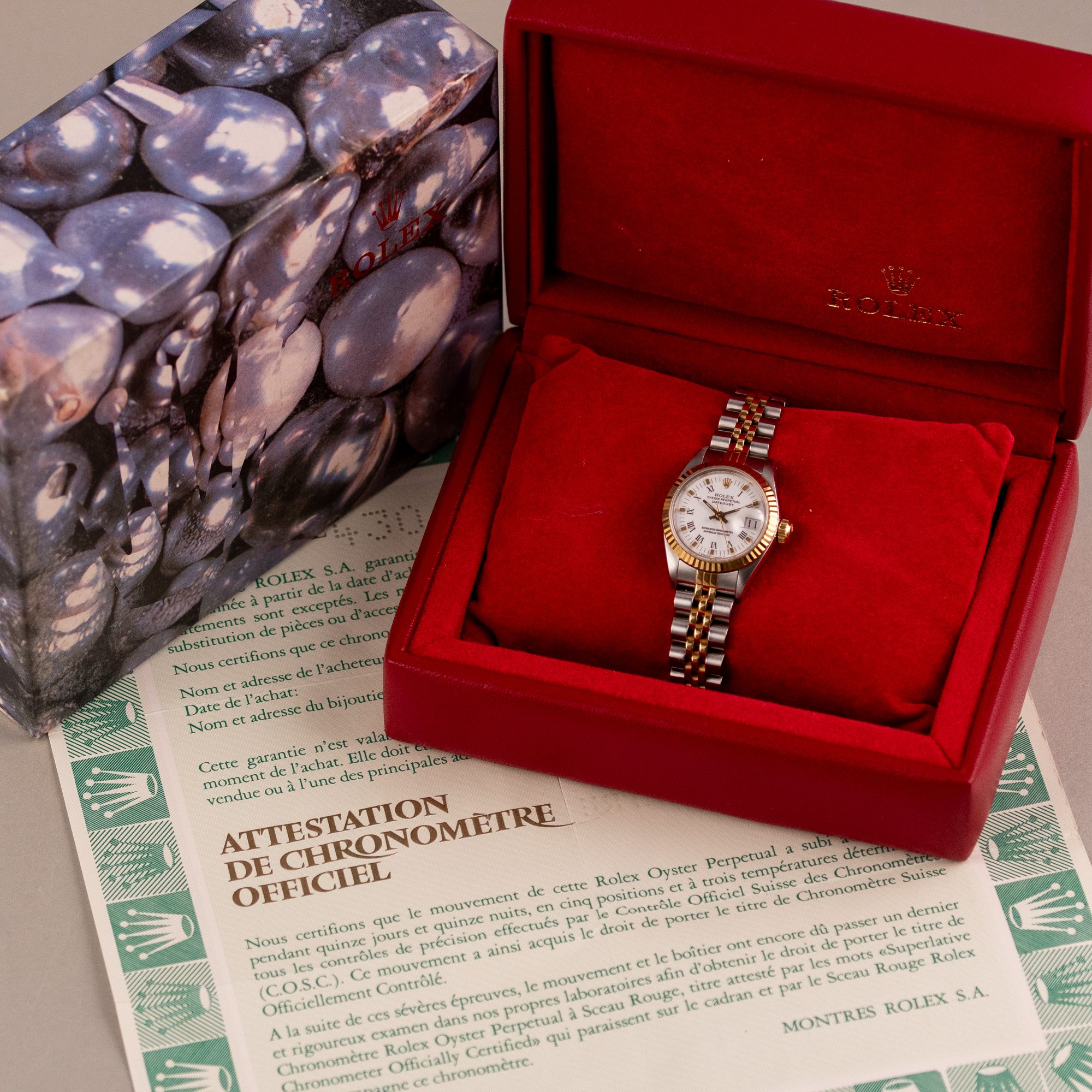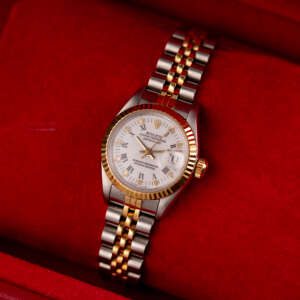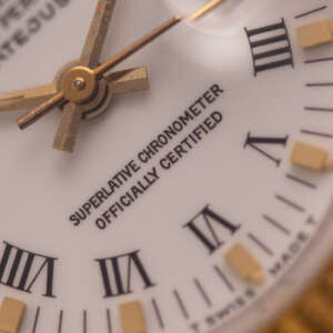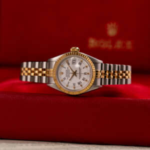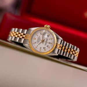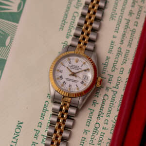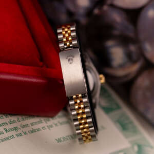 Originally sold in 1986, this example showcases a crisp White dial, providing a clean and elegant aesthetic that enhances its vintage charm. The watch is in very good condition, with a fully functional automatic movement ensuring reliable timekeeping. The Jubilee bracelet, sized for wrists up to 16 cm, exhibits minimal stretch, maintaining its structural integrity. The watch has just undergone a full watchmaker service. Presented as a full set with its original Rolex box and papers, this Datejust is an excellent choice for collectors or those seeking a well-preserved vintage timepiece.