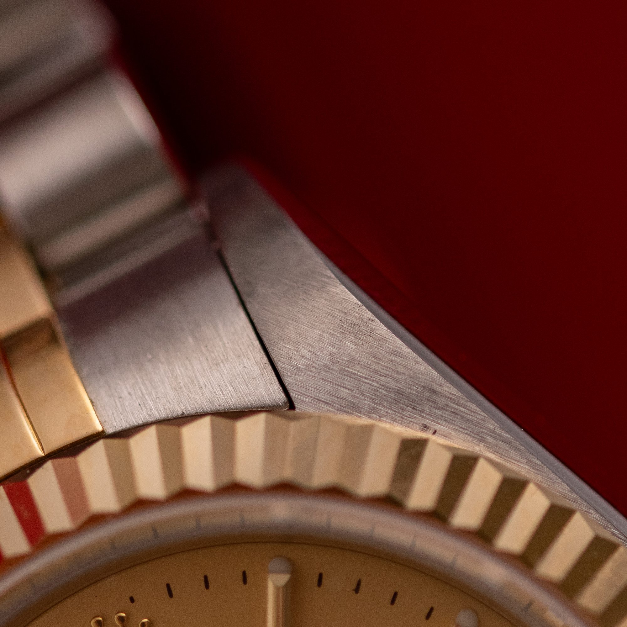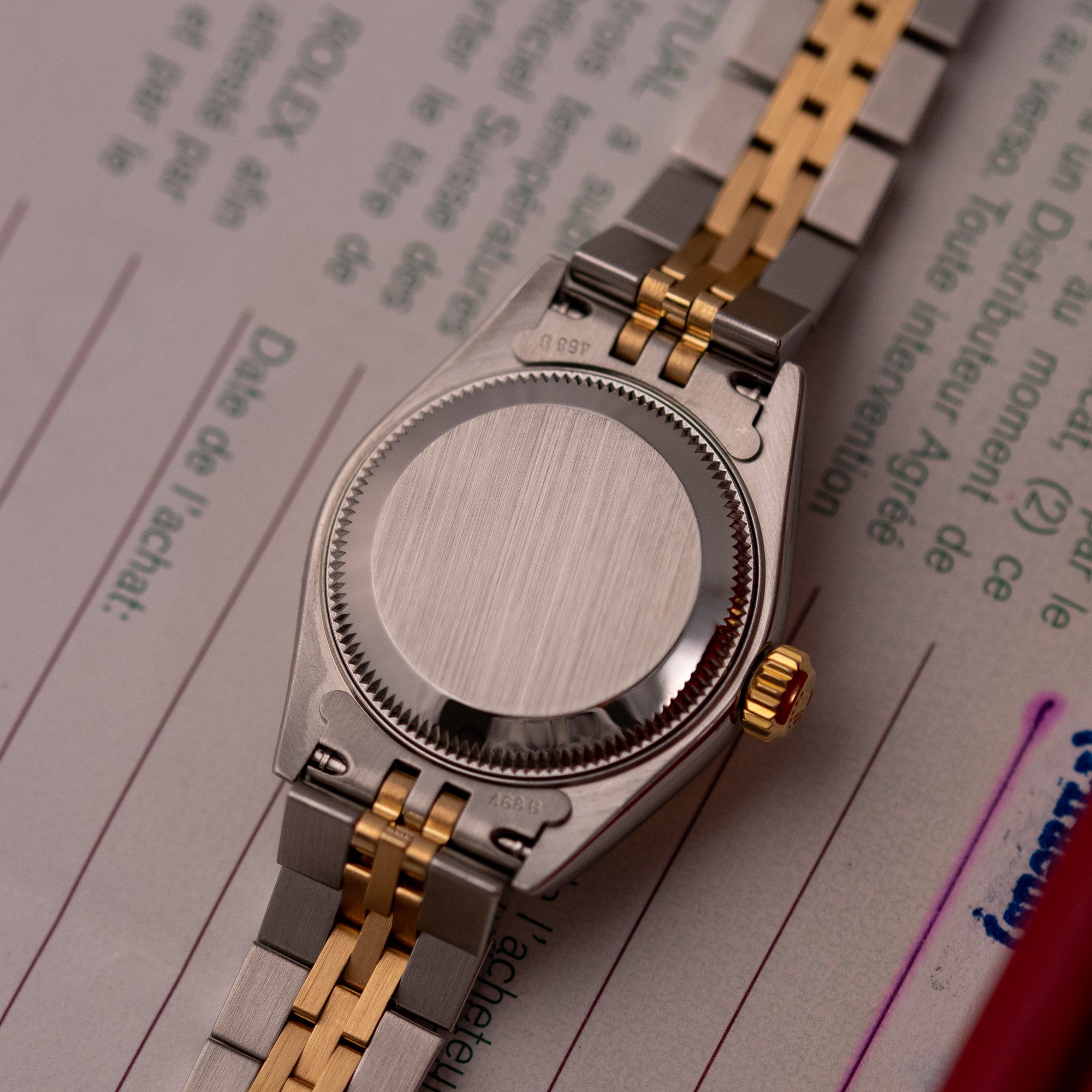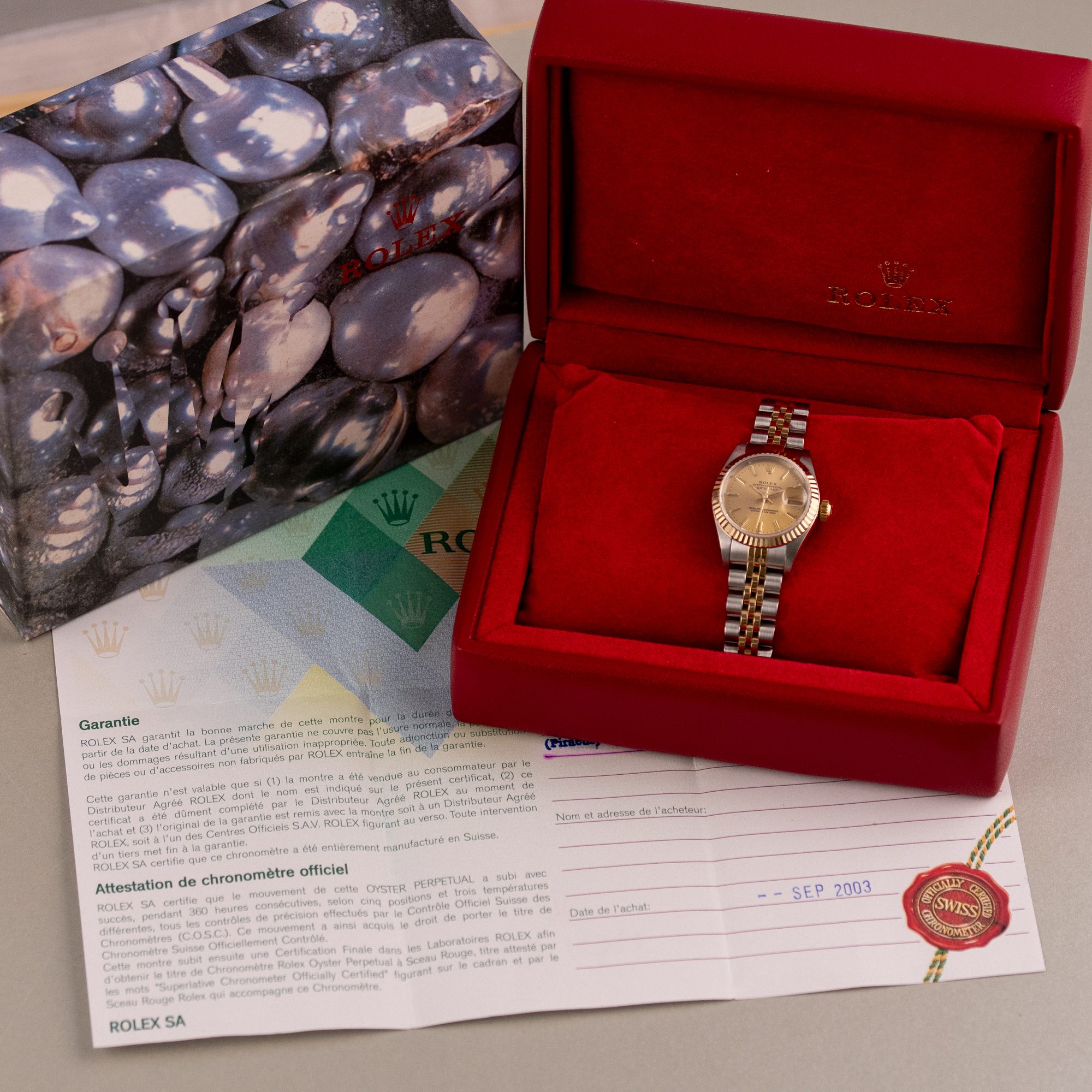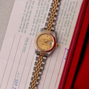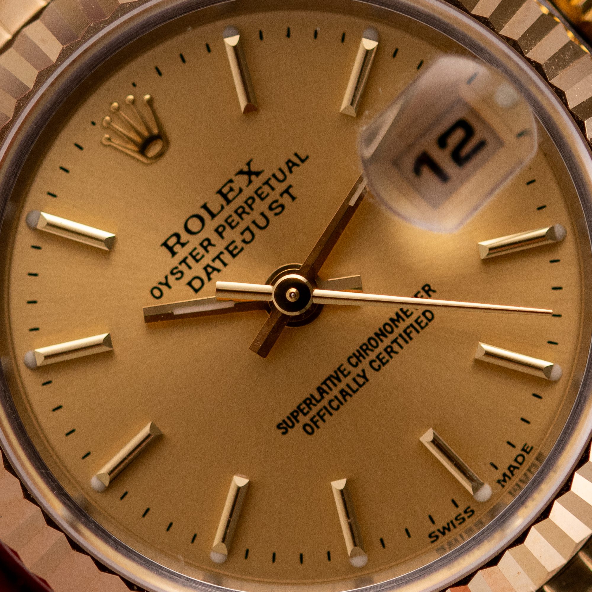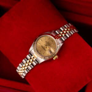 The Rolex Datejust 26, ref. 79173, crafted in stainless steel and yellow gold, features a 26mm case with a fluted bezel, delivering a classic two-tone design that balances refined elegance with compact versatility, suitable for both formal settings and daily wear.