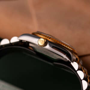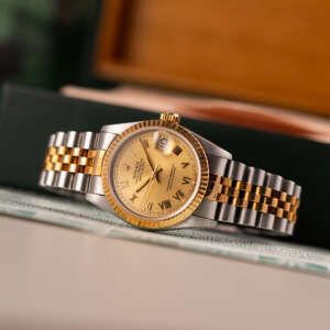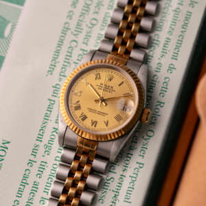 The Rolex Datejust 31, ref. 68273, crafted in stainless steel and yellow gold, features a 31mm case with a fluted bezel, offering a classic two-tone design that balances midsize proportions with versatile elegance, suitable for both formal occasions and everyday wear.