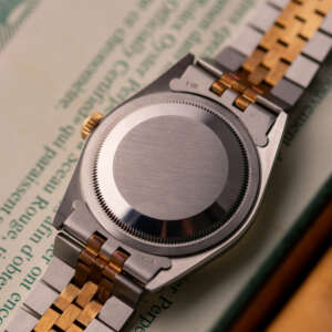 The Rolex Datejust 36, ref. 16233, crafted in stainless steel and yellow gold, features a 36mm case with a fluted bezel, offering a classic two-tone design that combines timeless elegance with versatile wearability, suitable for both formal occasions and daily use.