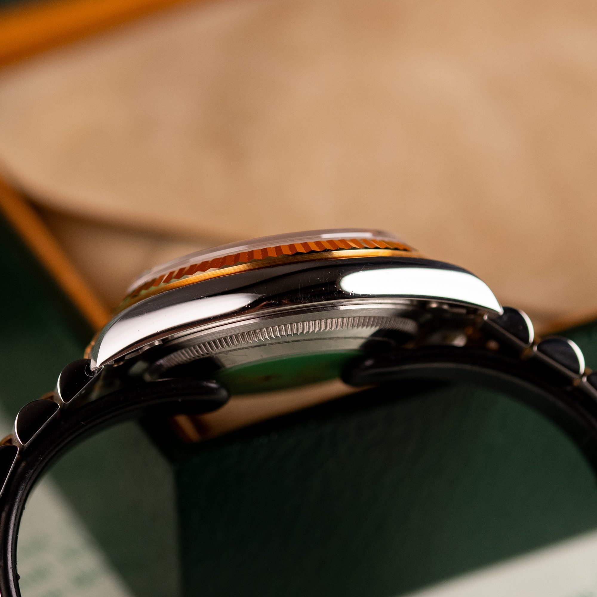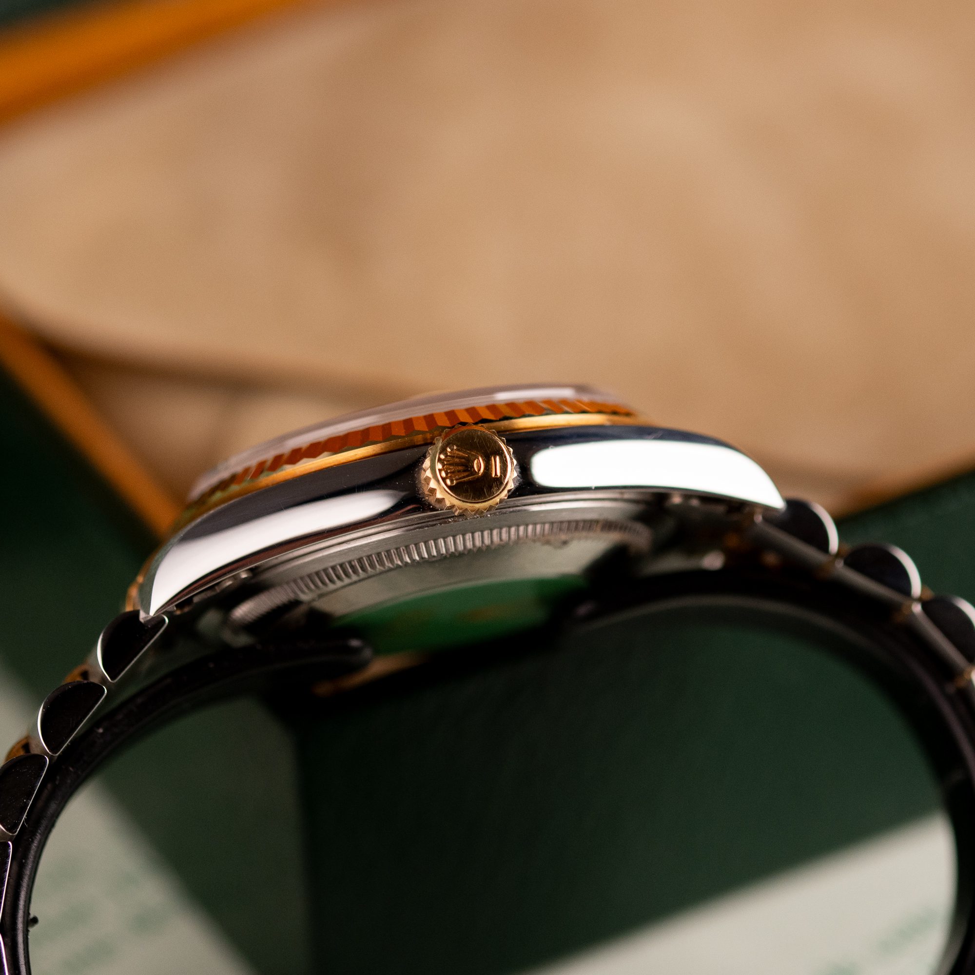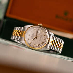 The Rolex Datejust 36, ref. 16233, crafted in stainless steel and yellow gold, features a 36mm case with a fluted bezel, embodying a classic two-tone design that blends timeless elegance with versatile wearability, suitable for both formal occasions and daily use.