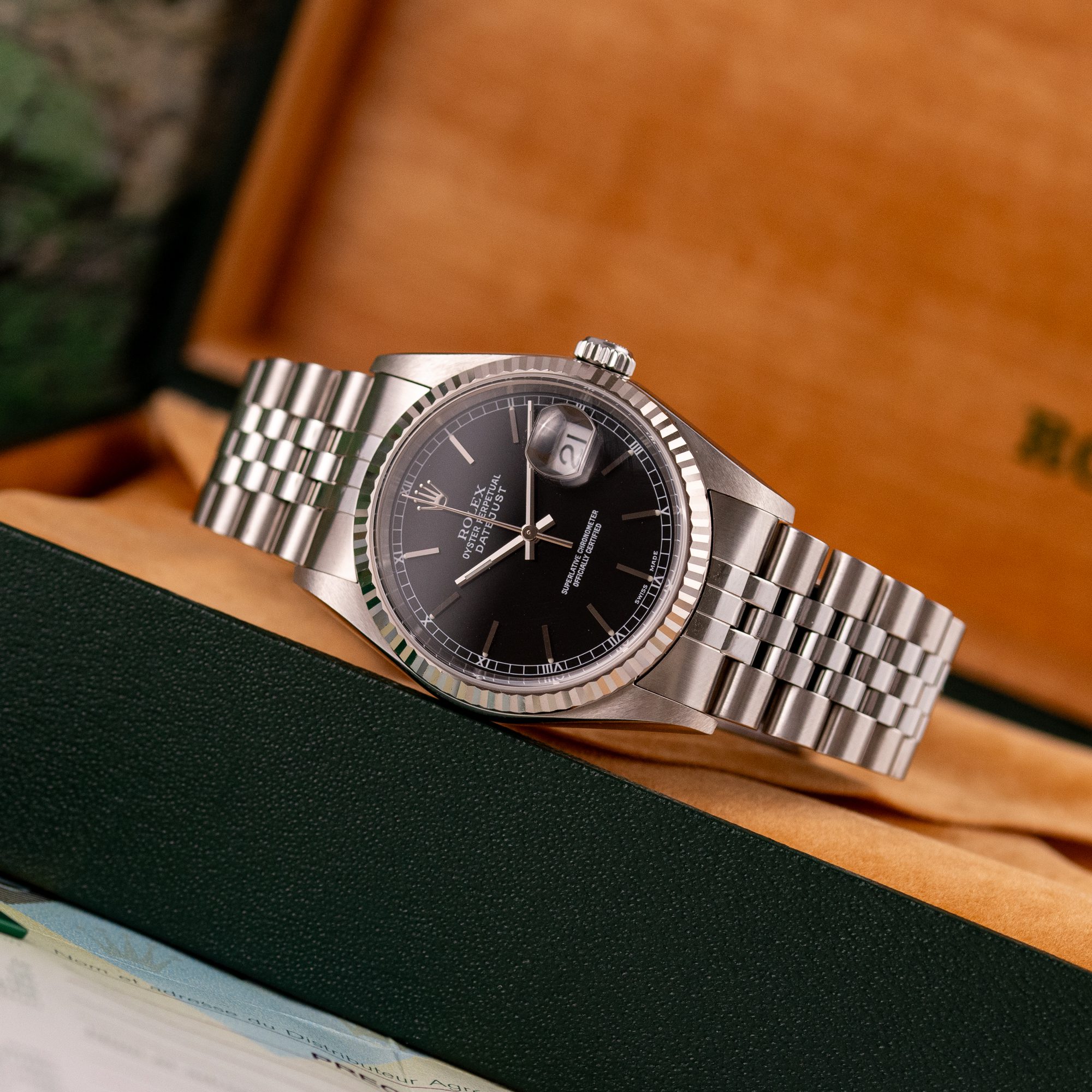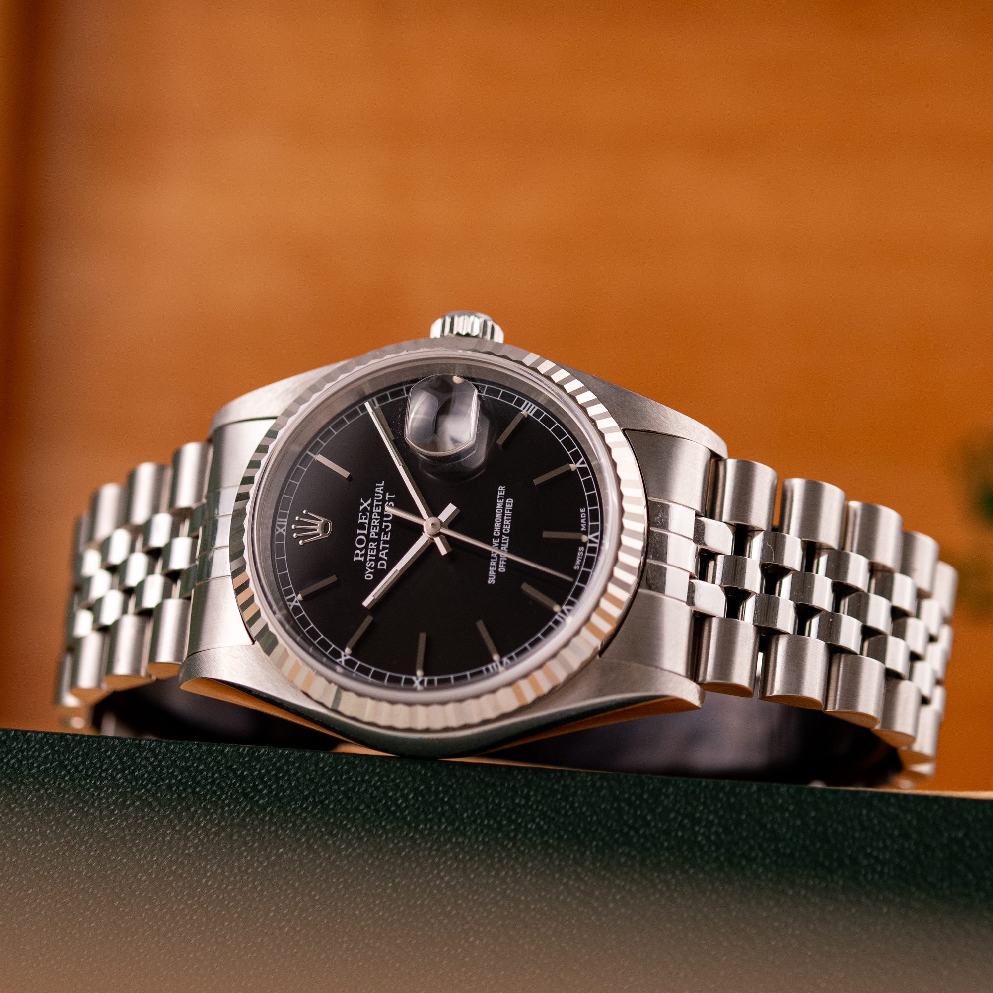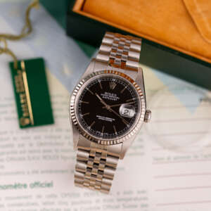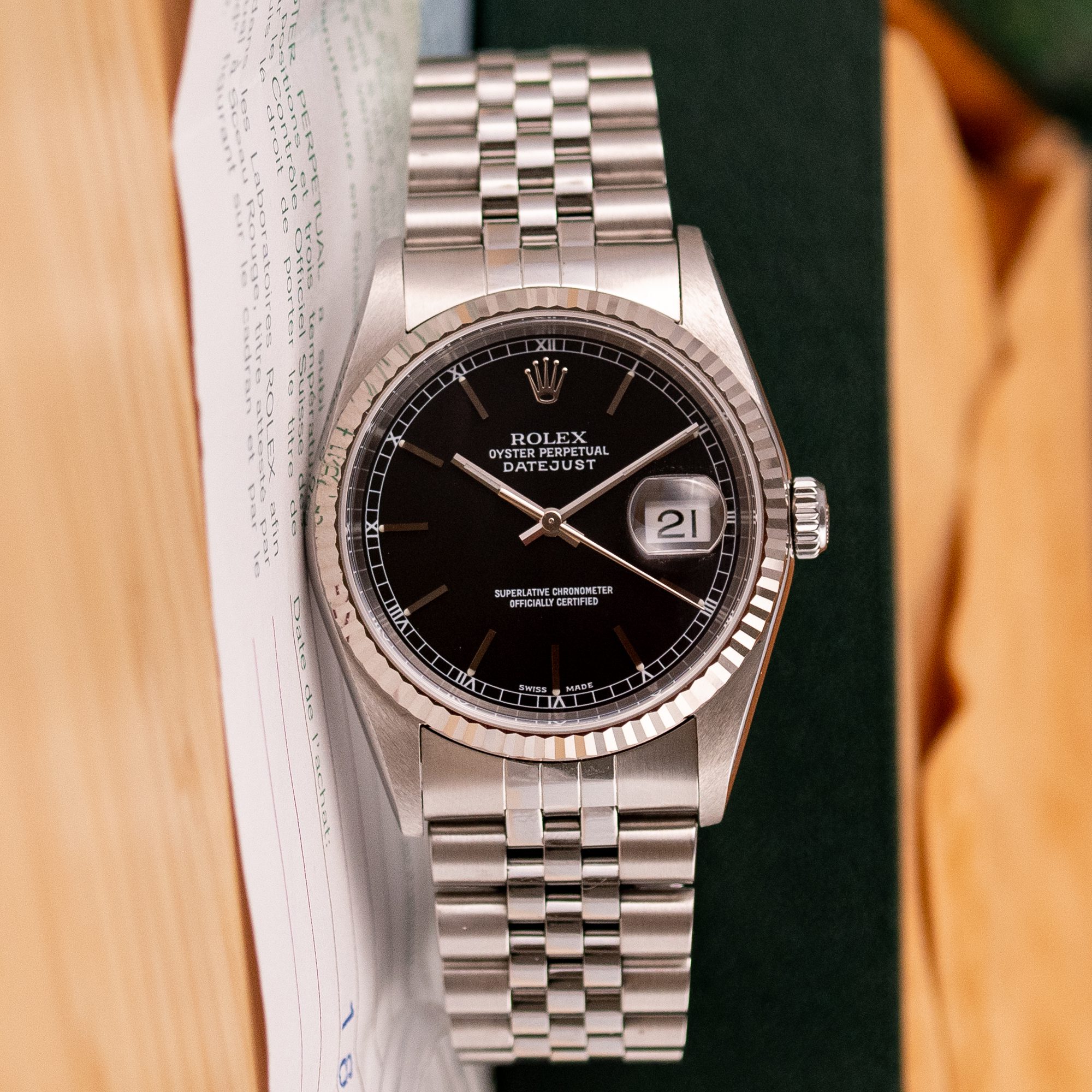 The Rolex Datejust 36 ref. 16234 is a quintessential blend of timeless elegance and versatile style. Featuring a stainless steel case with a white gold fluted bezel and a classic design, this model is a favorite among those who seek refined luxury with everyday wearability.