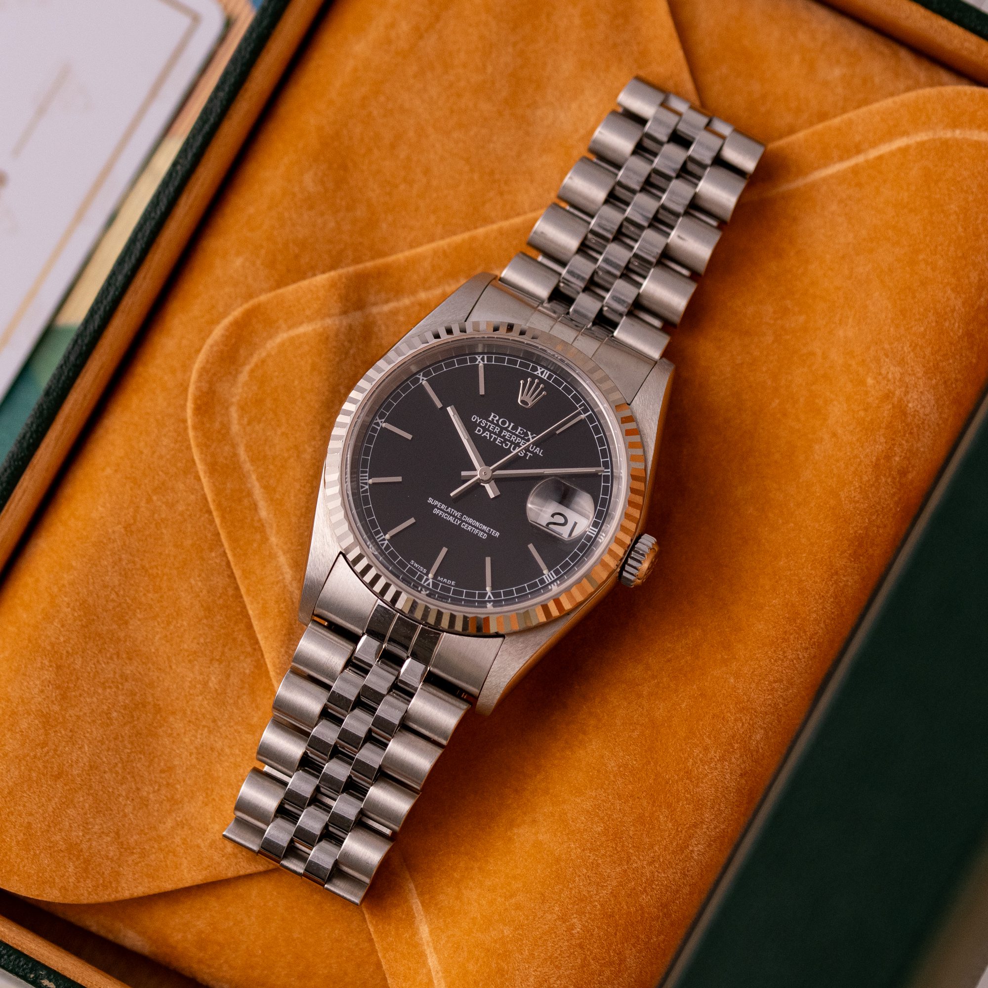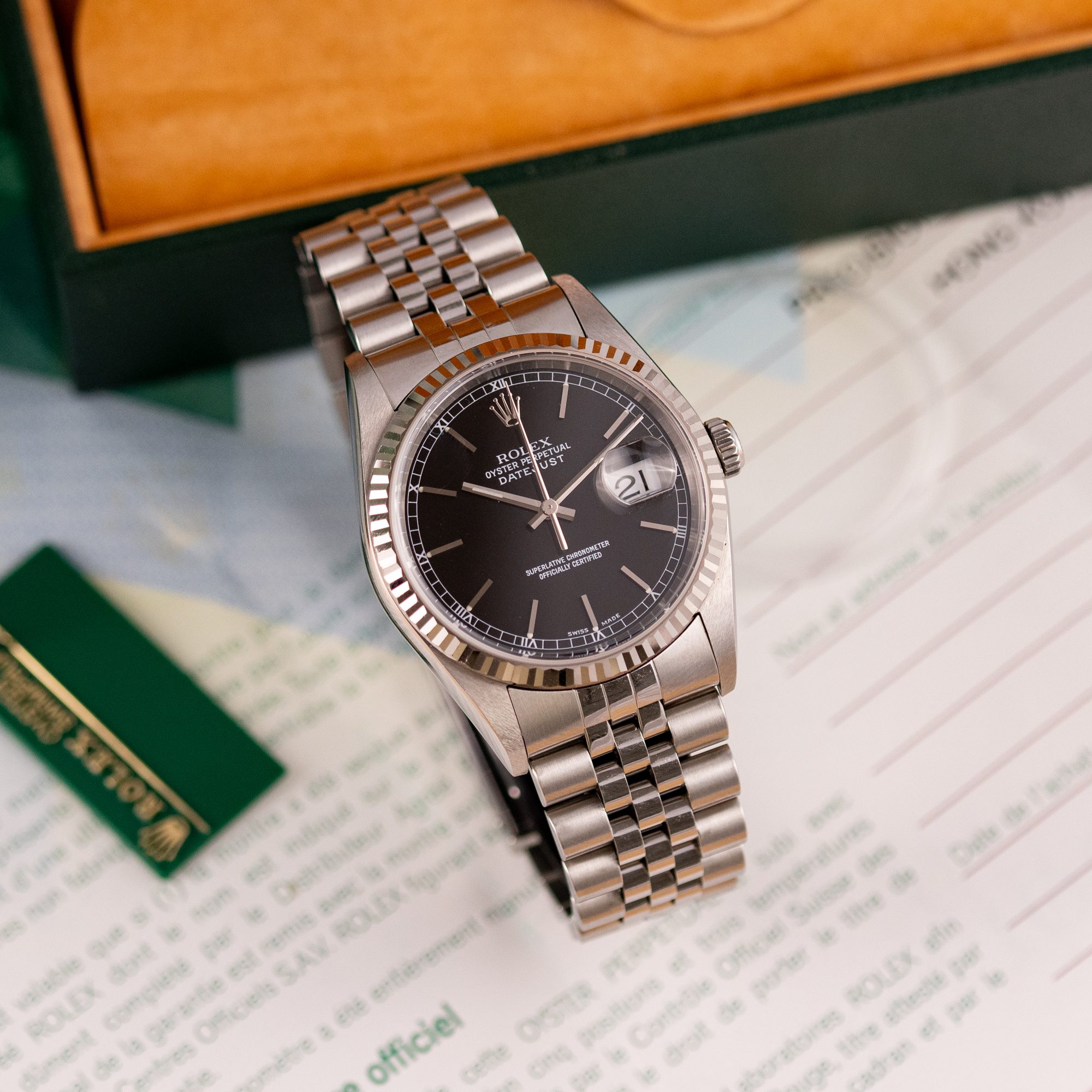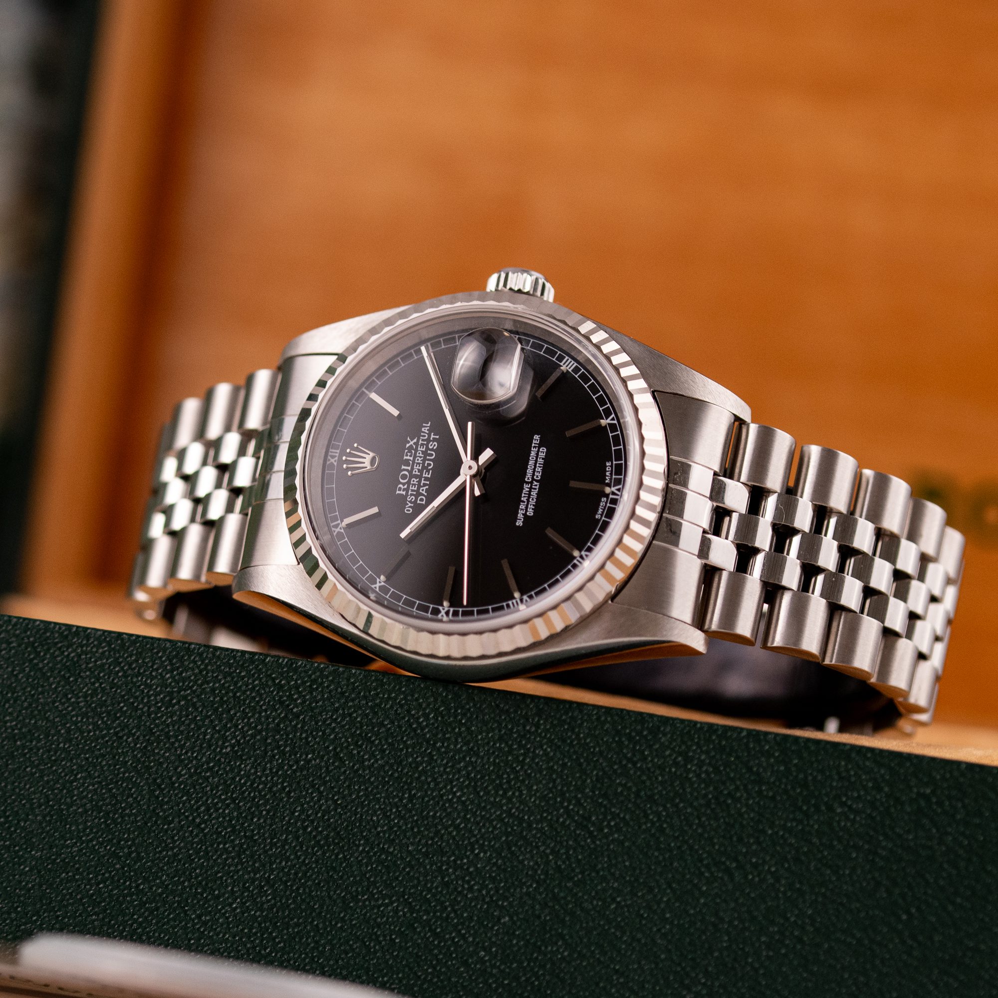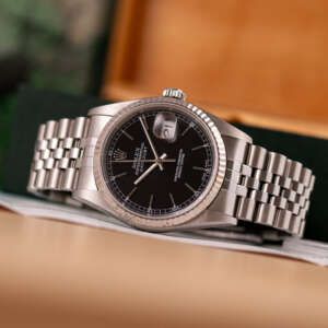 The Rolex Datejust 36 ref. 16234 is a quintessential blend of timeless elegance and versatile style. Featuring a stainless steel case with a white gold fluted bezel and a classic design, this model is a favorite among those who seek refined luxury with everyday wearability.