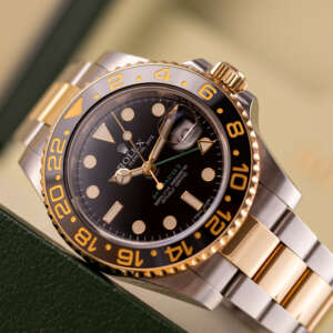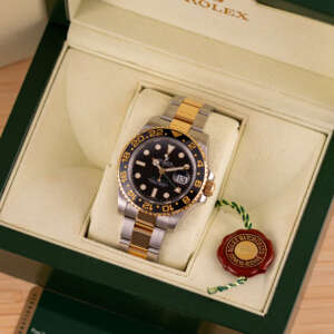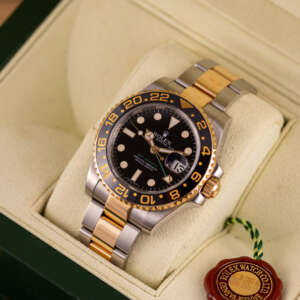 The Rolex GMT Master II ref. 116713LN is a quintessential blend of functionality and elegance, designed for the modern adventurer. With its two-tone steel and yellow gold construction, iconic 24-hour bezel, and robust yet refined aesthetic, it remains a favorite among those who value versatility and timeless luxury.