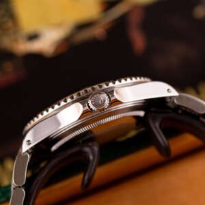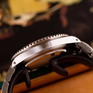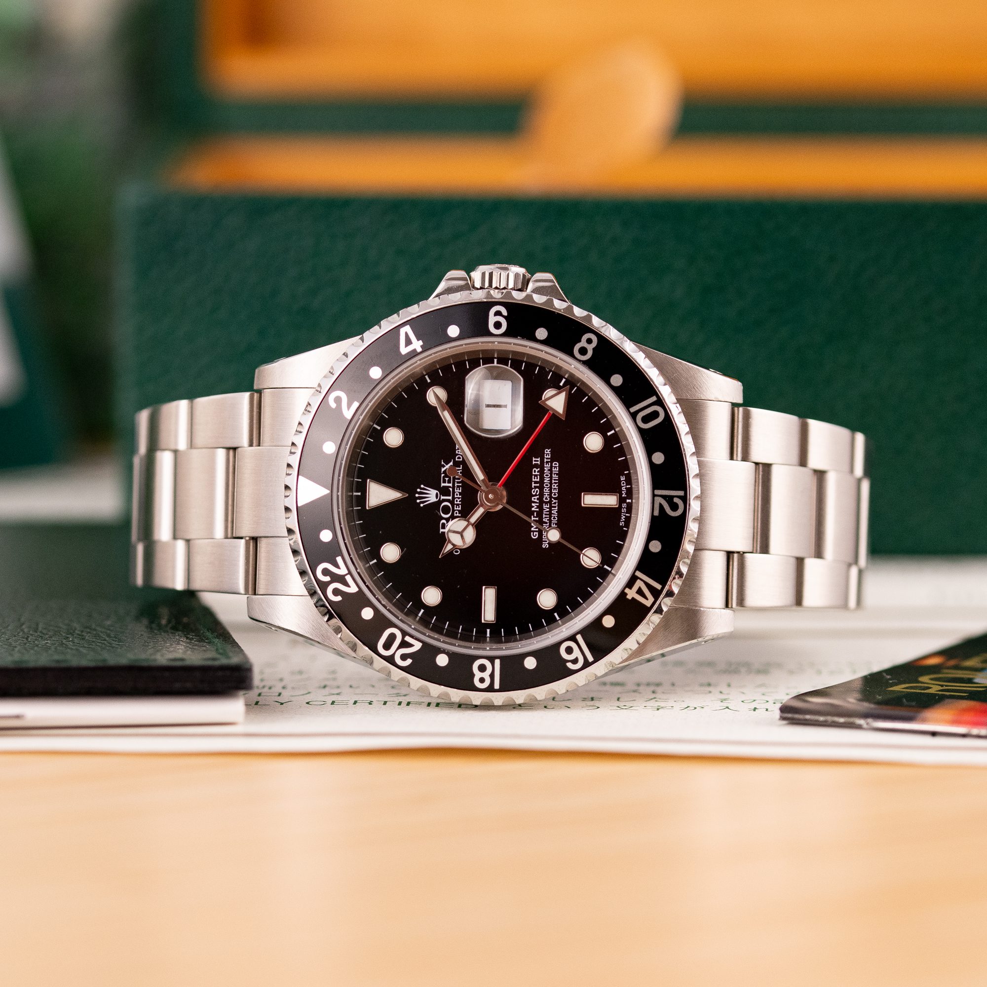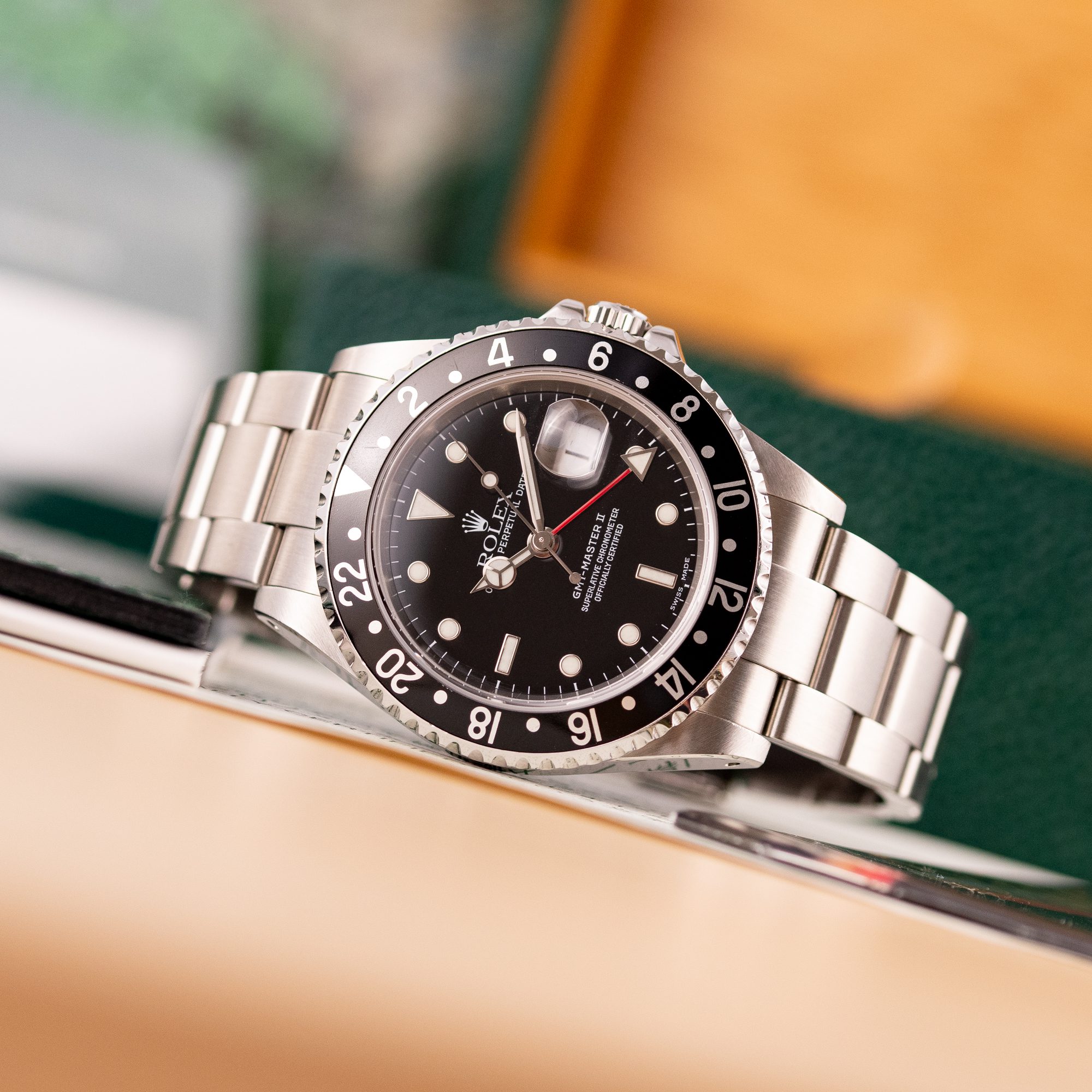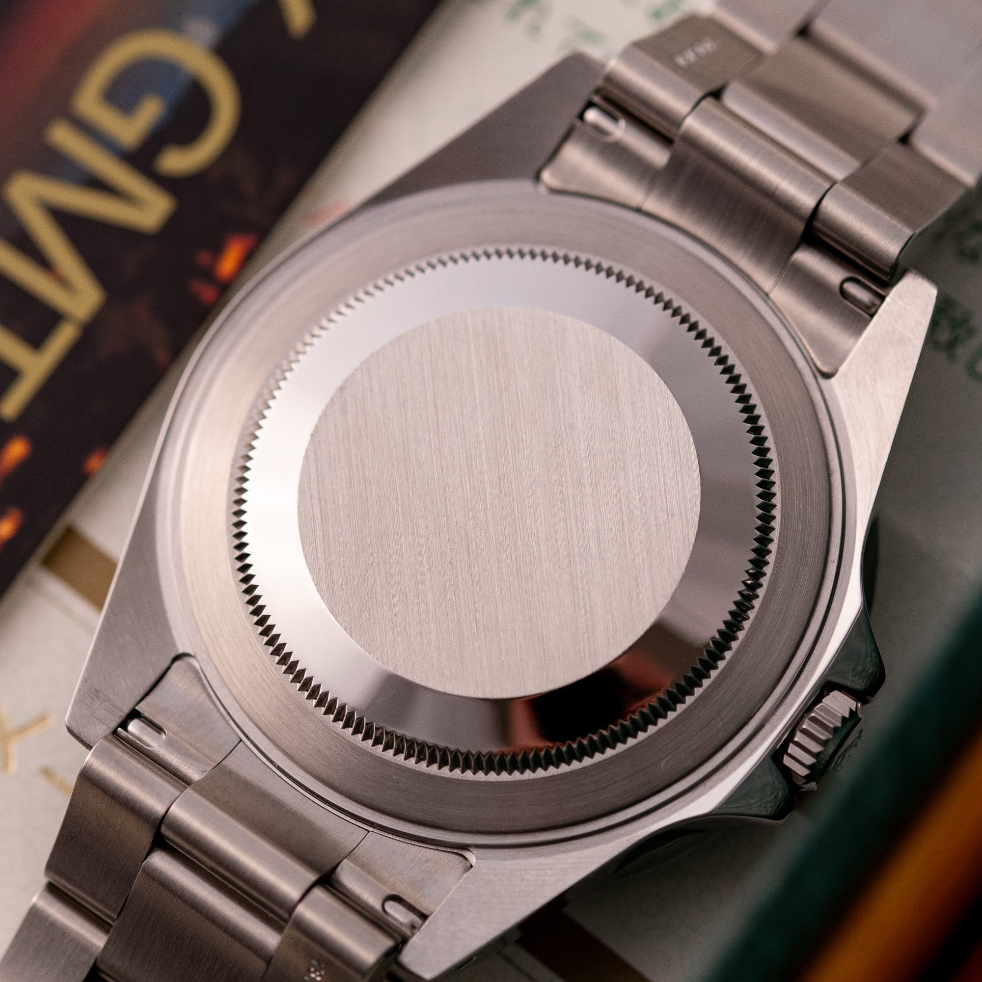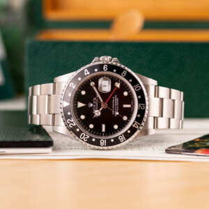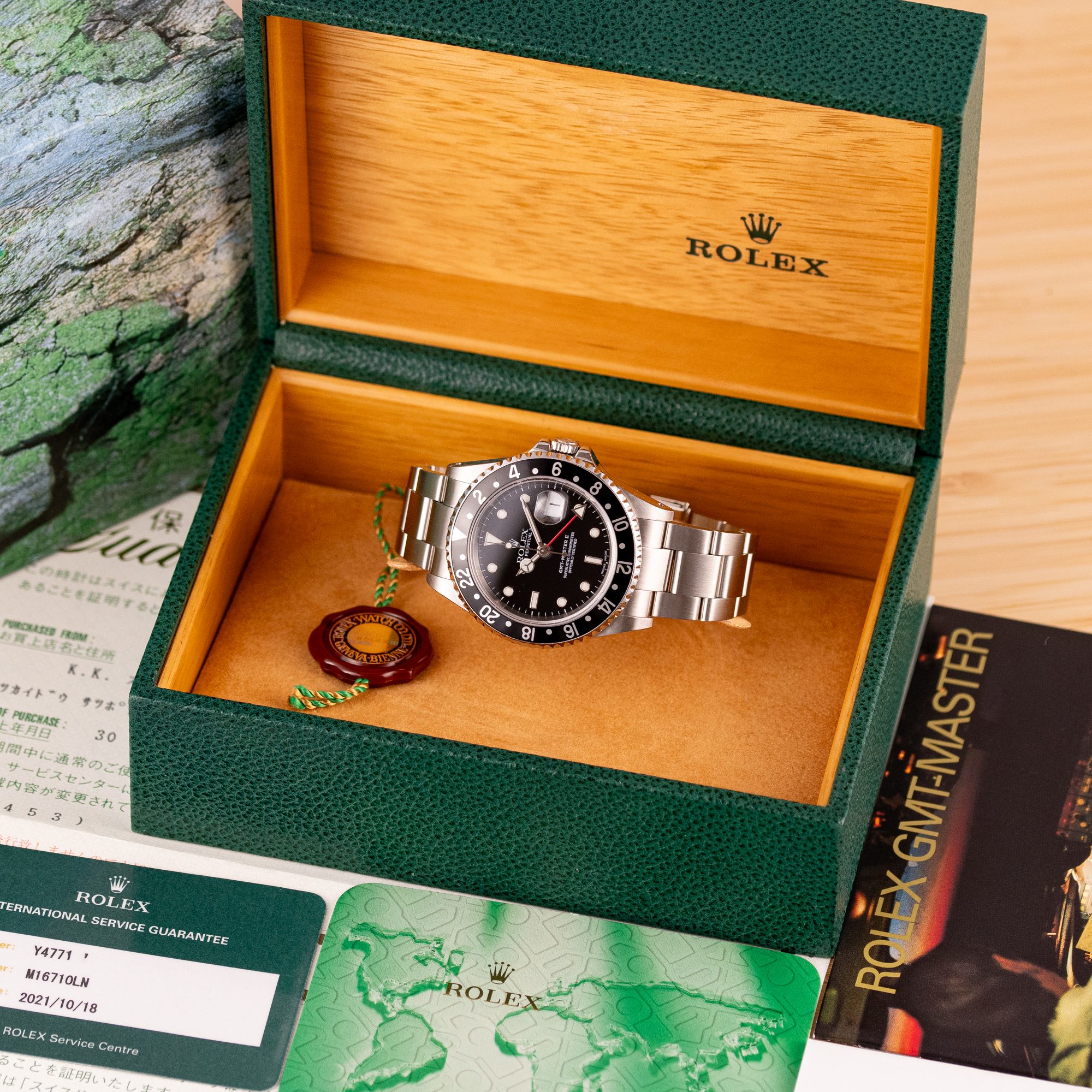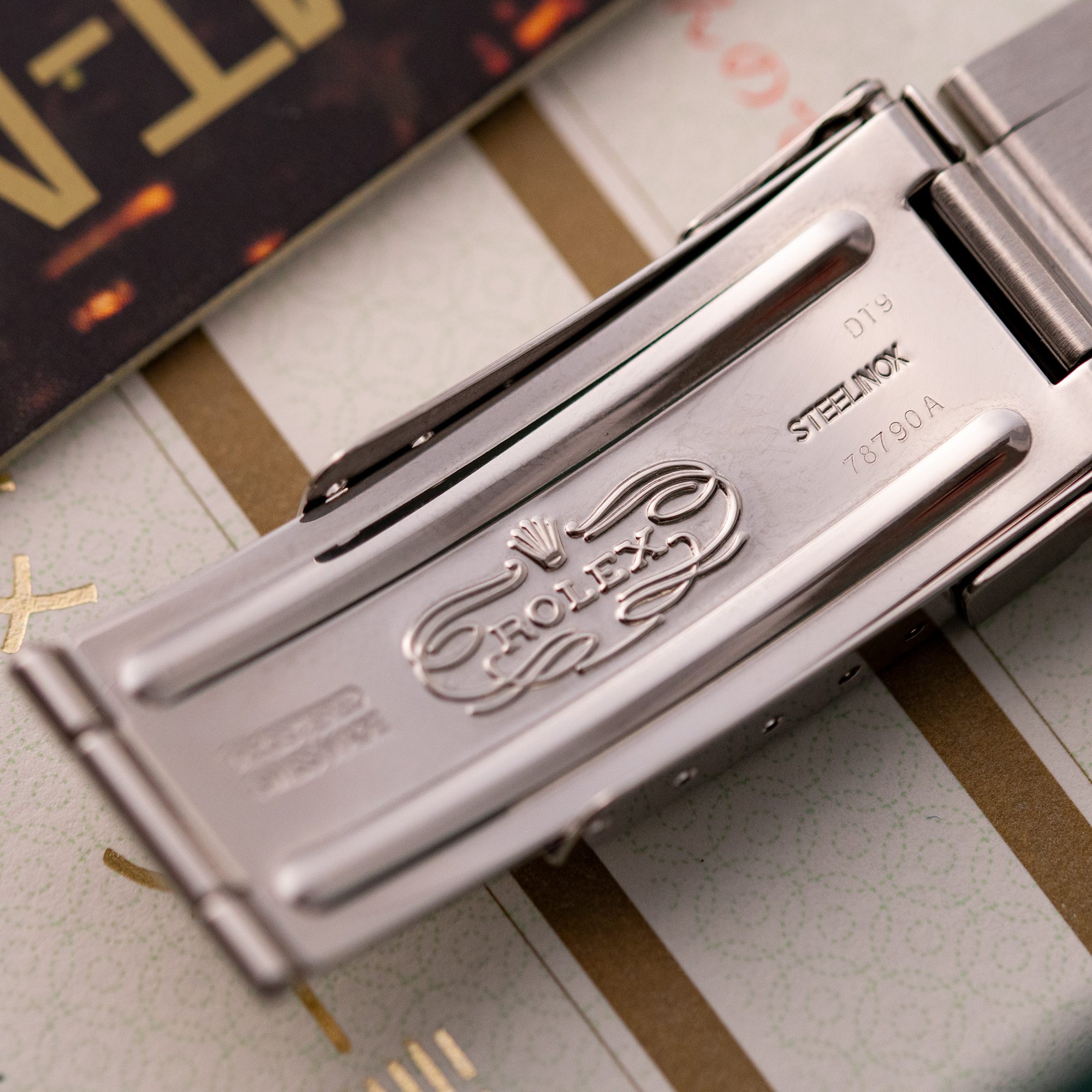 This particular piece, originally sold in 2003, features the LN (Lunette Noire) configuration with a full black bezel. The watch is in great condition with a very sharp case and a bracelet showing no stretch. It was serviced by Rolex in 2021 and comes as a full set with the original box and papers, making it an exceptional choice for any serious collection.