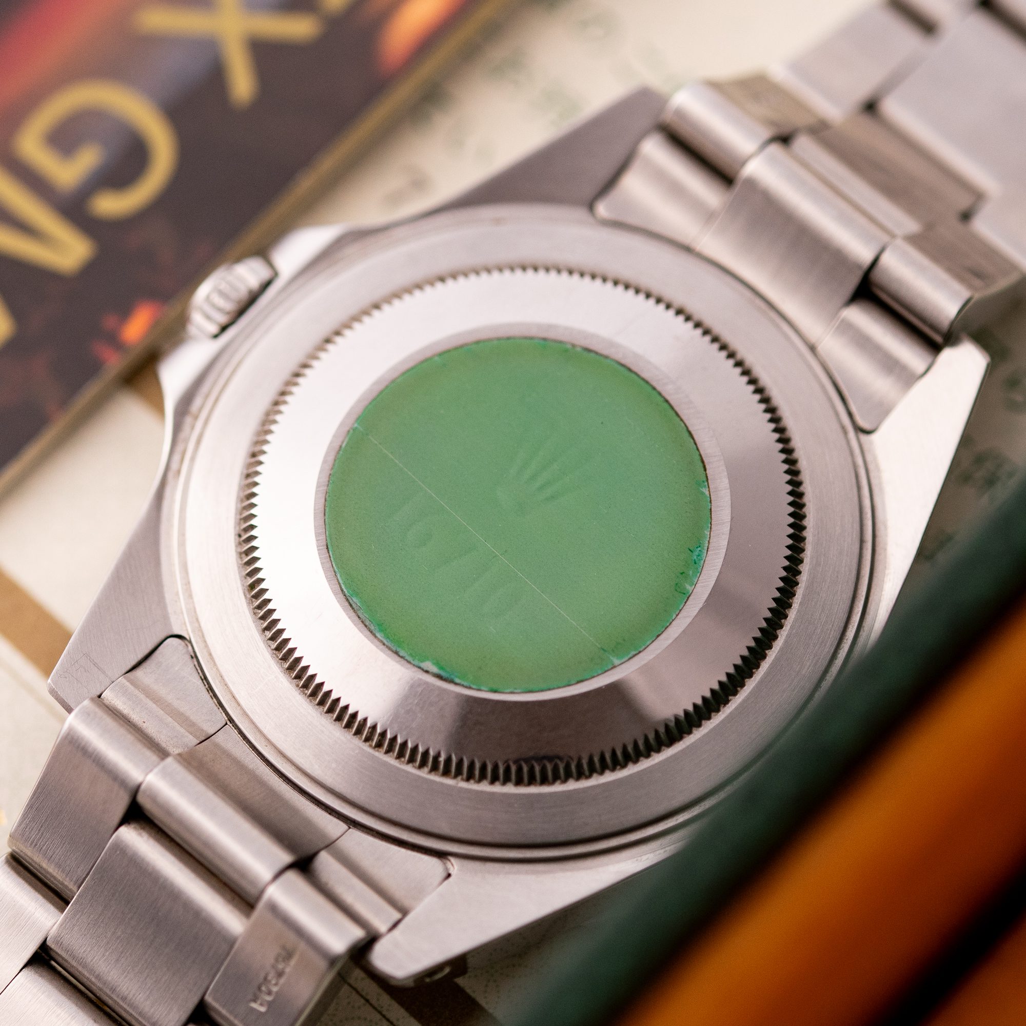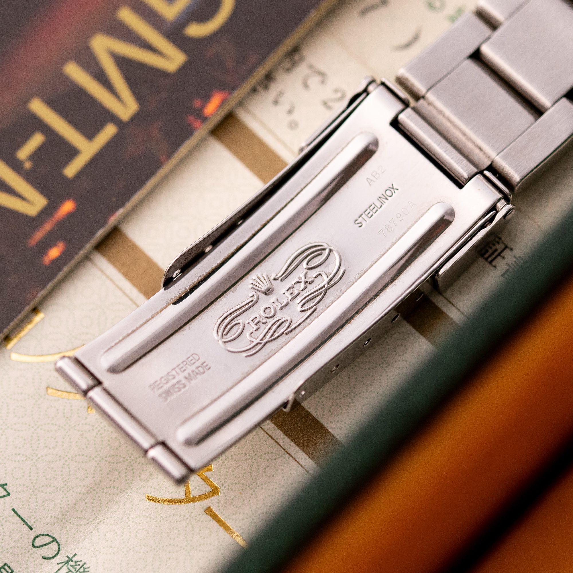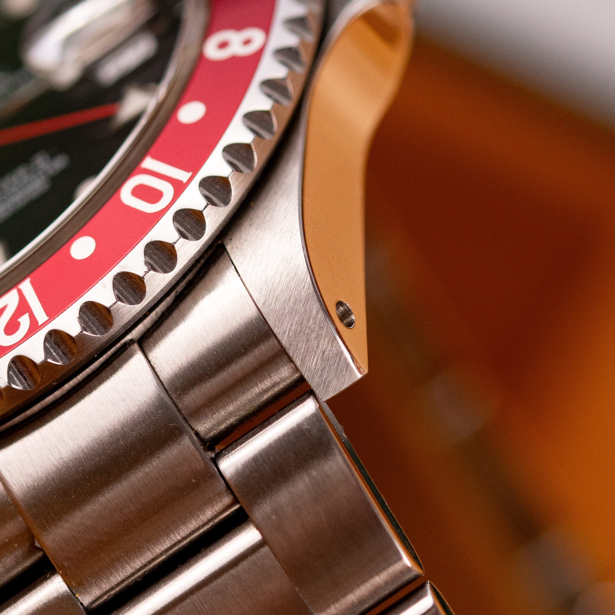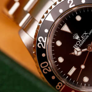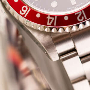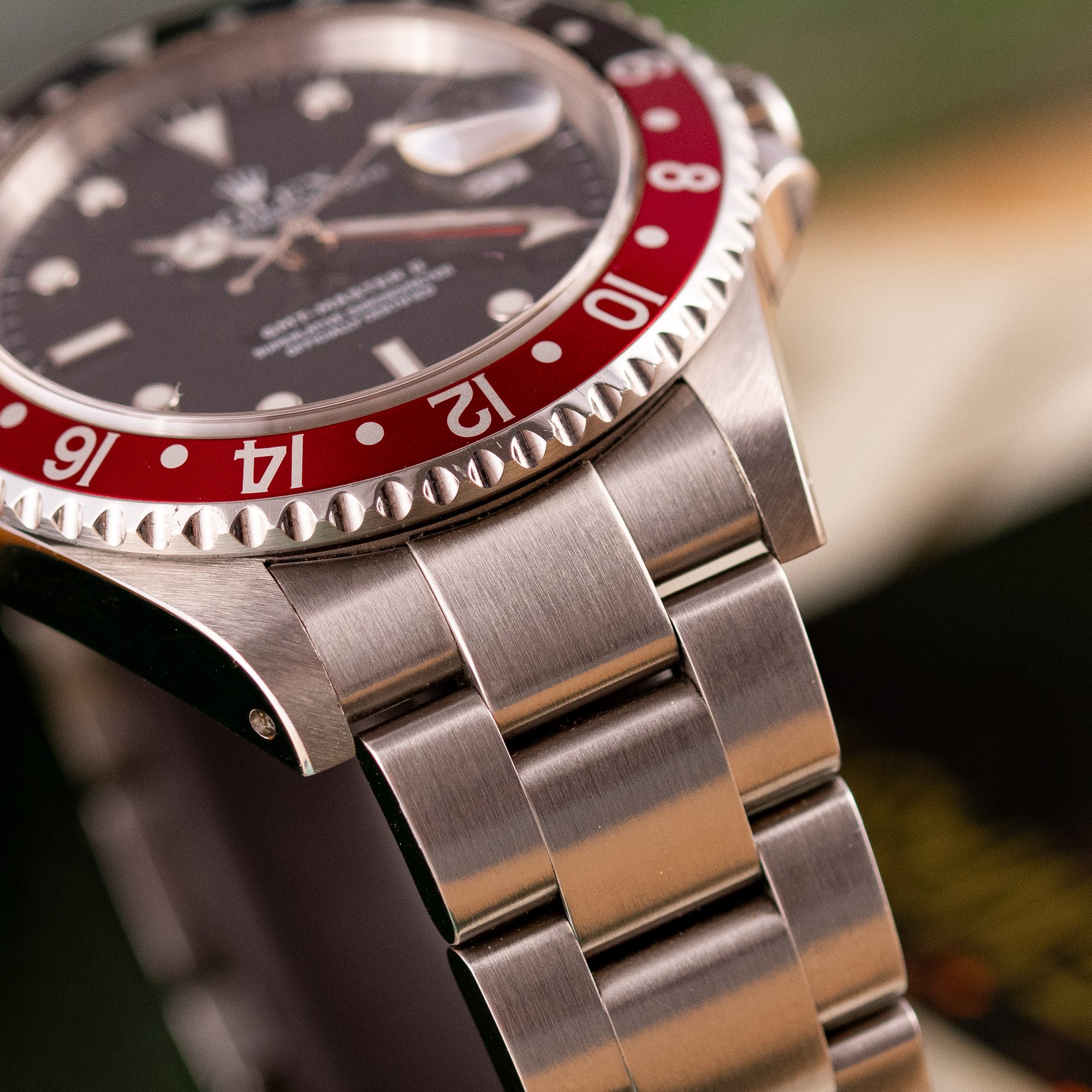 This particular piece, originally sold in 2000, features the classic red and black bezel configuration, commonly known as the “Coke.” The watch is in great condition with a very sharp case and a bracelet showing no stretch. It comes as a full set with the original box and papers, making it a highly desirable addition to any collection.