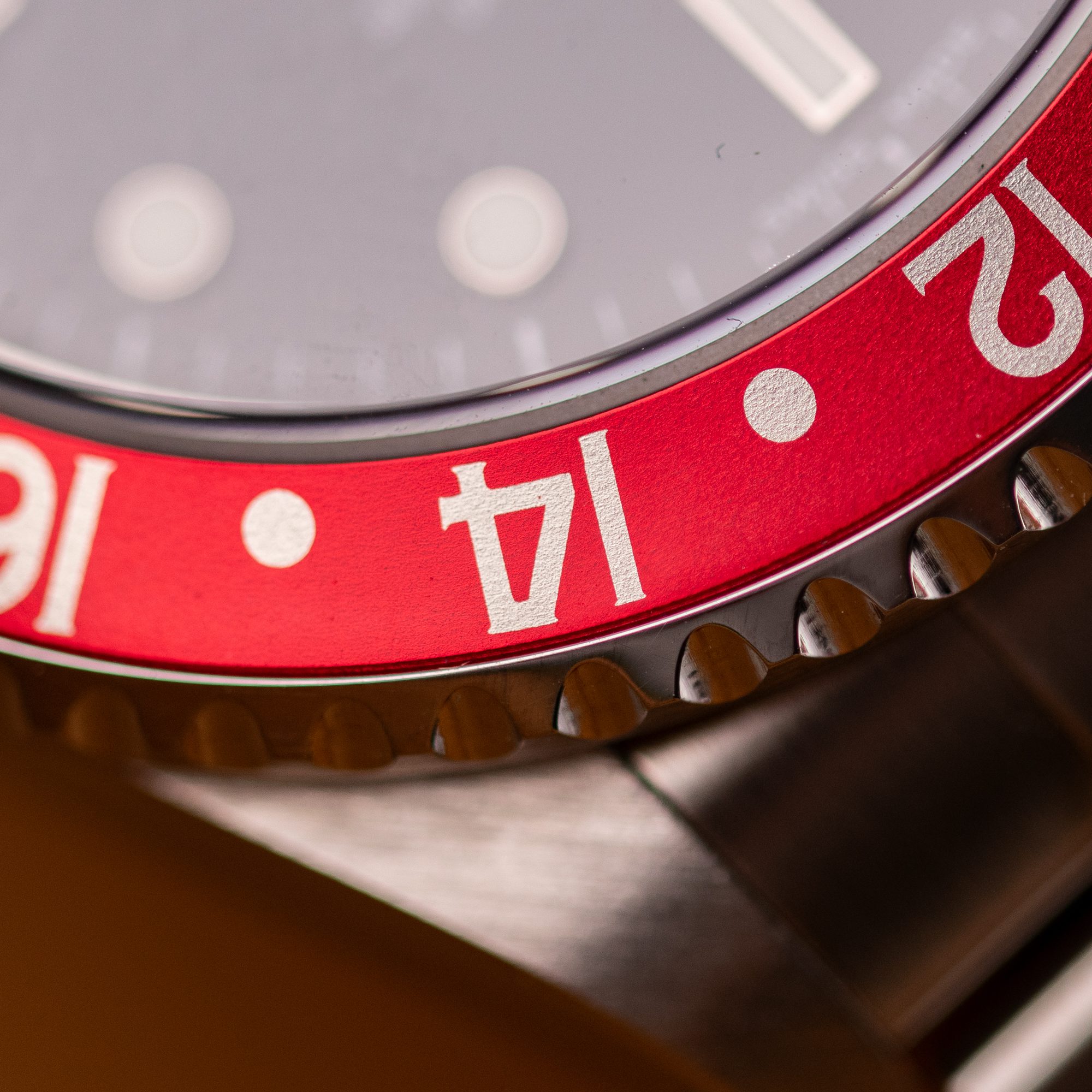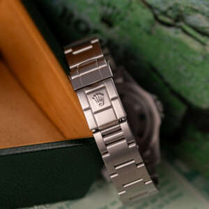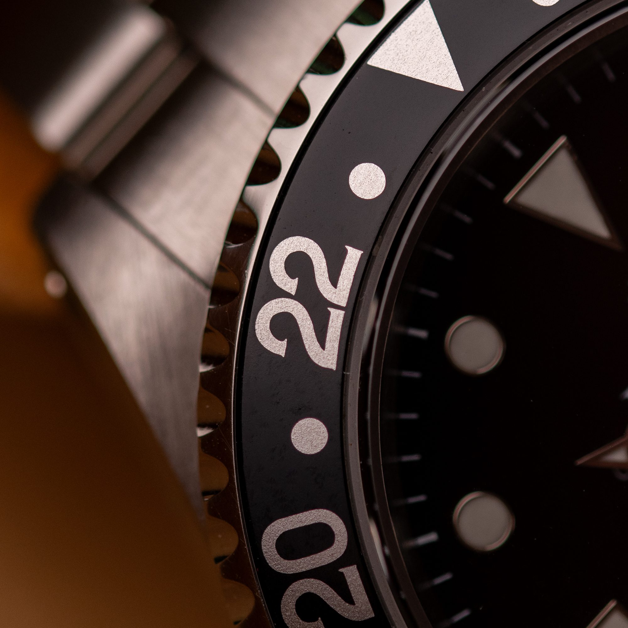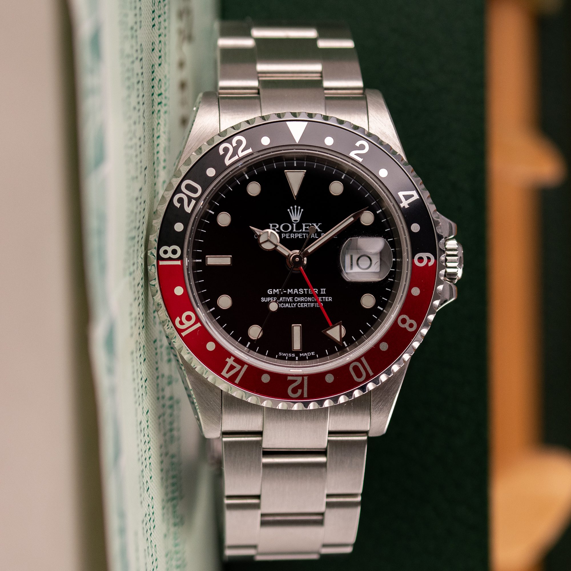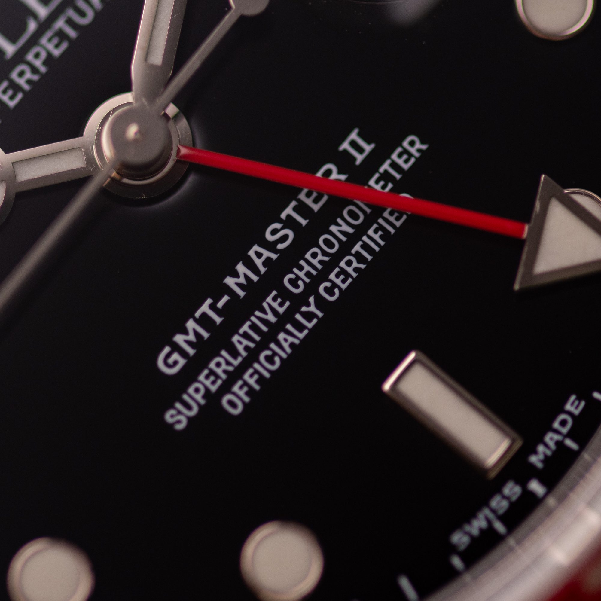 Originally sold in 2002, this example is in very good condition, freshly after a full service to ensure the automatic movement’s full functionality and precise timekeeping. The Oyster bracelet, sized for wrists up to 18 cm, shows minimal wear, maintaining its robust structure. Presented as a full set with its original Rolex box and papers, this GMT Master II is an excellent choice for collectors or those seeking a well-maintained, iconic timepiece.