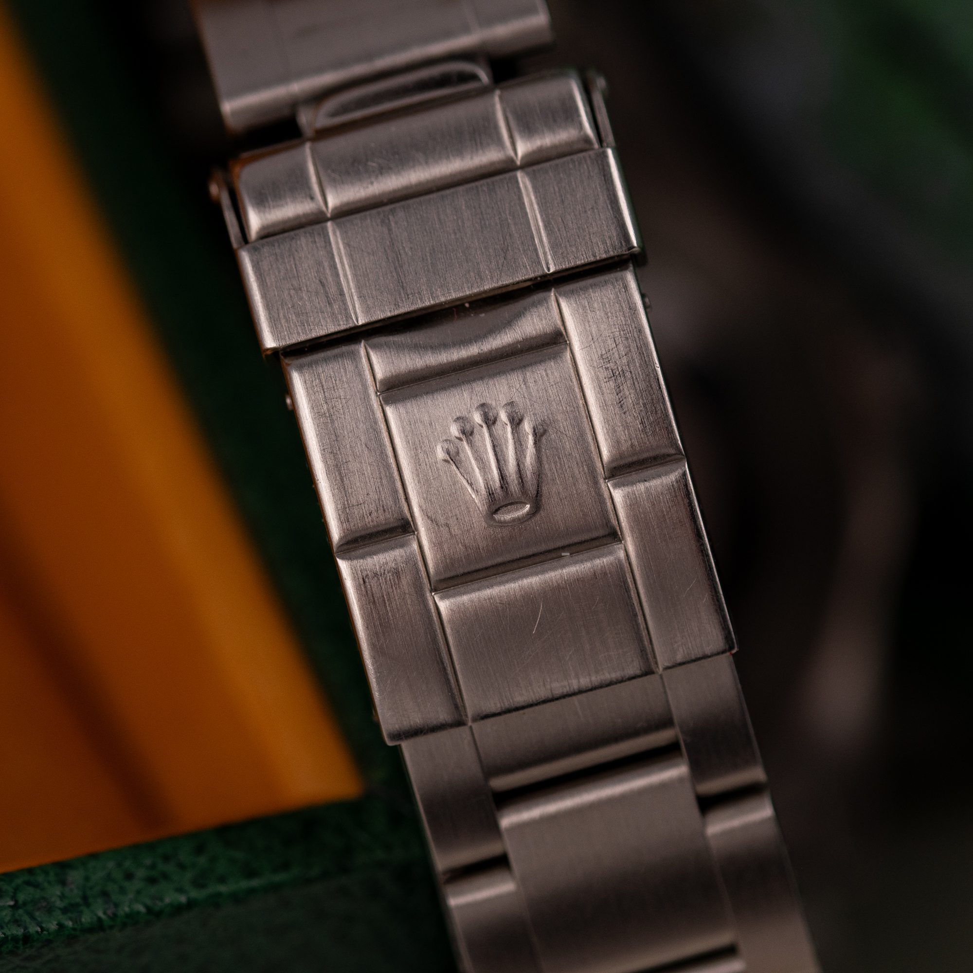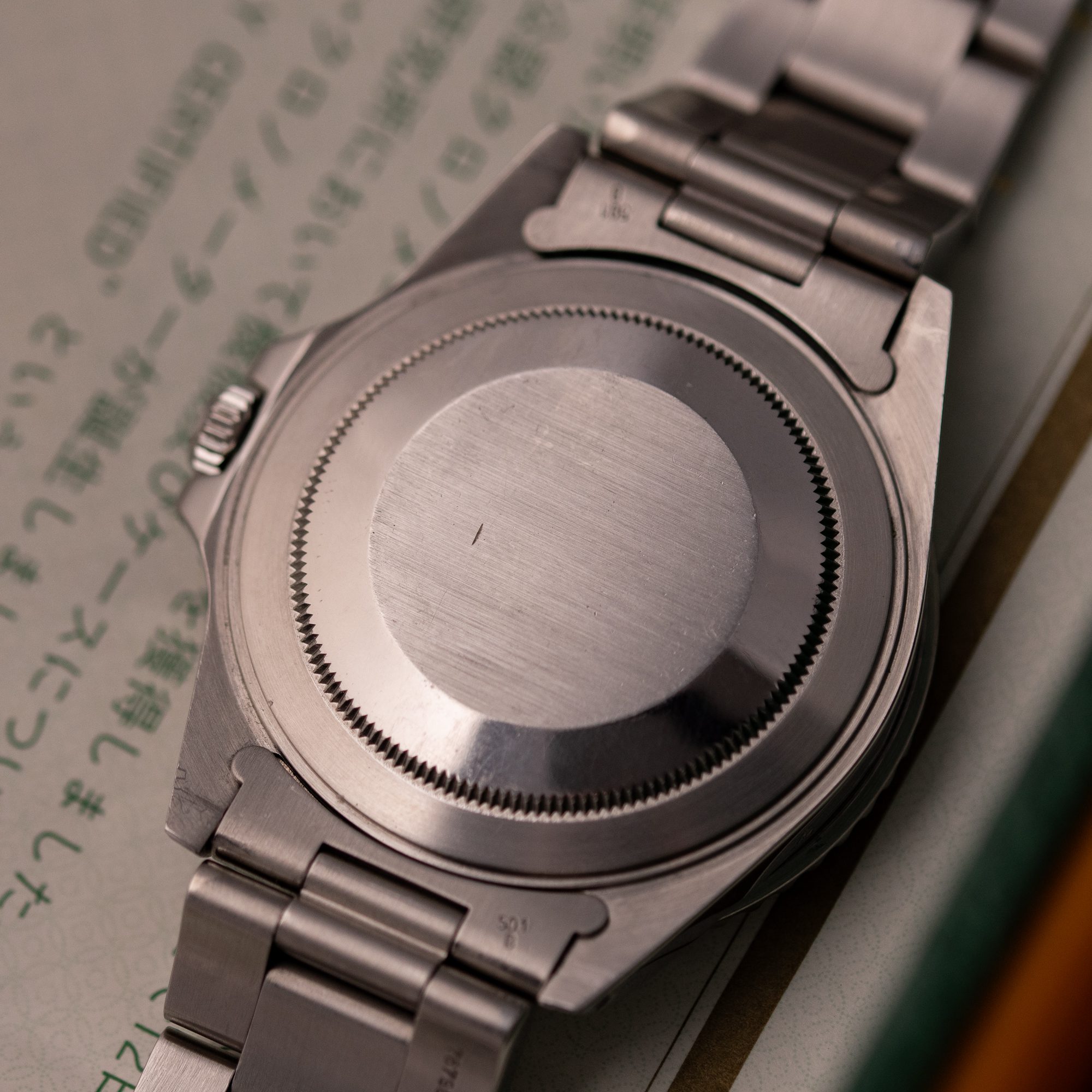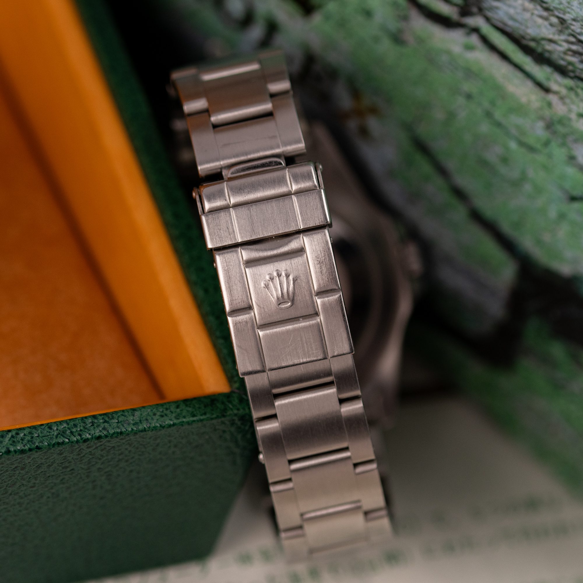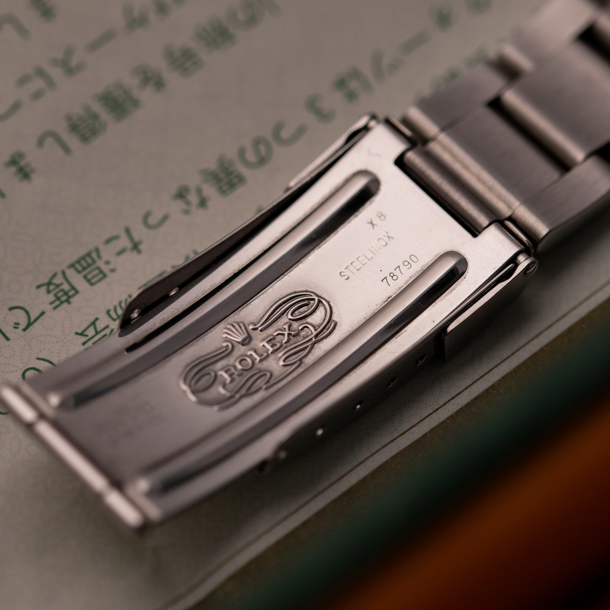 Originally sold in 1999, this example is equipped with a transitional “Swiss Only” dial produced for only one year, adding a collectible appeal to its vintage character. The watch is in very good condition, with a fully functional automatic movement, an unscratched bezel, and a recently completed full watchmaker service ensuring optimal performance. The Oyster bracelet, sized for wrists up to 18 cm, shows minimal wear while maintaining its robust structure. Presented as a full set with its original Rolex box and papers, this GMT Master II is an excellent choice for collectors or those seeking a well-maintained, historically significant timepiece.