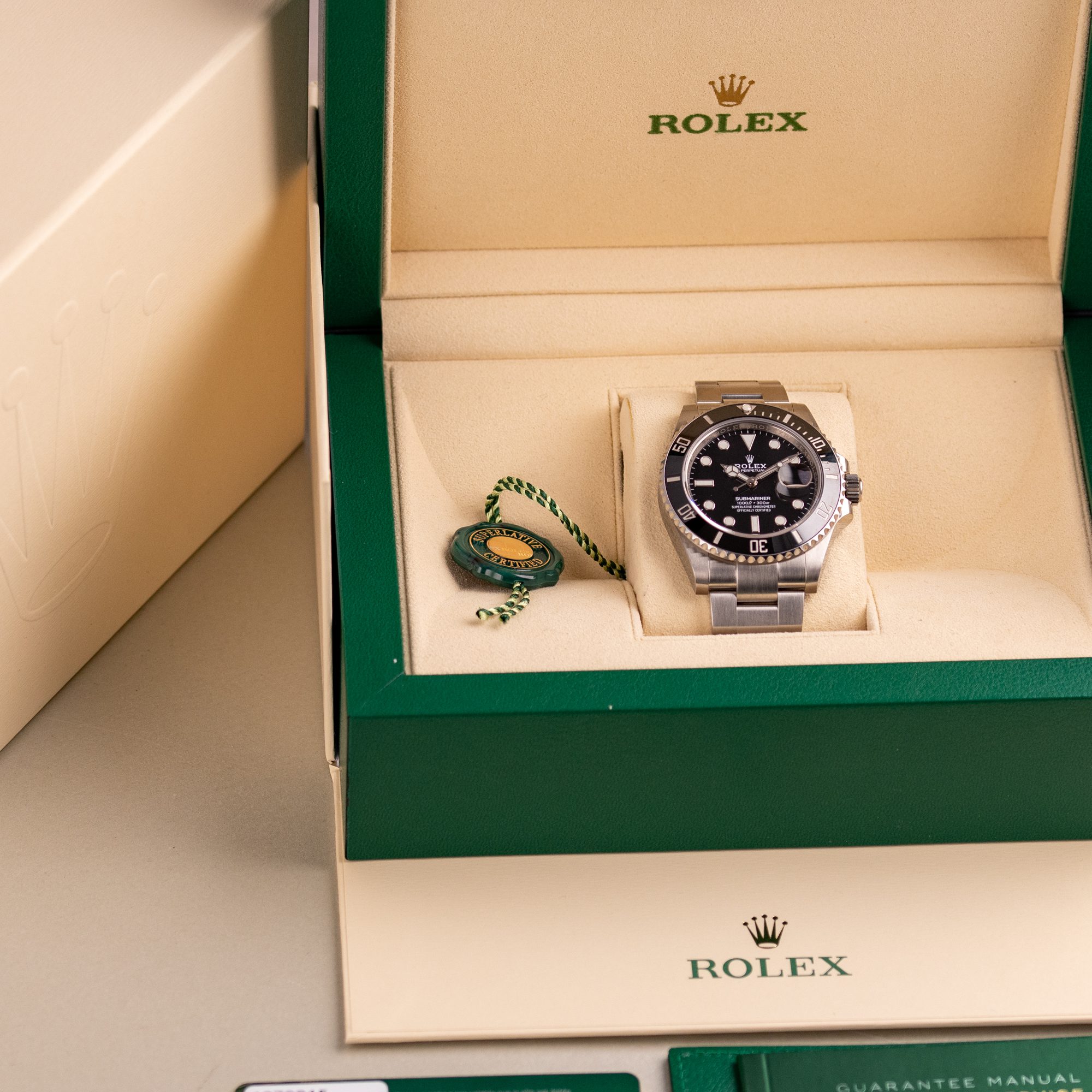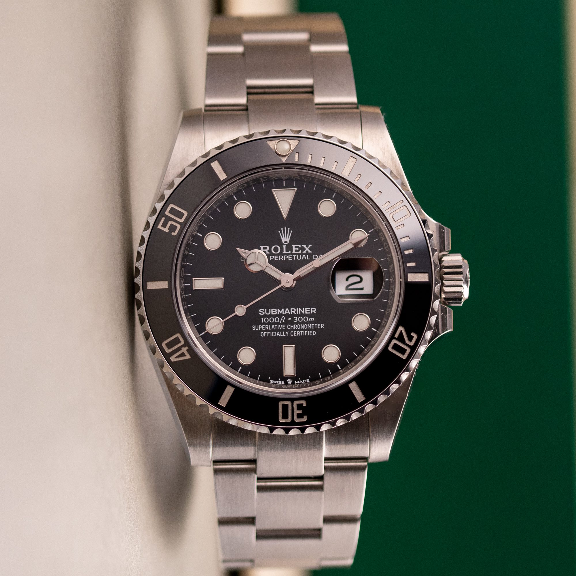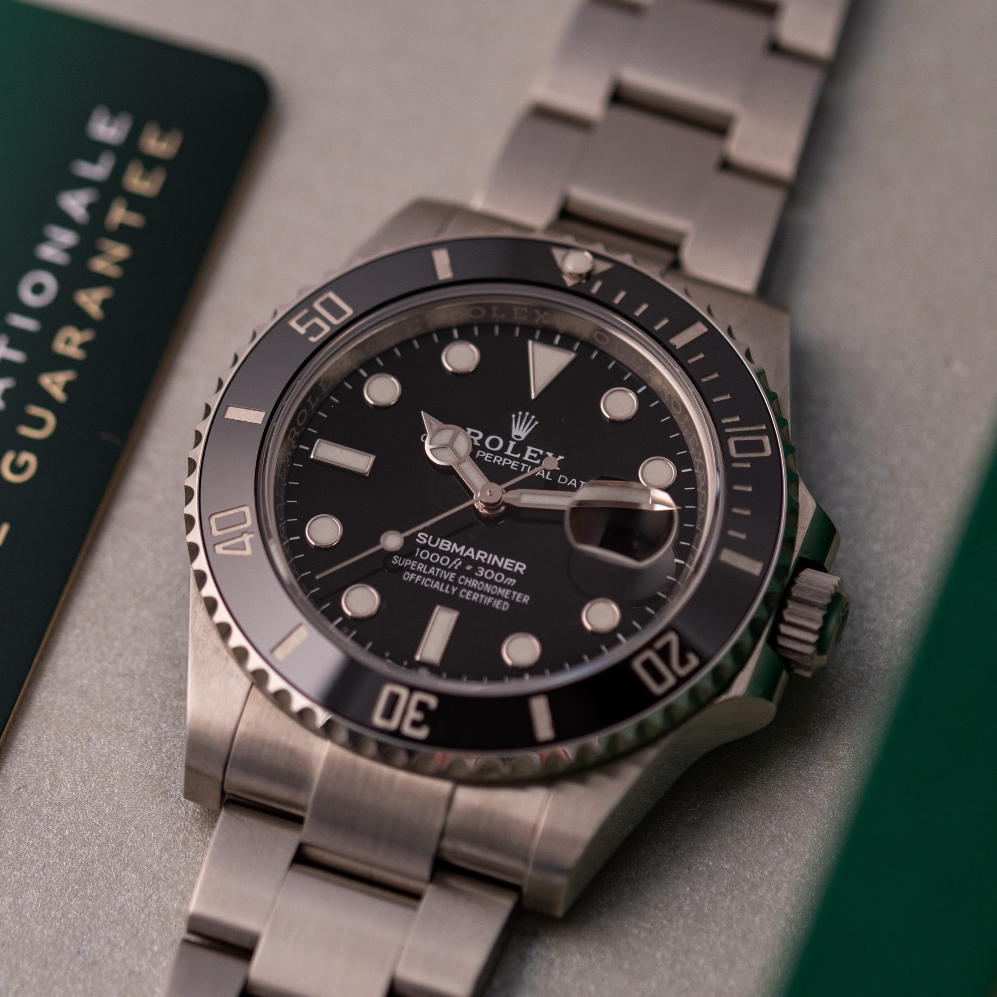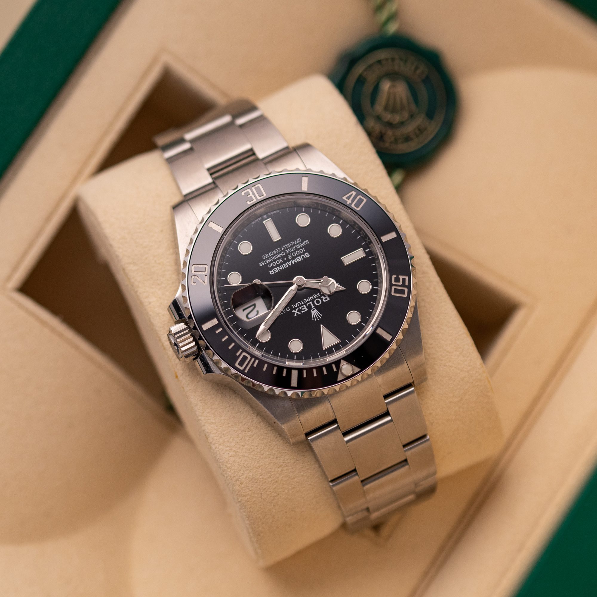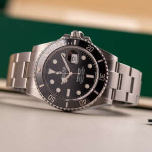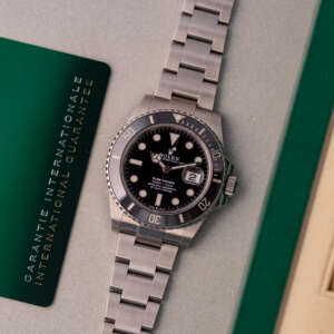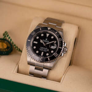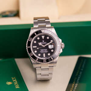 Originally sold in 2020, this example is in great condition, showing minor signs of use, with a fully functional automatic movement ensuring precise timekeeping and reliable performance. The Oyster bracelet, sized for wrists up to 19.5 cm, exhibits minimal wear while maintaining its robust structure. Presented as a full set with its original Rolex box and papers, this Submariner Date is an excellent choice for collectors or those seeking a well-maintained, modern timepiece.