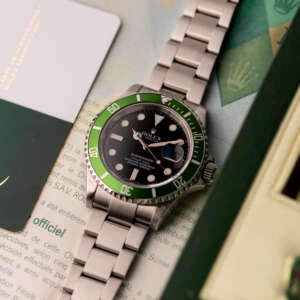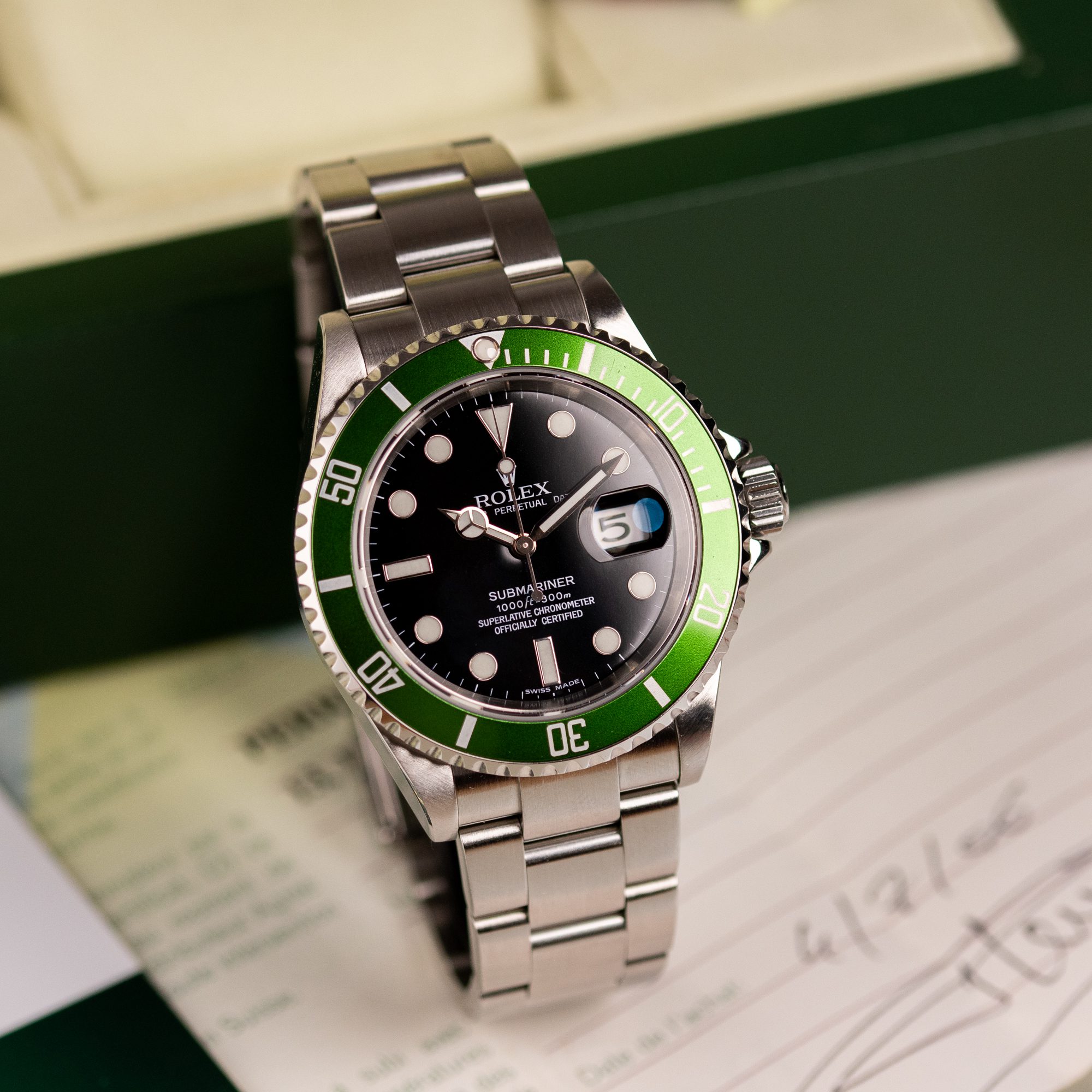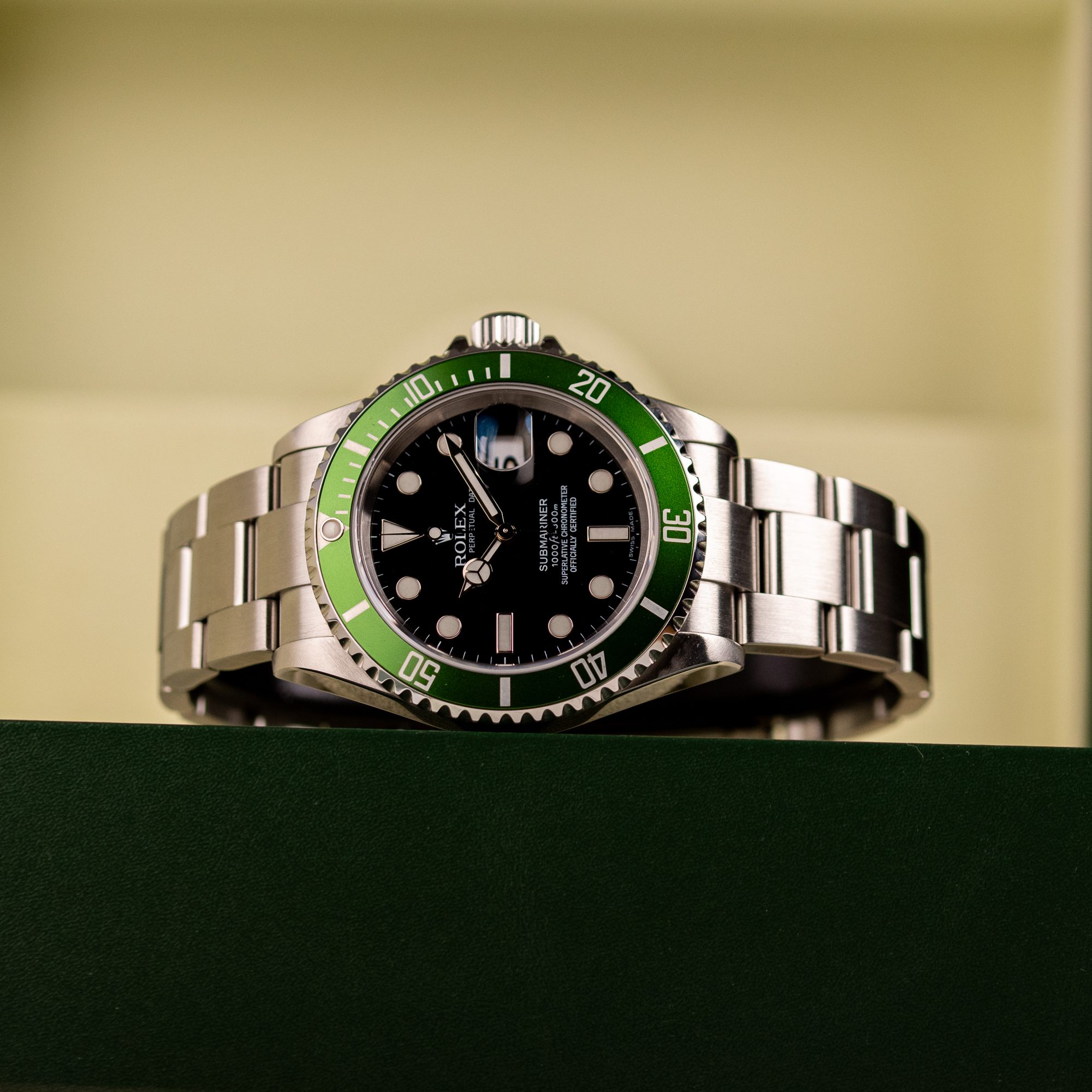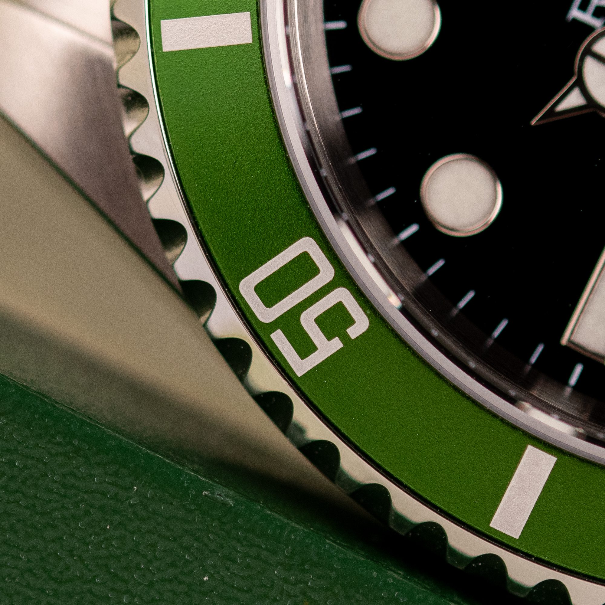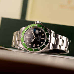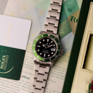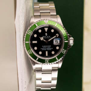 The Rolex Submariner Date ref. 16610LV, affectionately known as the “Kermit,” was introduced in 2003 to celebrate the 50th anniversary of the Submariner line. It marked a major departure from tradition with the debut of a green aluminum bezel, making it the first Submariner to feature a color other than black.