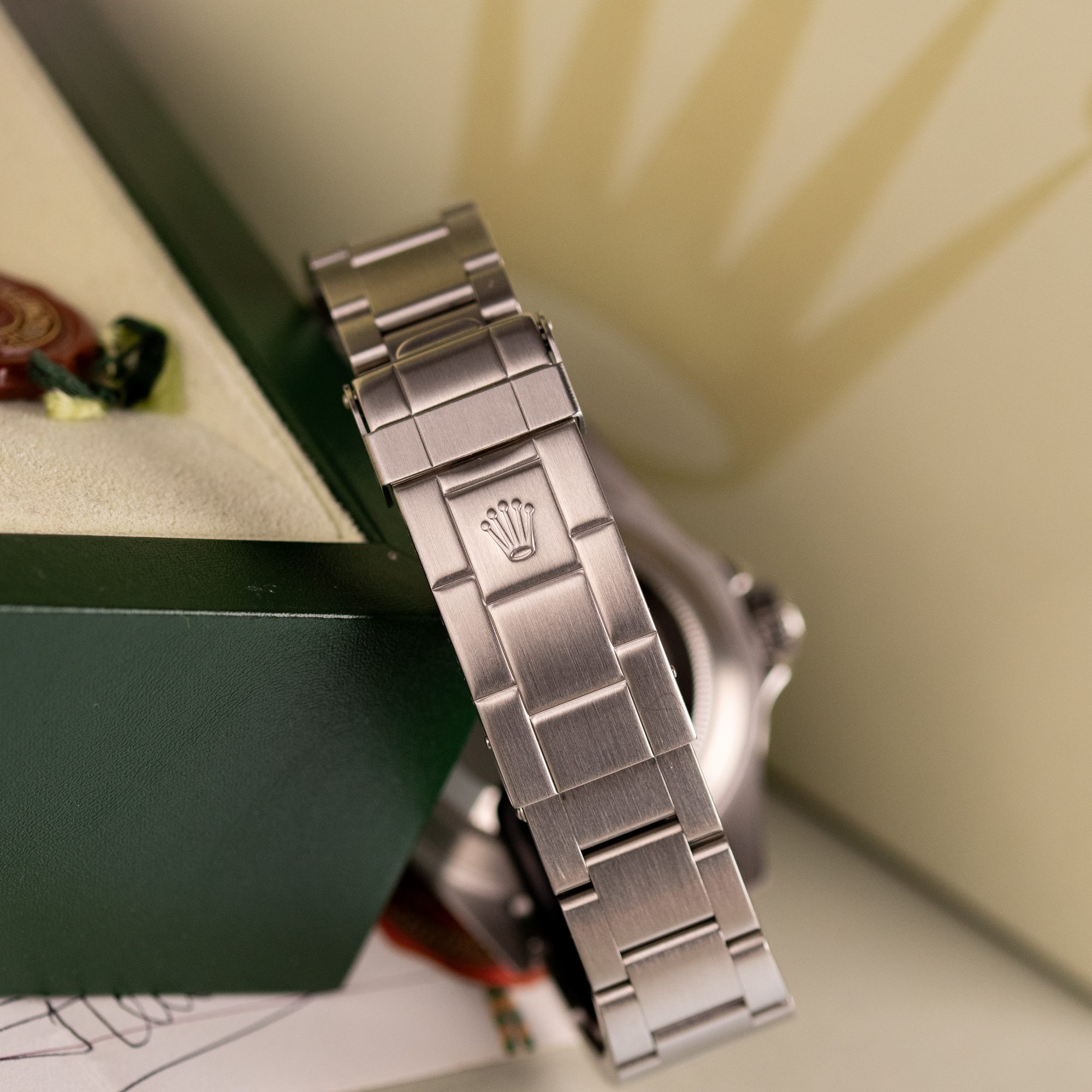 This particular watch, originally sold in 2006, has been carefully maintained and serviced by Rolex in 2025, ensuring excellent mechanical condition. It shows light signs of use and is offered as a full set with the original box and papers, making it an exceptional choice for collectors and enthusiasts seeking a classic, durable, and historically significant Submariner.