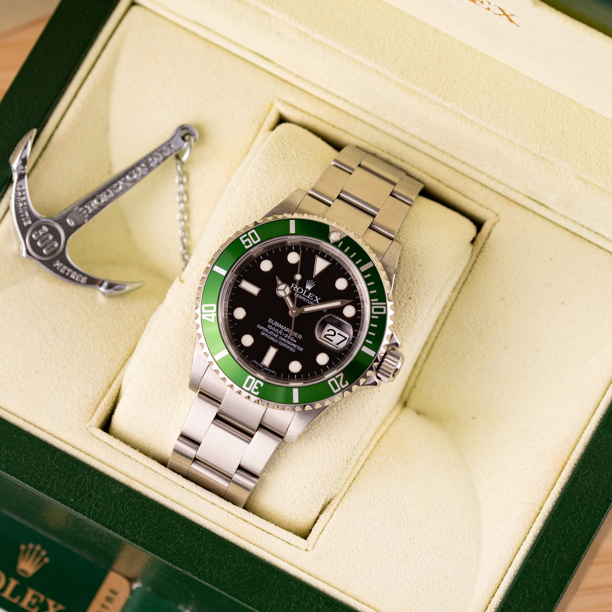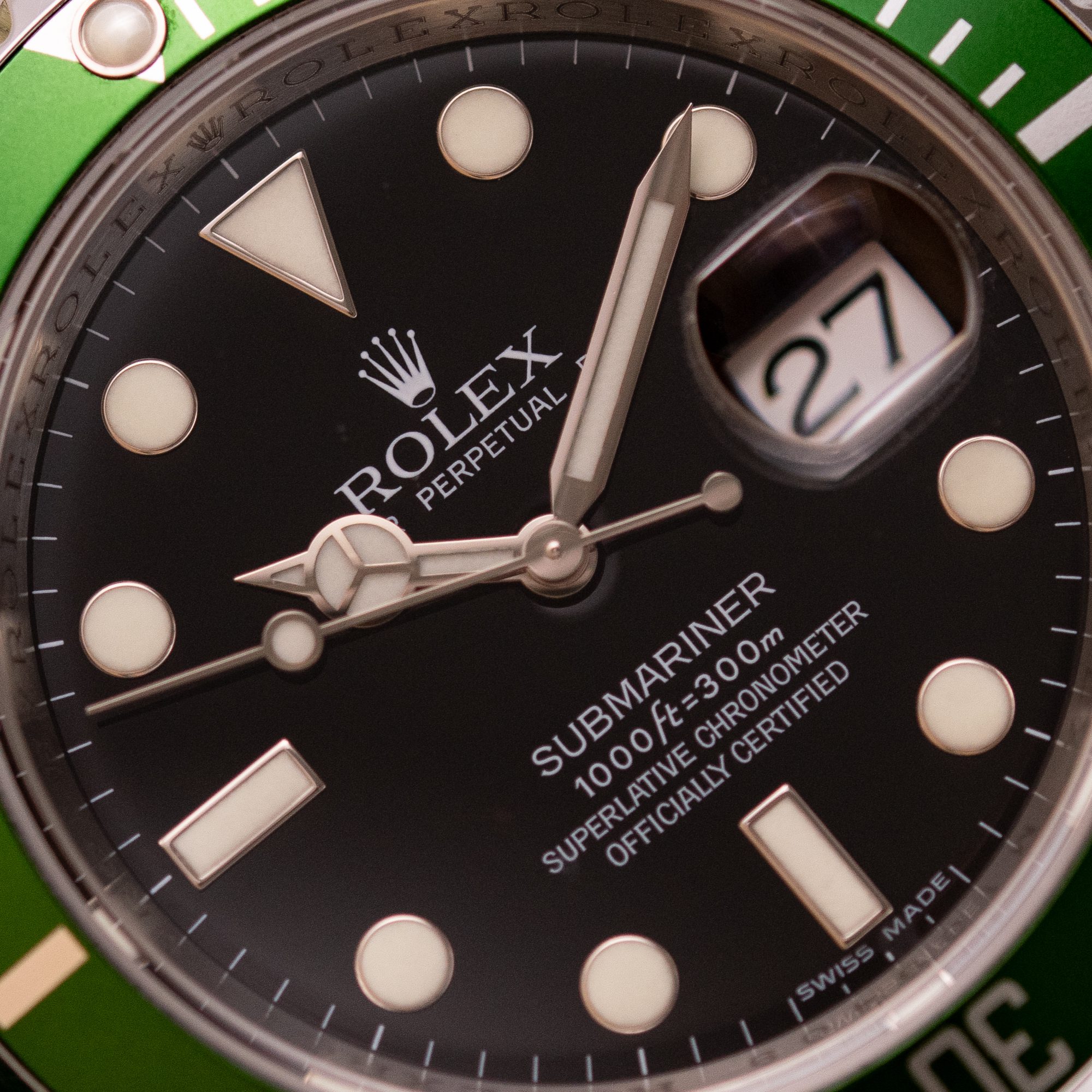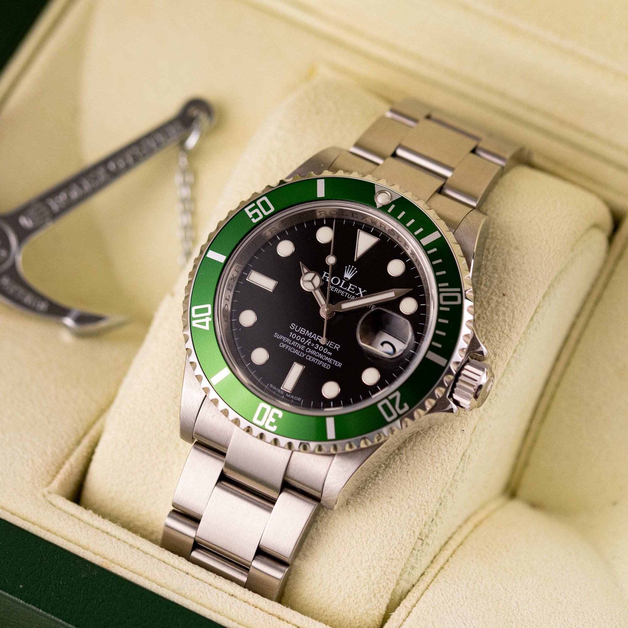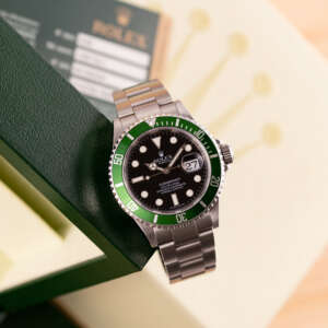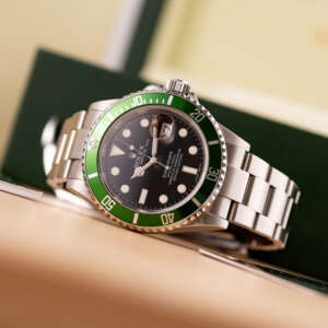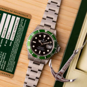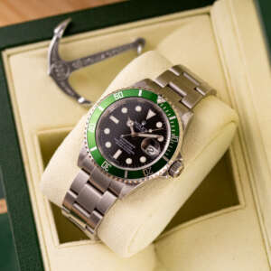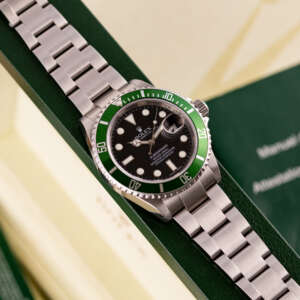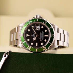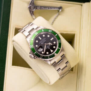 The Rolex Submariner Date ref. 16610LV, also known as the “Kermit,” was the first Submariner in history to feature a green bezel. Created to mark the 50th anniversary of the Submariner, it has become one of the most sought-after and collectible references among Rolex enthusiasts.