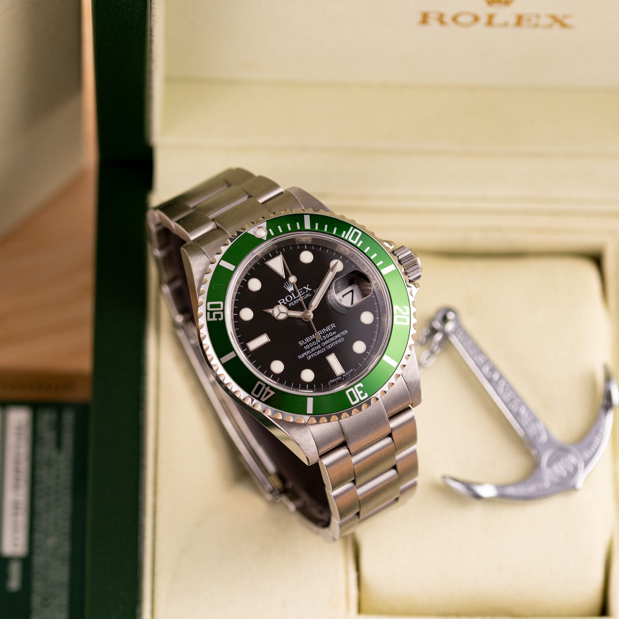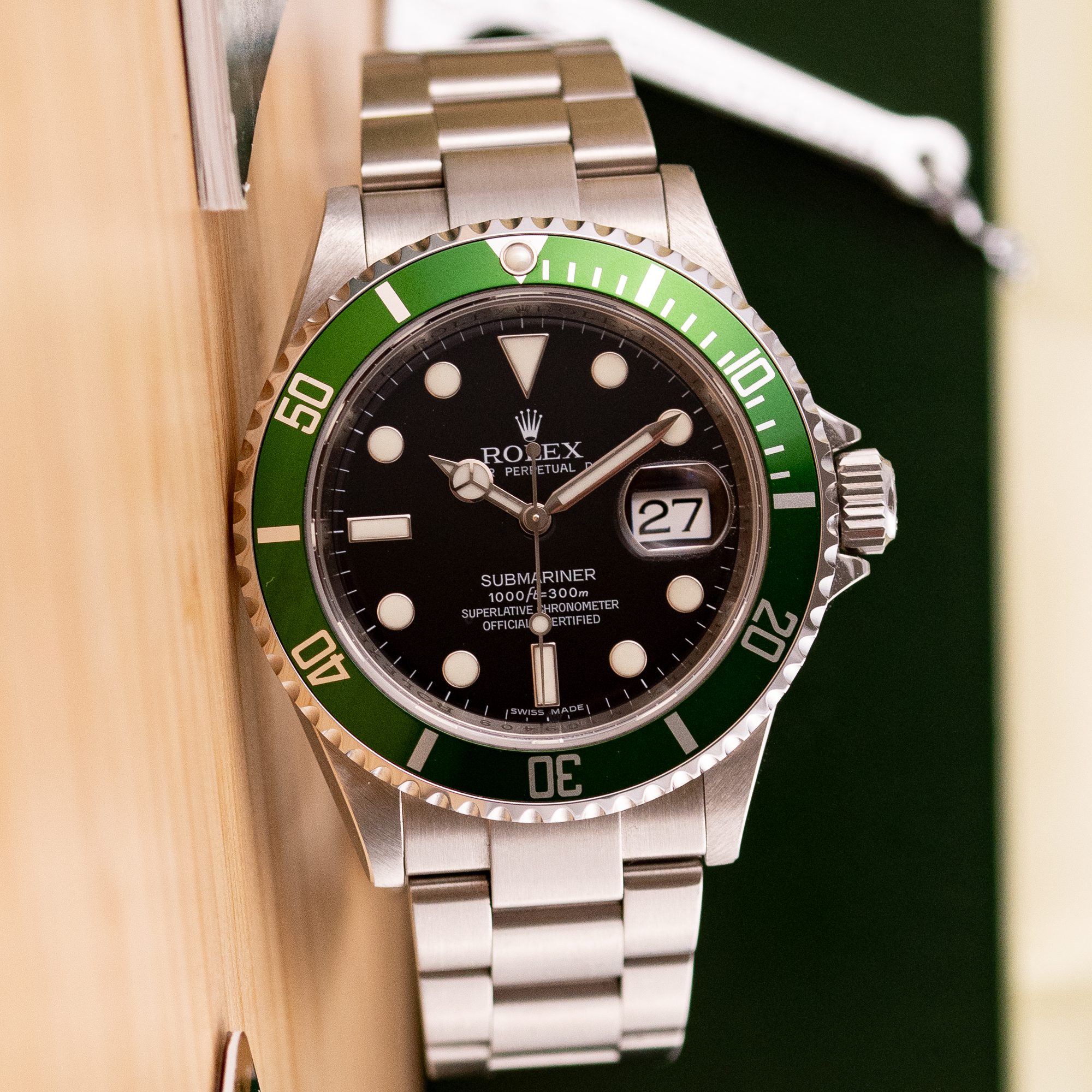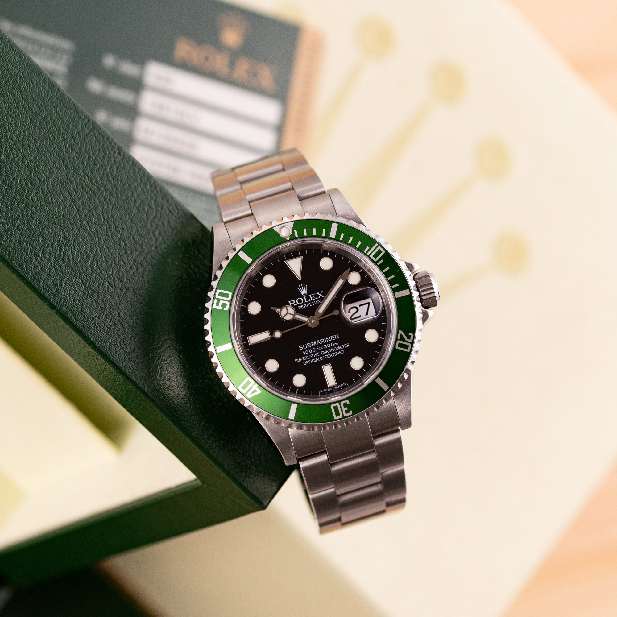 The Rolex Submariner Date ref. 16610LV, also known as the “Kermit,” was the first Submariner in history to feature a green bezel. Created to mark the 50th anniversary of the Submariner, it has become one of the most sought-after and collectible references among Rolex enthusiasts.
