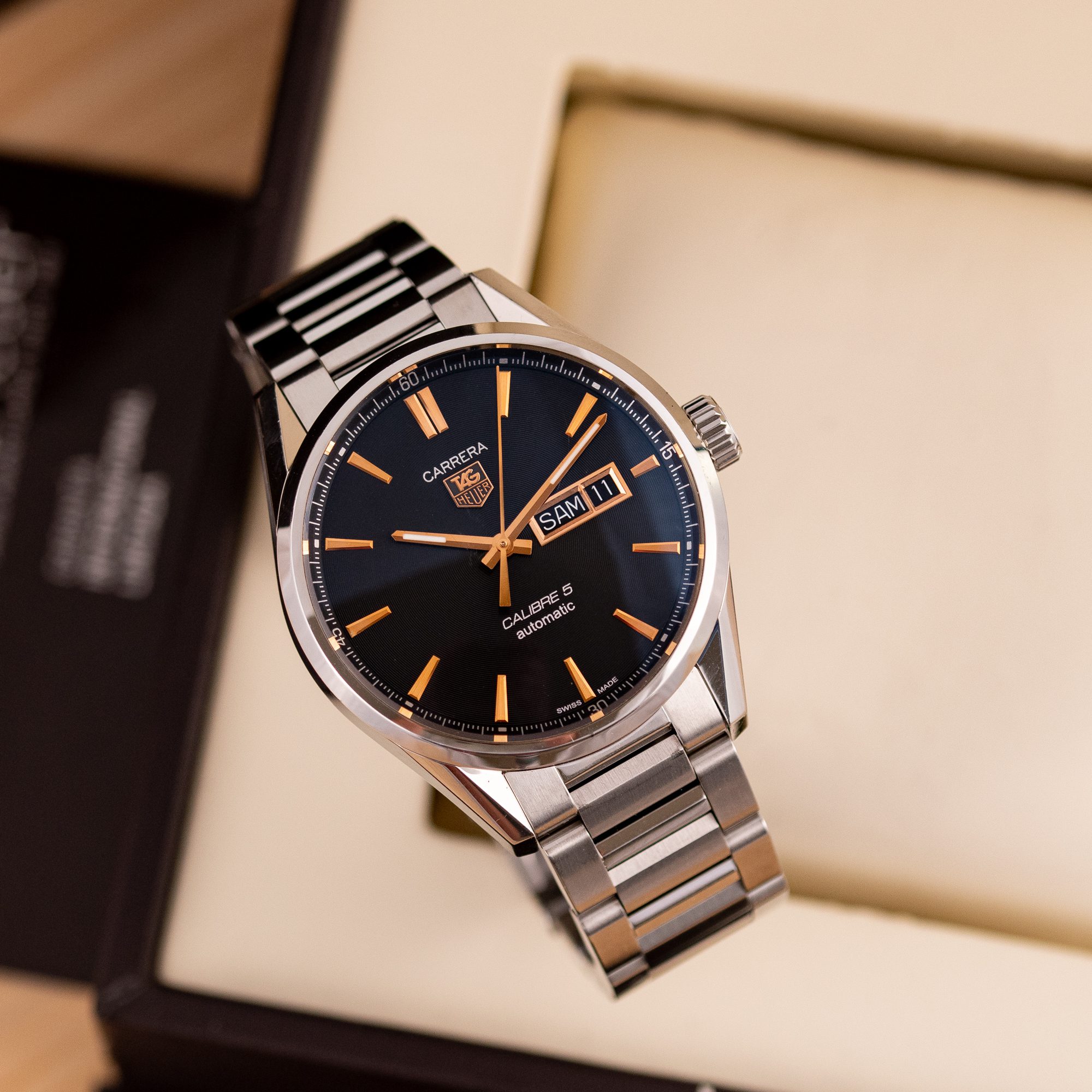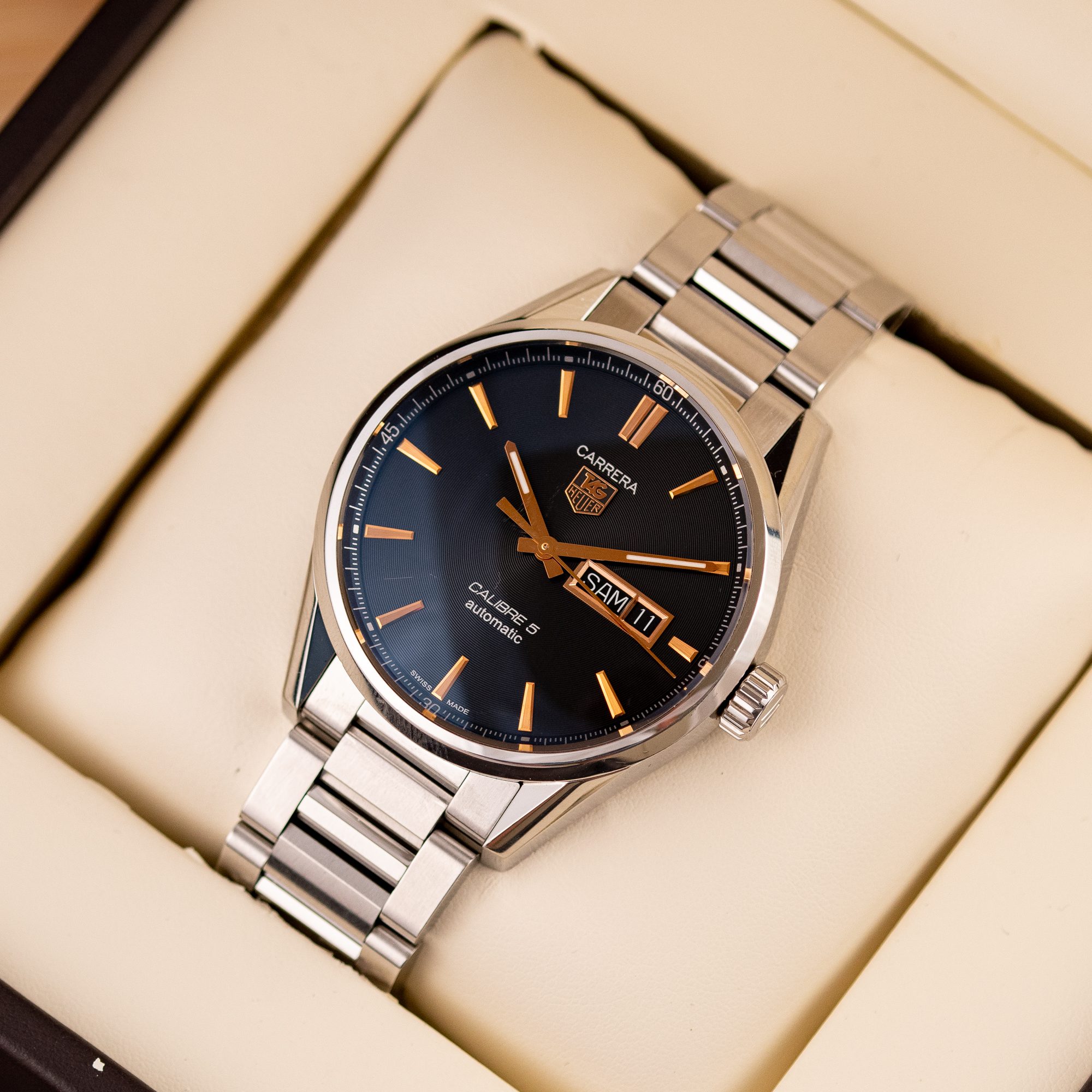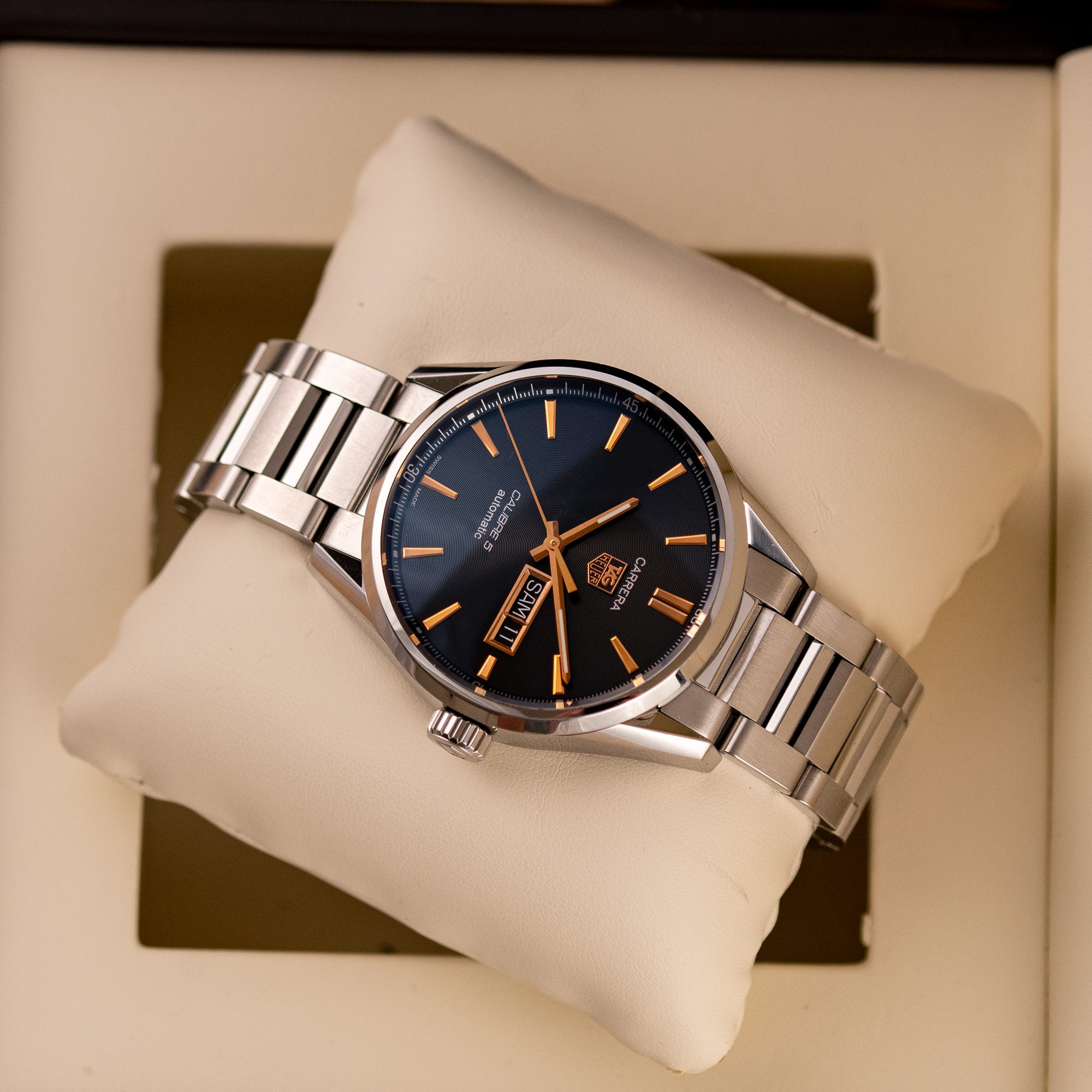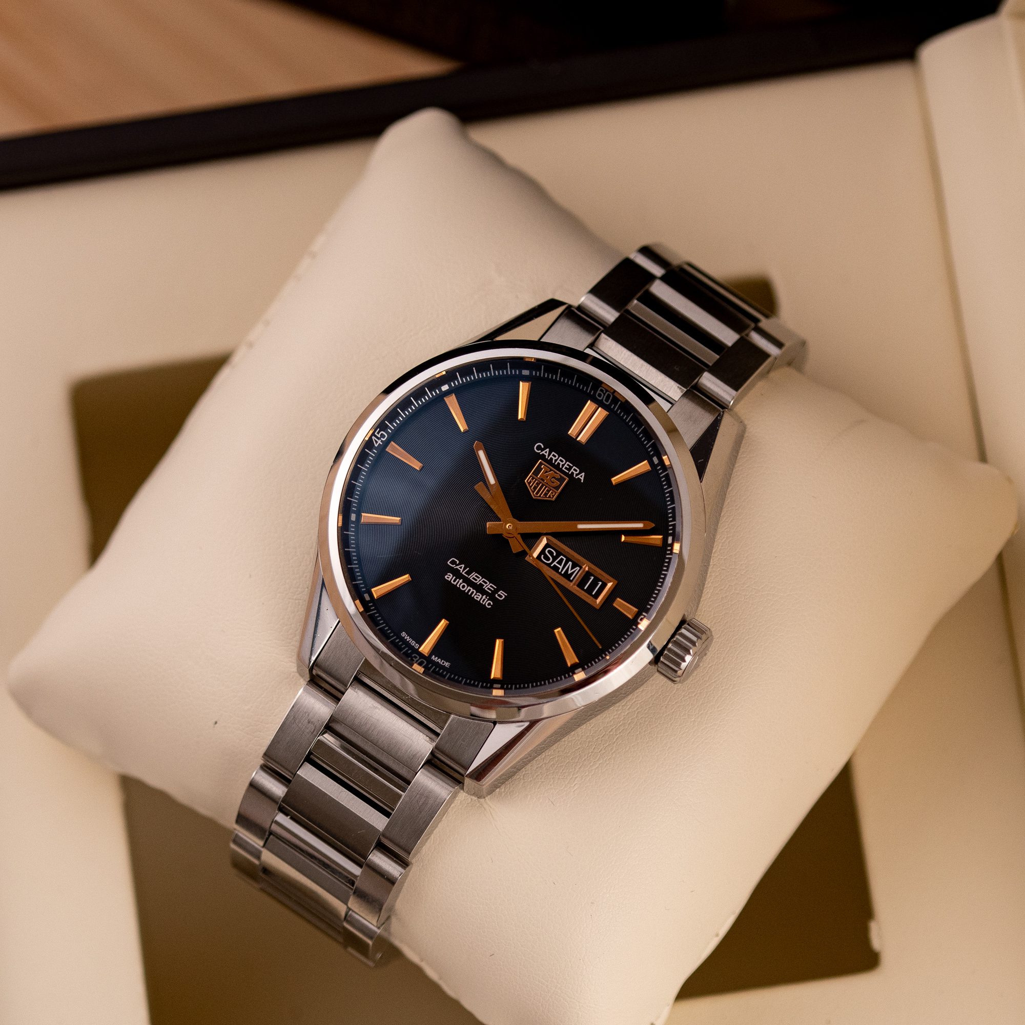 The TAG Heuer Carrera Calibre 5 is a refined everyday timepiece, offering a clean design and reliable automatic performance. With its balanced proportions and functional layout, this model reflects the classic spirit of the Carrera collection.