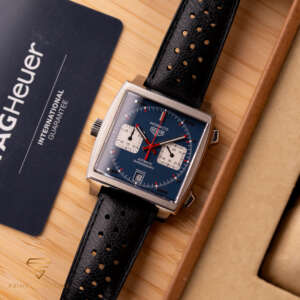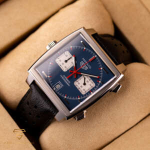The TAG Heuer Monaco Steve McQueen is a tribute to the legendary vintage Monaco worn by the iconic actor and racing enthusiast. With its square case and bold design, this model captures the spirit of motorsport and timeless style.