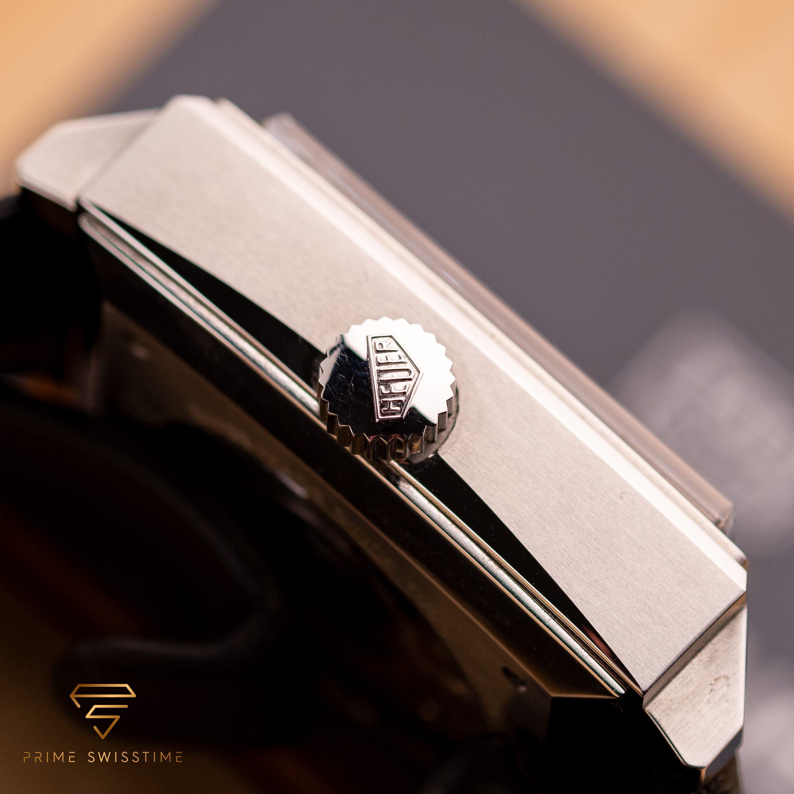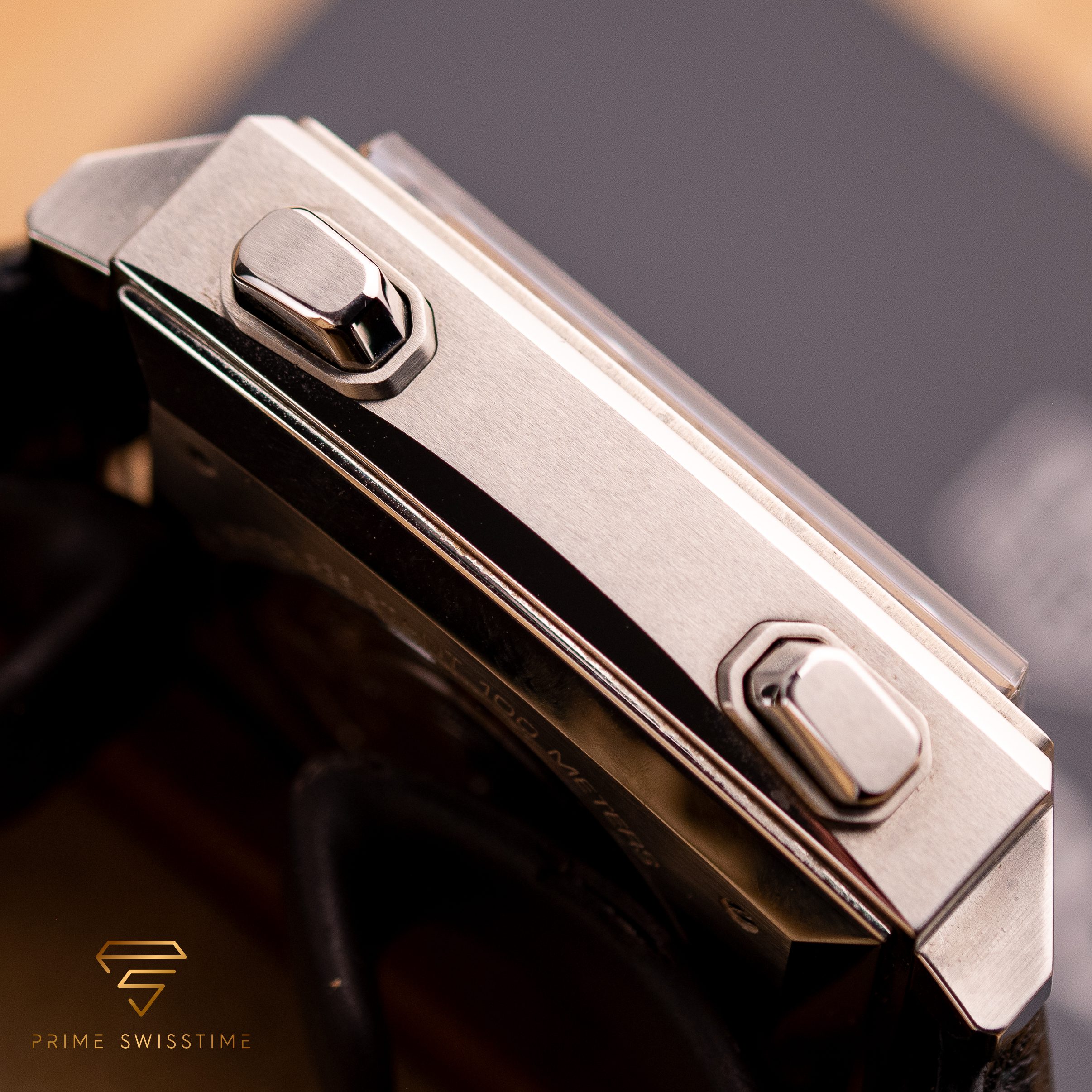 This particular piece is in great condition and remains on the original leather strap, preserving its authentic appeal. The watch comes as a full set with the original box and papers, making it a fantastic addition for collectors and fans of classic racing chronographs.